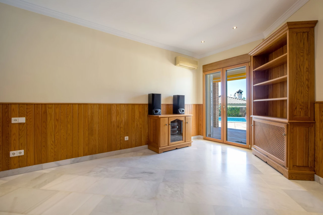 Are you looking for a dream home? This spectacular well priced Andalucian styled South West facing detached 4 bedroom Villa is located in the desirable neighbourhood of Sitio de Calahonda , Mijas Costa on Southern Spains Costa del Sol . Excellent Family sized Property . This property is adjacent to R3237844 both properties for 1.100,000 Euros, however we are offering a discounted price if you purchase the two properties. This charming unfurnished one level detached Villa is accessed through a grand entrence in a private cul de sac and comprises 4 spacious bedrooms with built in wardrobes , each with full ensuite bathrooms as well as separate guest wc. The bright and spacious living/dining room extends out onto the south west facing patio with views to the mediteranean garden and private swimming pool . The eat in kitchen has fitted modern appliances as well as detailed finishes including a granite marble worksurface. The lower part of the house is designated for the underground parking and storage areas. This therefore is ideal for a large family / friends to live adjacent to each other. Located only 5 minutes drive to the beach 15 minute wallk ( Nearest beach La Pirata/ Luna Beach) 10 minutes walk to local restaurants cafes and bars 10 minutes walk to shopping centre in Calahonda 10 minutes walk to taxi rank /bus stop ( for Fuengirola-Marbella Route) 35km to Malaga Airport 7km to La Cala de Mijas 12km to Marbella 15km to Fuengirola