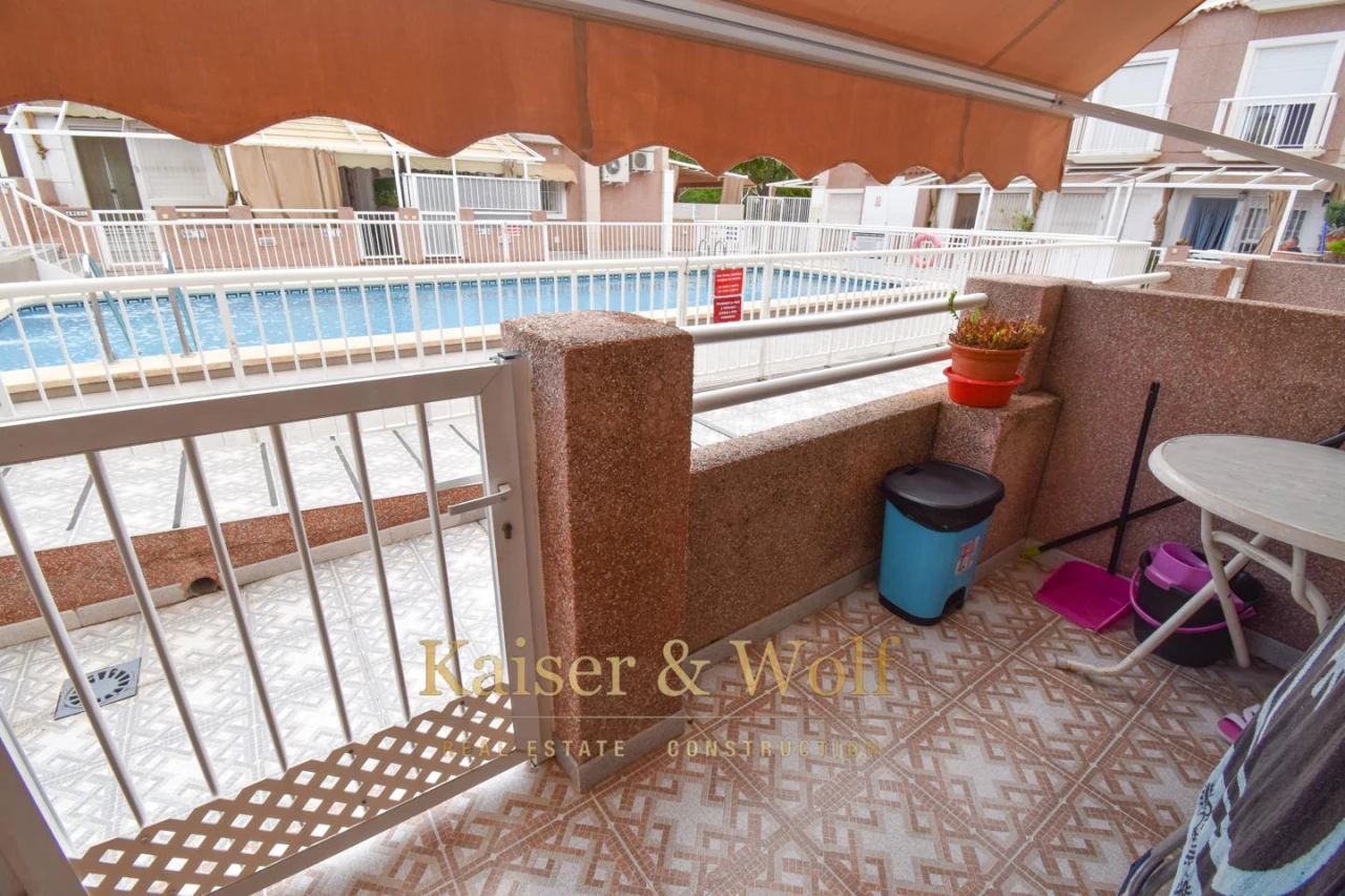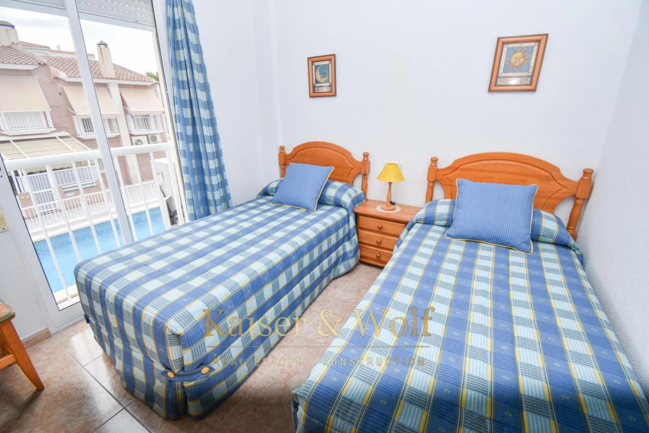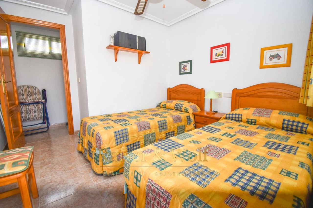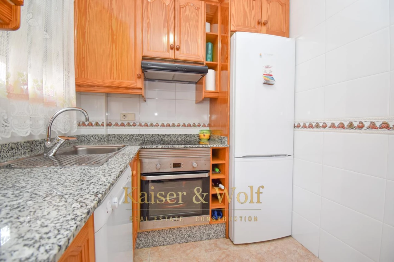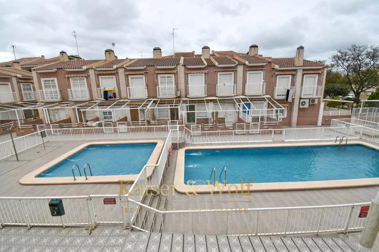 Are you looking for a home with outdoor space, swimming pool and parking? This comfortable 3-bedroom, 2-bath bungalow-style home is move-in ready and has everything you need. Located in a quiet residential area, it is in a private urbanization less than five minutes walk from Playa Lisa and Tamarit. The entrance to the house is from the street, and it has two independent terraces, facing east and west respectively, as well as a balcony in one of the bedrooms. It also has a community pool and underground parking space.