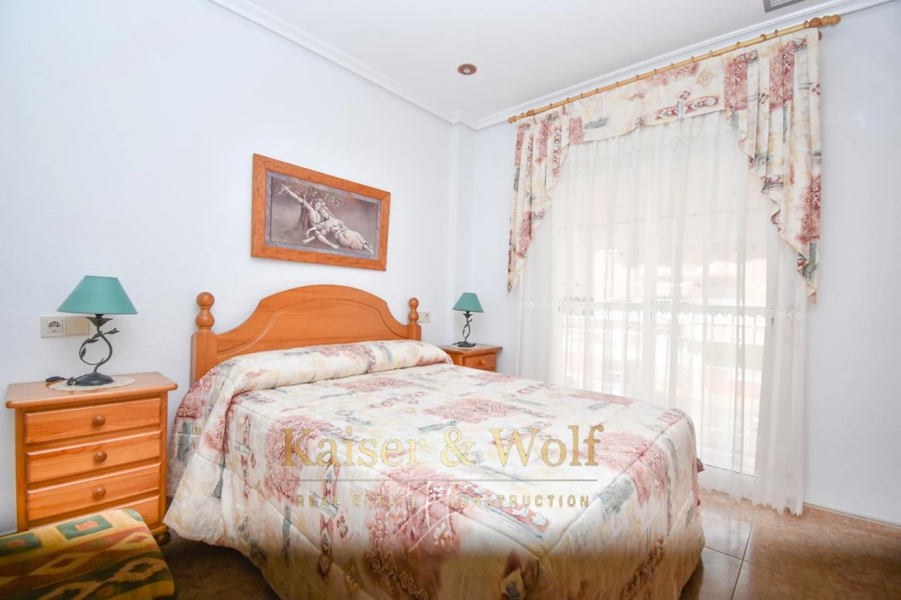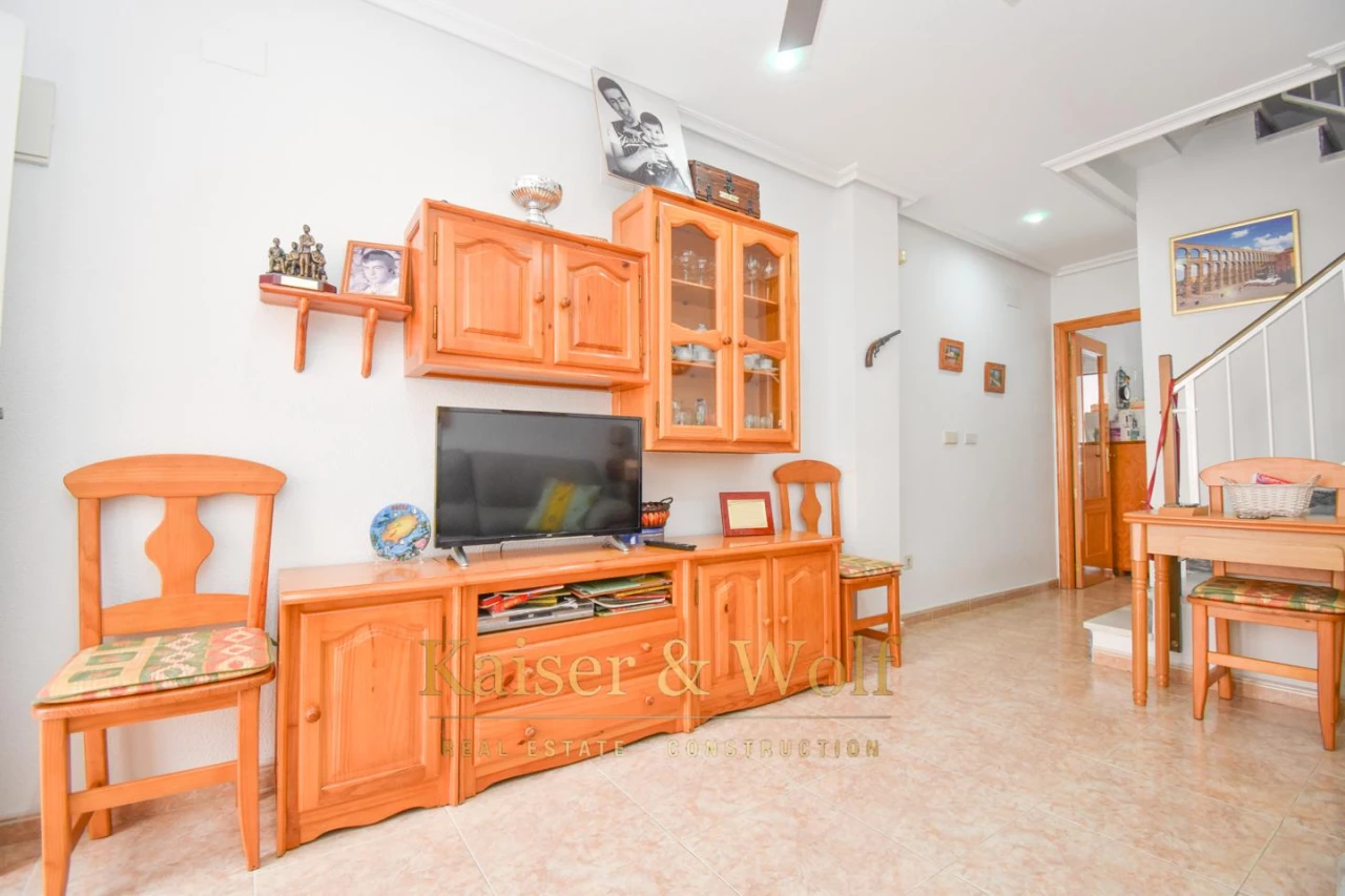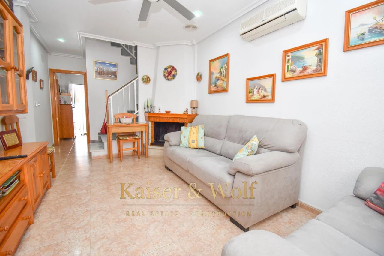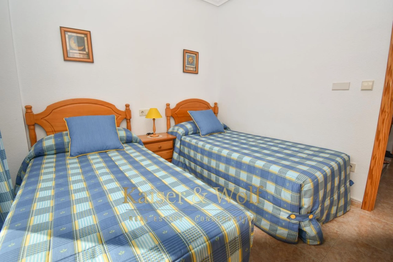Are you looking for a home with outdoor space, swimming pool and parking? This comfortable 3-bedroom, 2-bath bungalow-style home is move-in ready and has everything you need. Located in a quiet residential area, it is in a private urbanization less than five minutes walk from Playa Lisa and Tamarit. The entrance to the house is from the street, and it has two independent terraces, facing east and west respectively, as well as a balcony in one of the bedrooms. It also has a community pool and underground parking space.