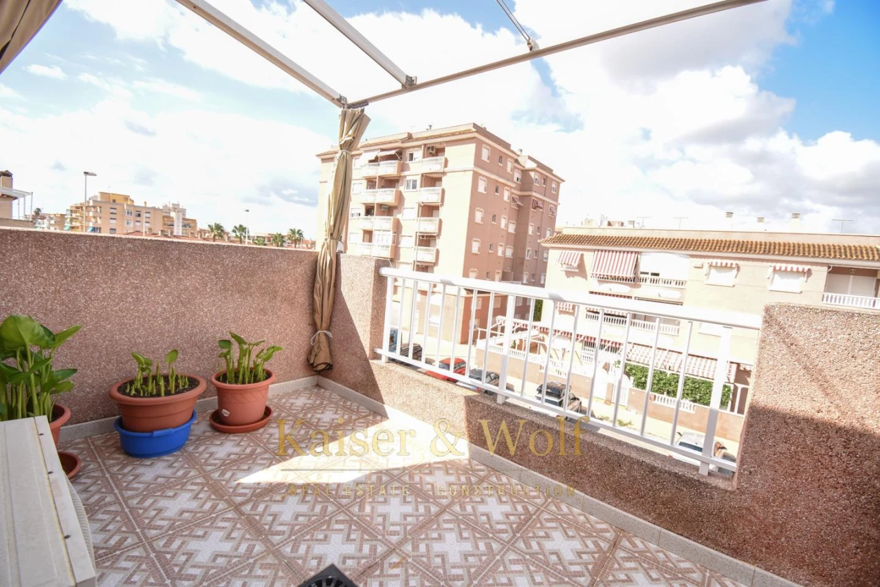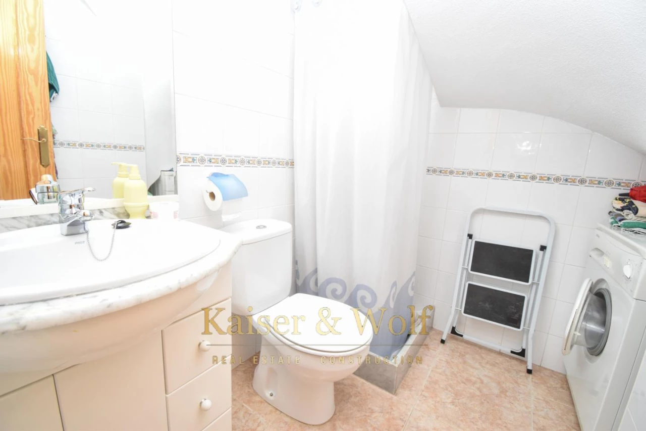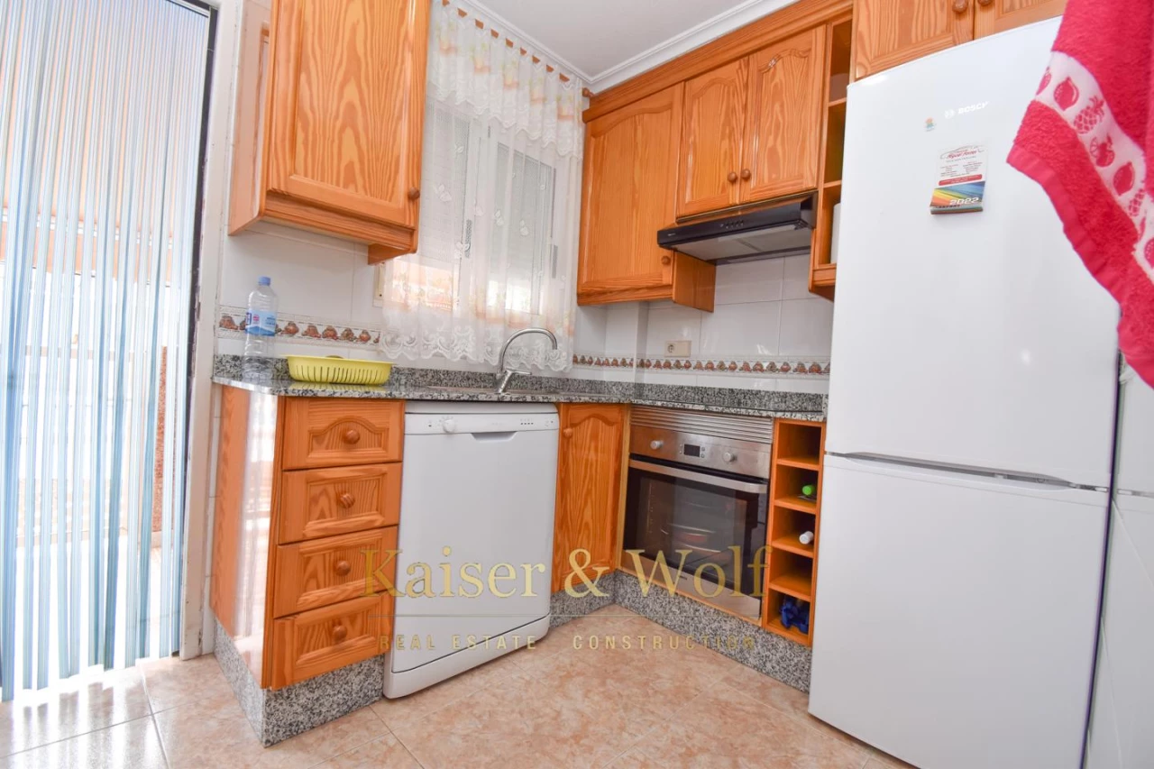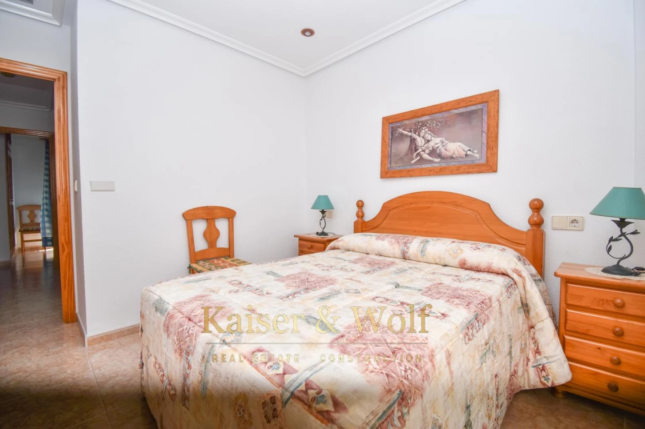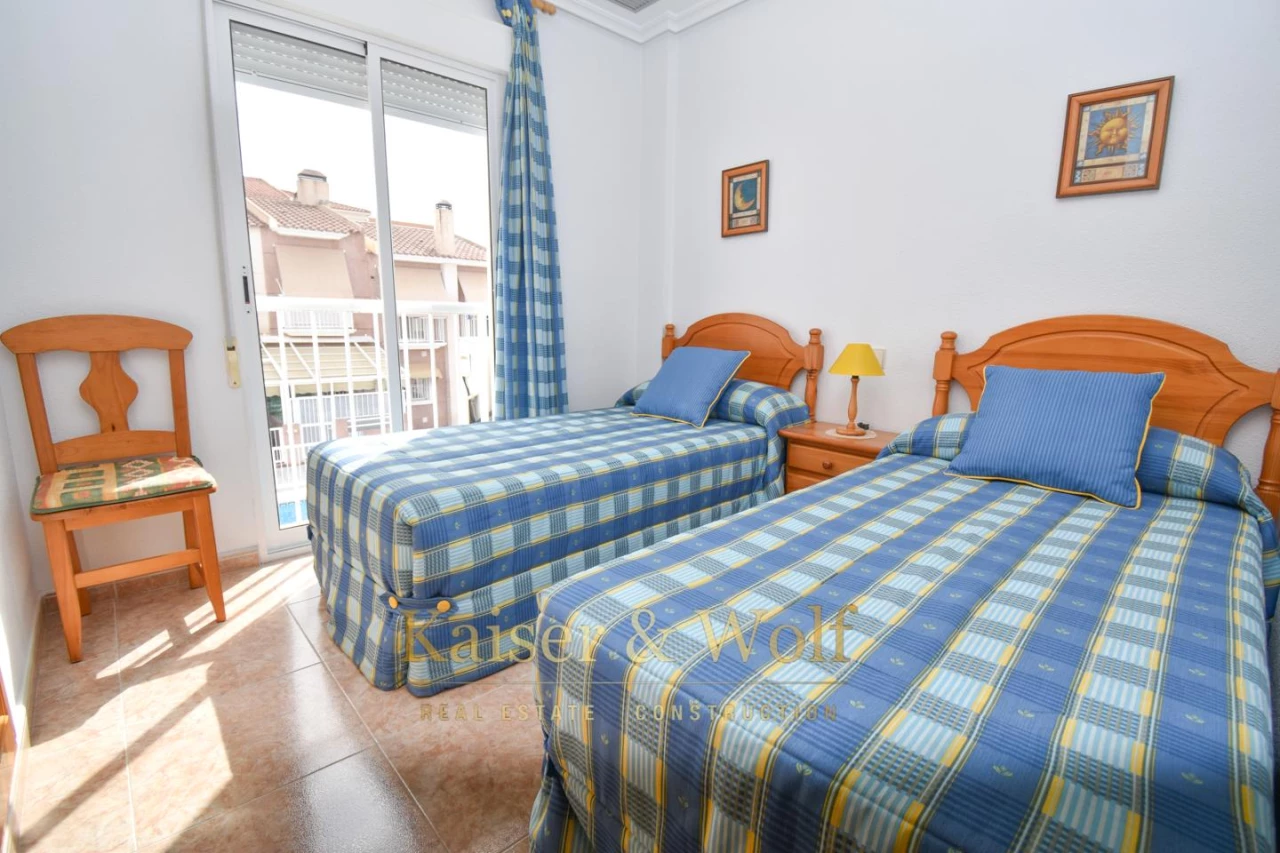 Are you looking for a home with outdoor space, swimming pool and parking? This comfortable 3-bedroom, 2-bath bungalow-style home is move-in ready and has everything you need. Located in a quiet residential area, it is in a private urbanization less than five minutes walk from Playa Lisa and Tamarit. The entrance to the house is from the street, and it has two independent terraces, facing east and west respectively, as well as a balcony in one of the bedrooms. It also has a community pool and underground parking space.