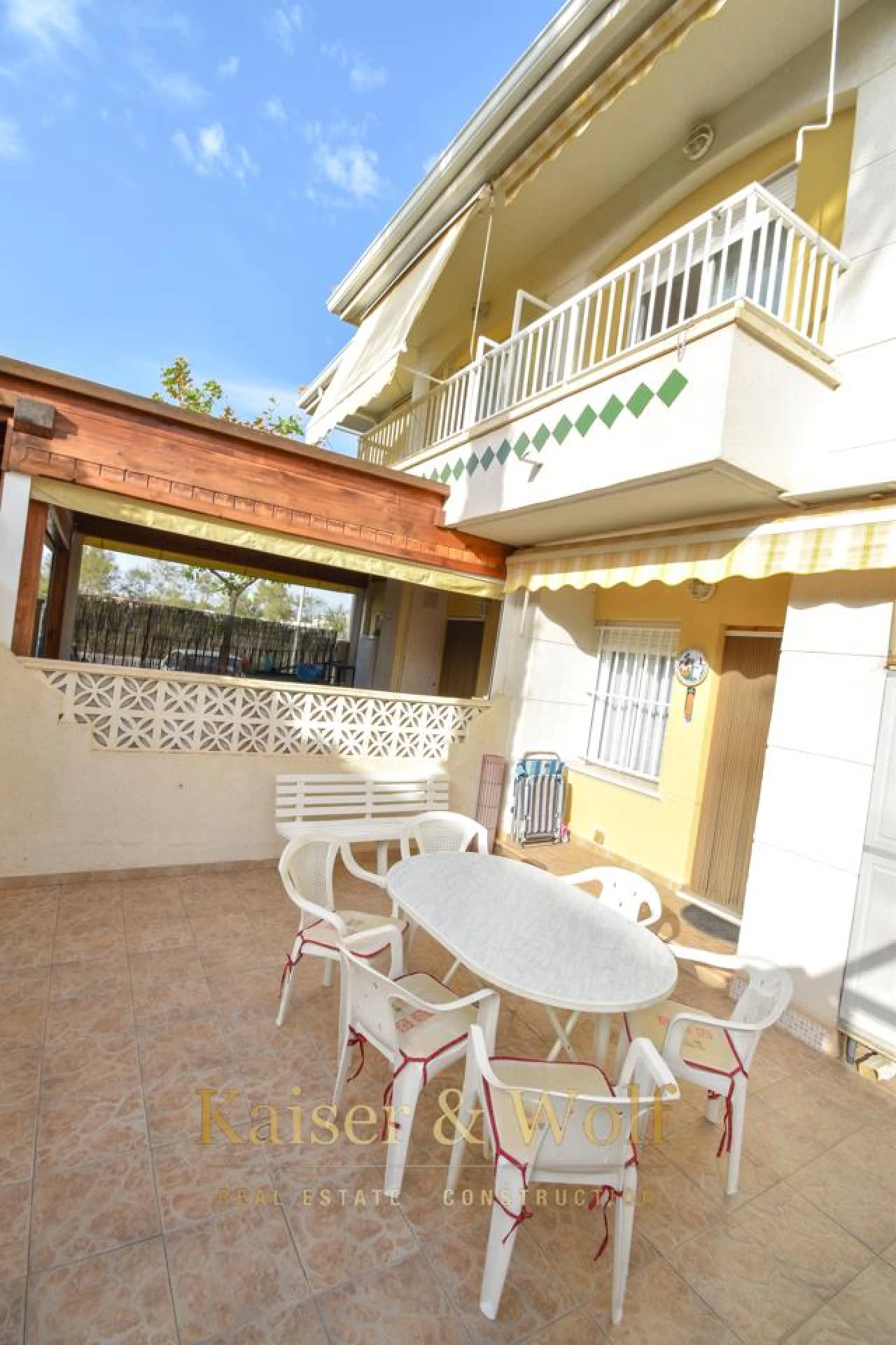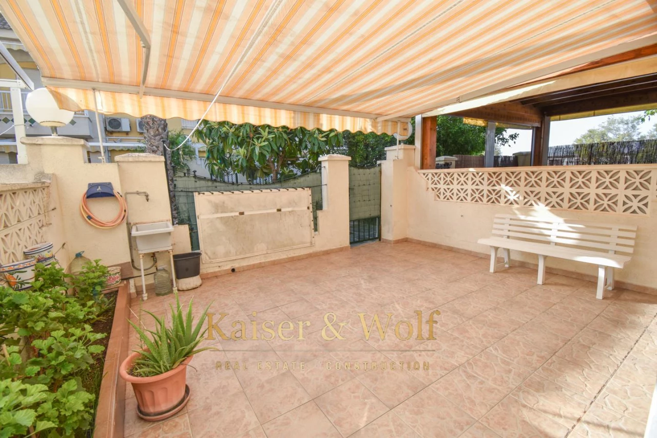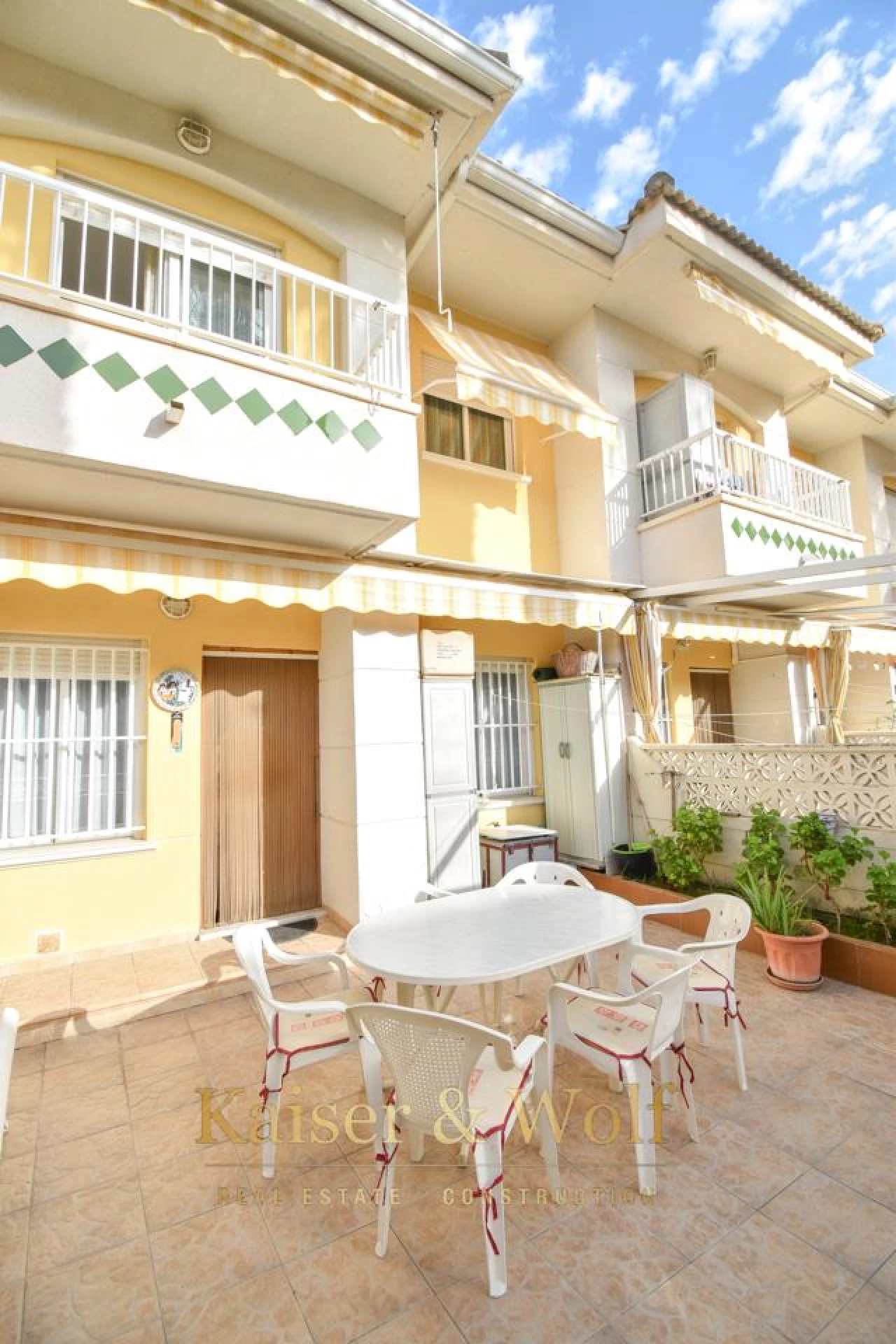 Townhouse with two bedrooms, 1 bathroom and 1 toilet in perfect condition, ready to move into. The house has a large west facing terrace -about of 20m²- with electric awning and facing an interior street surrounded by gardens and vegetation; it is a really quiet area with good privacy. The living room has a fireplace and has the possibility of an extension to connect it to the American style kitchen. The house is located very close to the market, the town's health centre and the bus station. About 200 metres from the beach, and less than 10 minutes from the Adolfo Suárez promenade.