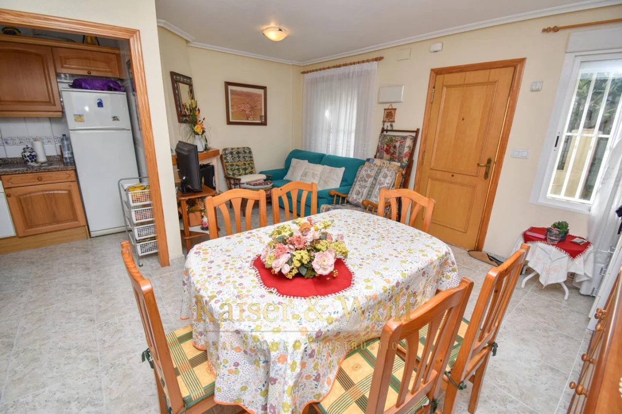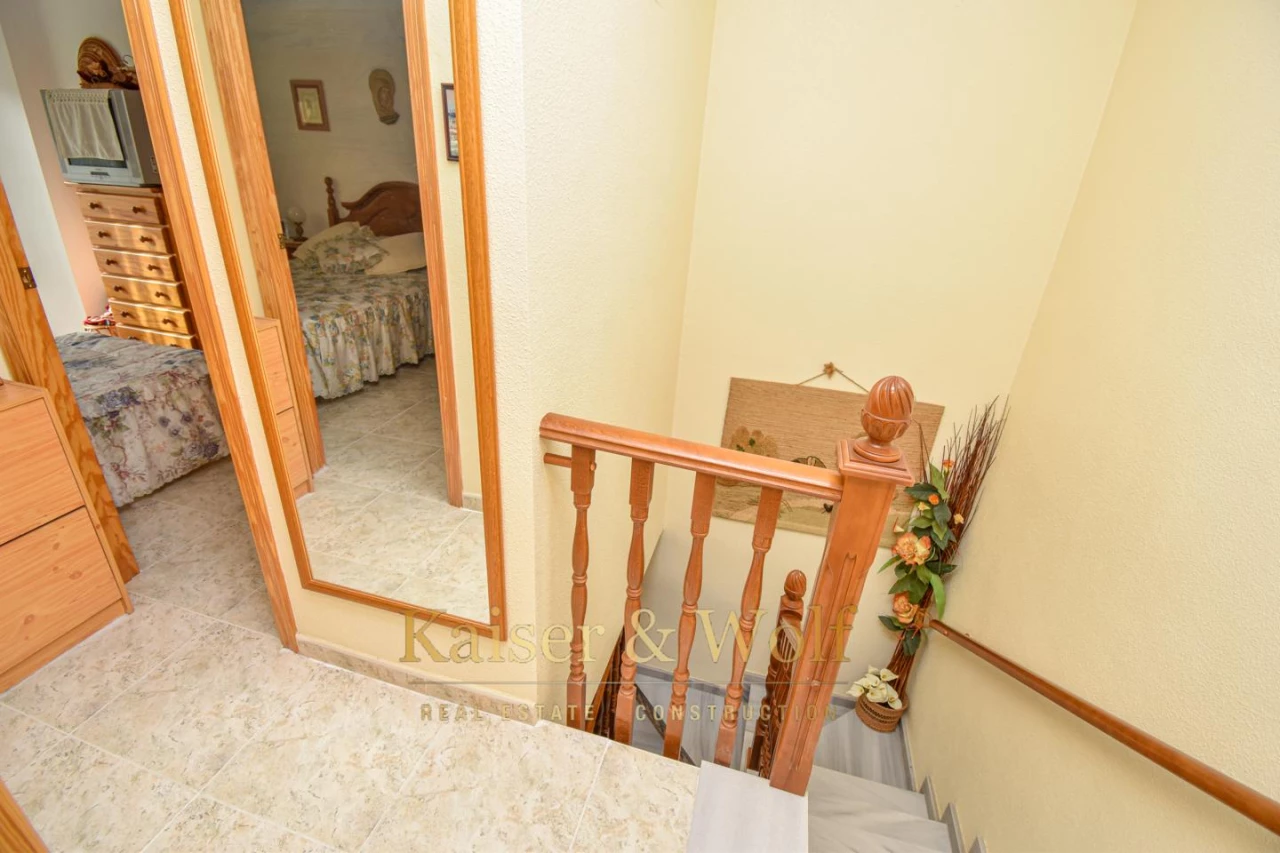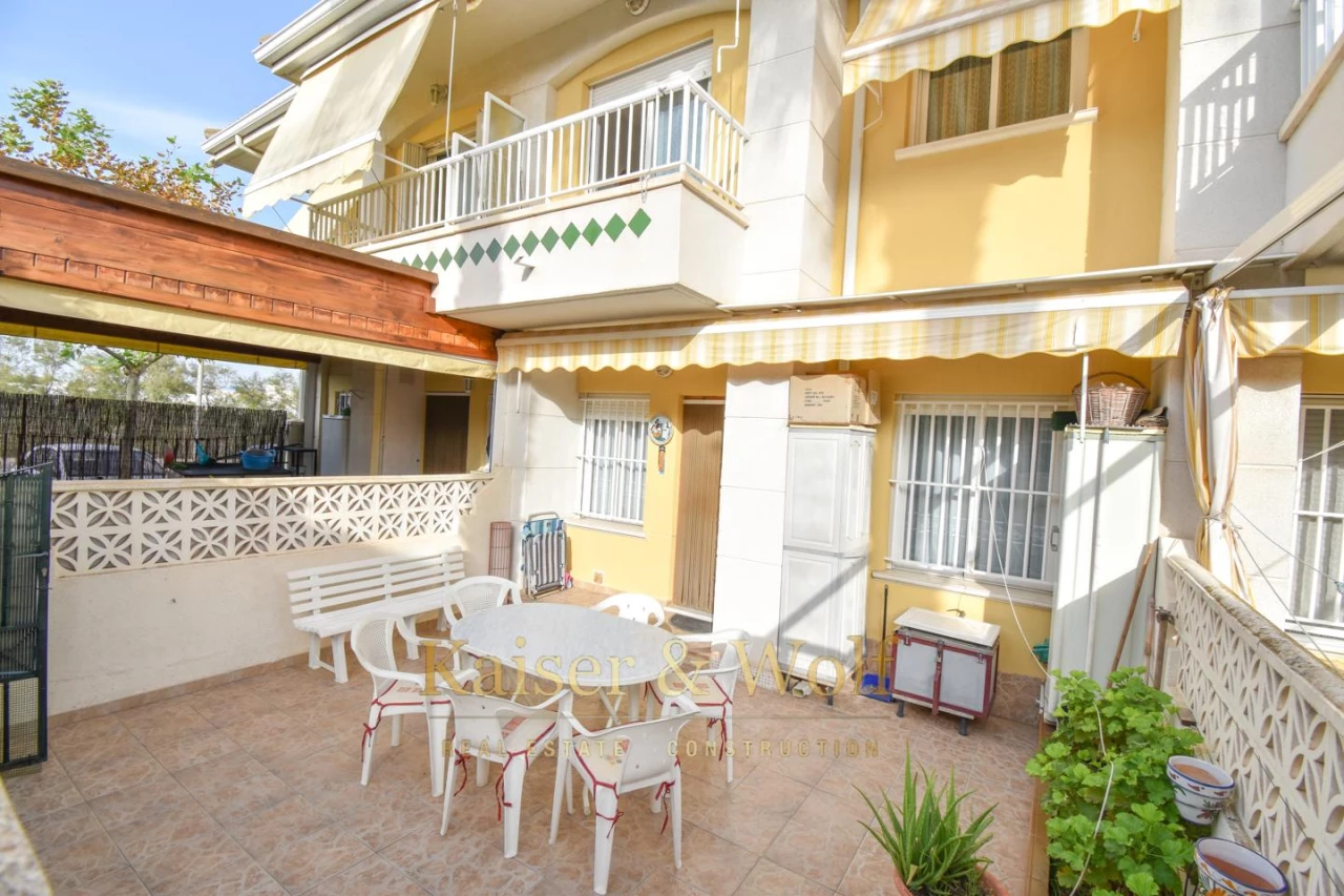 Townhouse with two bedrooms, 1 bathroom and 1 toilet in perfect condition, ready to move into. The house has a large west facing terrace -about of 20m²- with electric awning and facing an interior street surrounded by gardens and vegetation; it is a really quiet area with good privacy. The living room has a fireplace and has the possibility of an extension to connect it to the American style kitchen. The house is located very close to the market, the town's health centre and the bus station. About 200 metres from the beach, and less than 10 minutes from the Adolfo Suárez promenade.