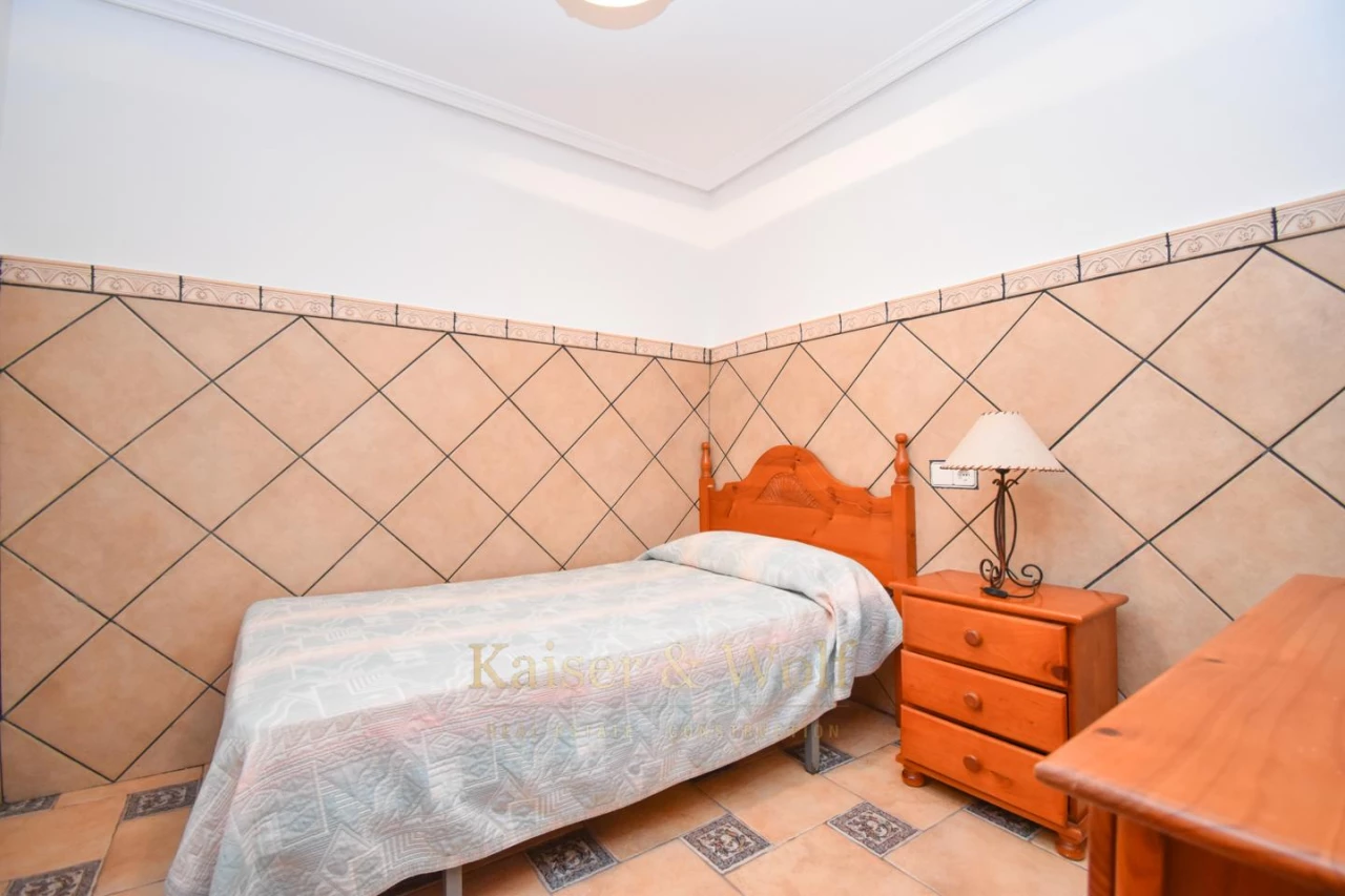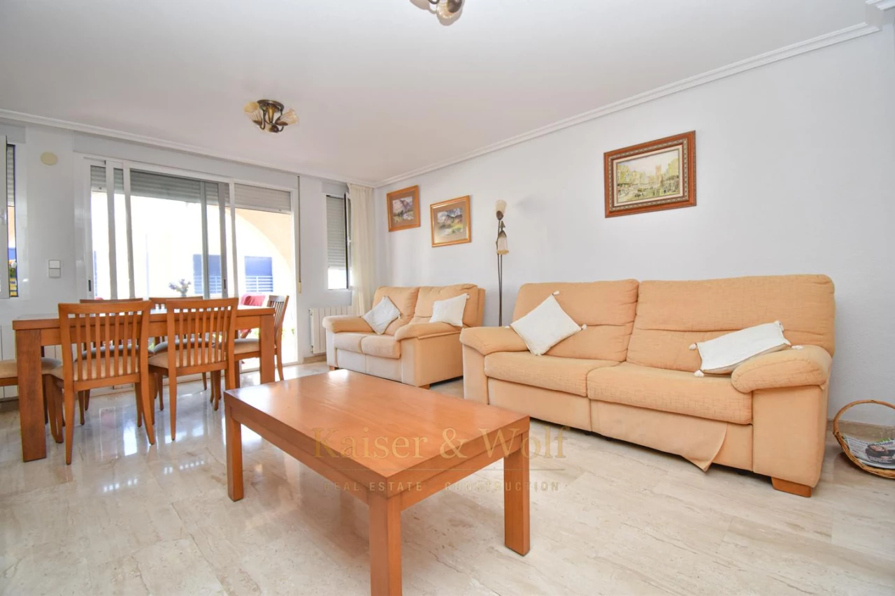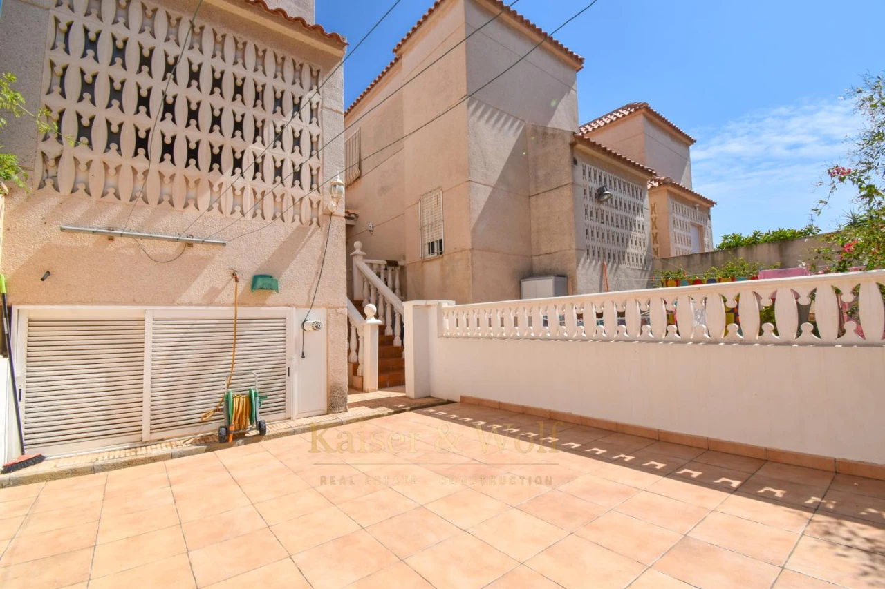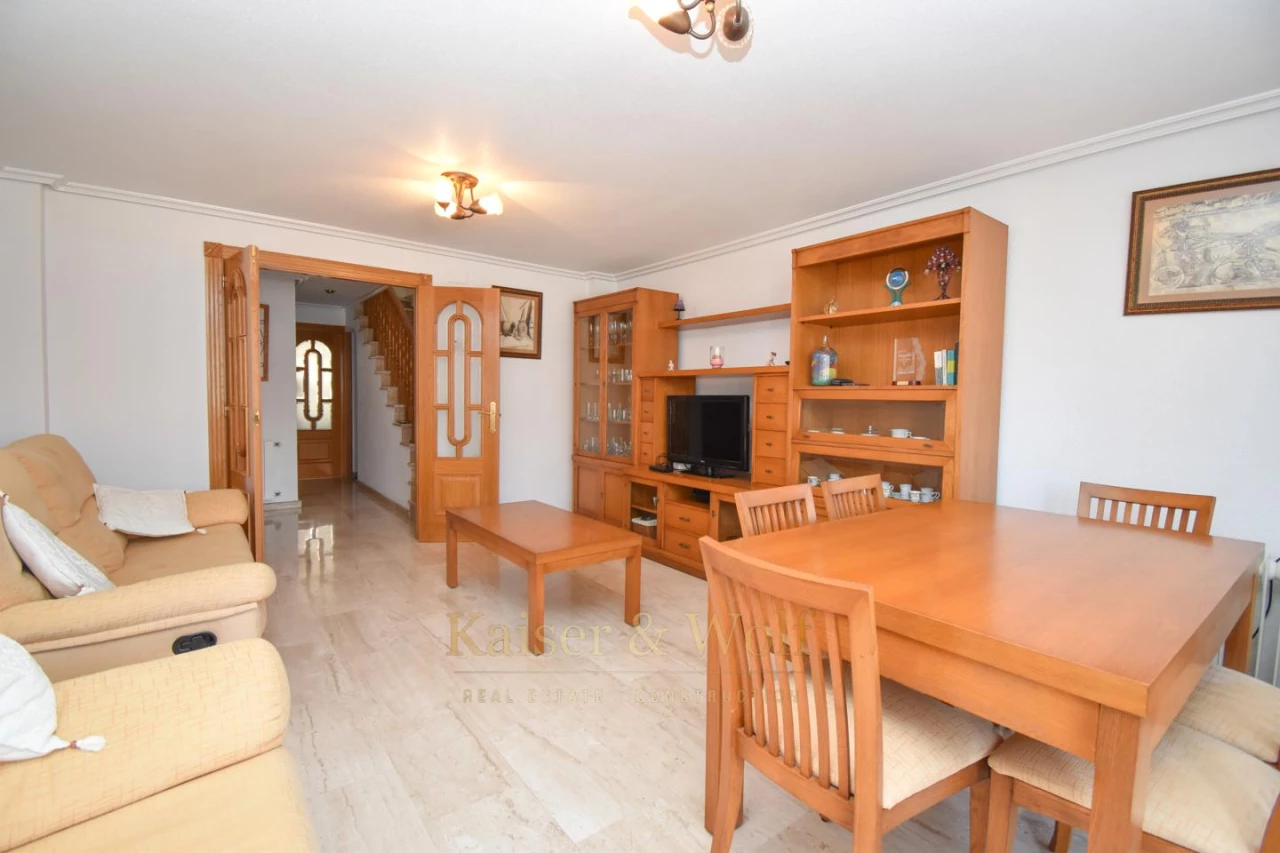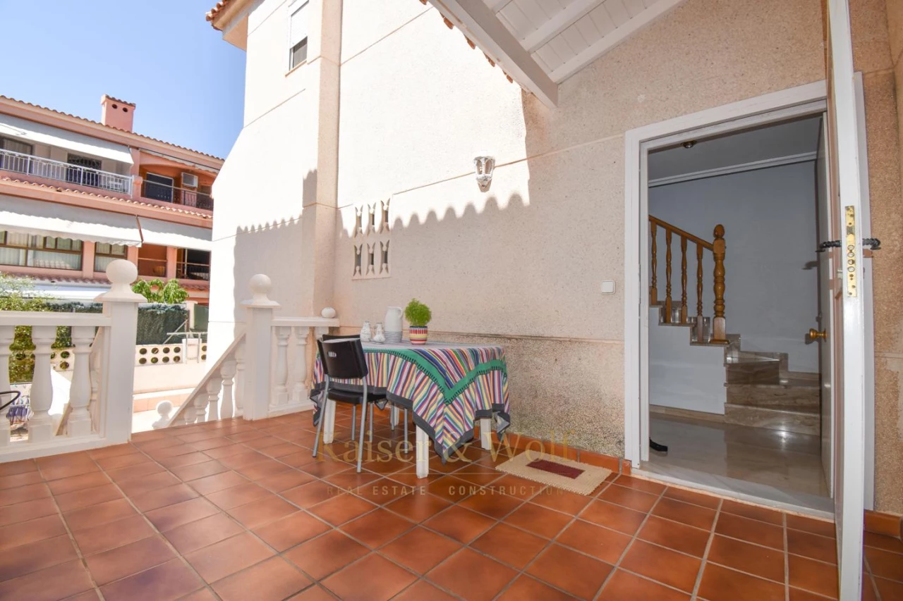 Triplex with 4 bedrooms, 3 bathrooms in Santa Pola del Este with excellent lighting thanks to its orientation to the east and the proximity of the coast. The house has several open spaces spread over a private terrace and two balconies (one of them adjoining one of the rooms). In addition, in the lower part of the house there is a second living room - dining room completely renovated in wood. The house is part of a private urbanization and has a parking area. Contact us for more information, to arrange a visit or to receive a video of the house.