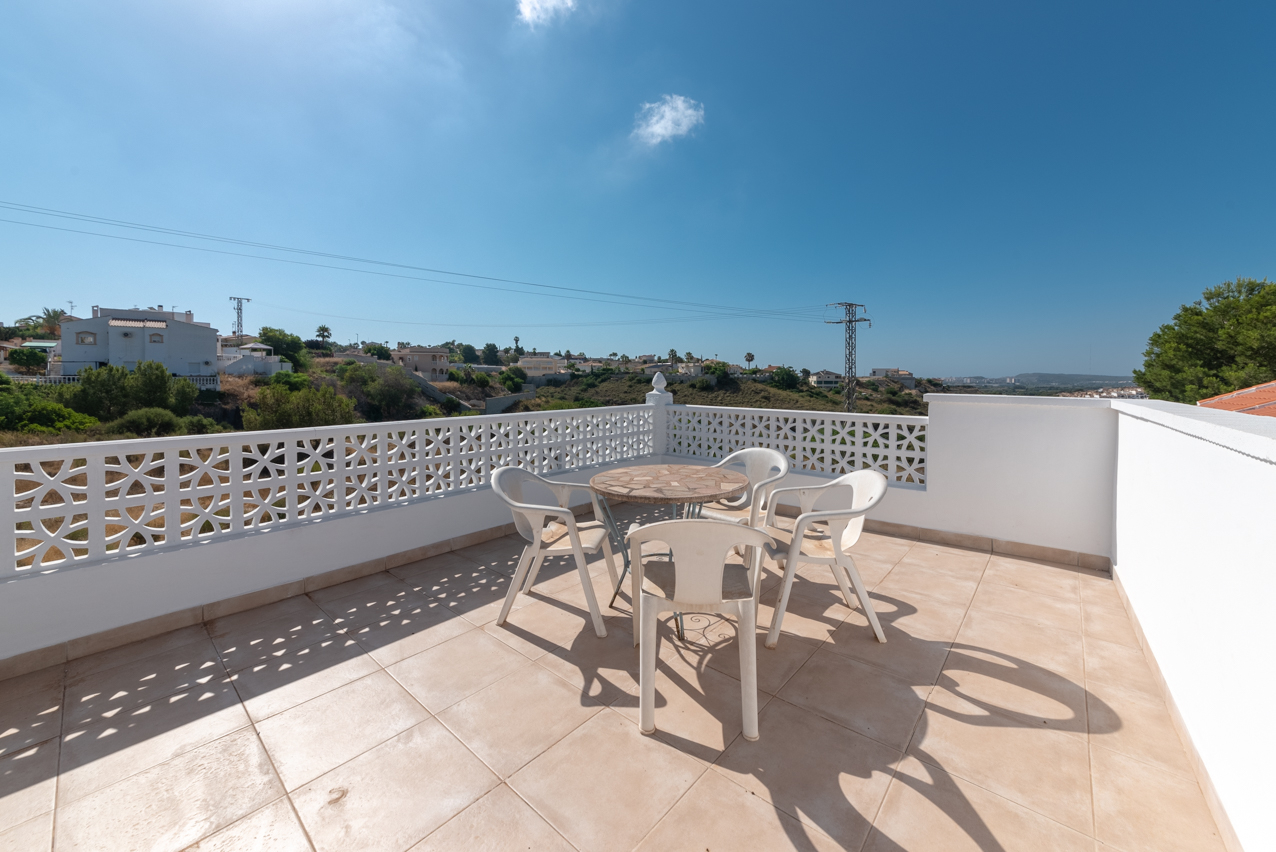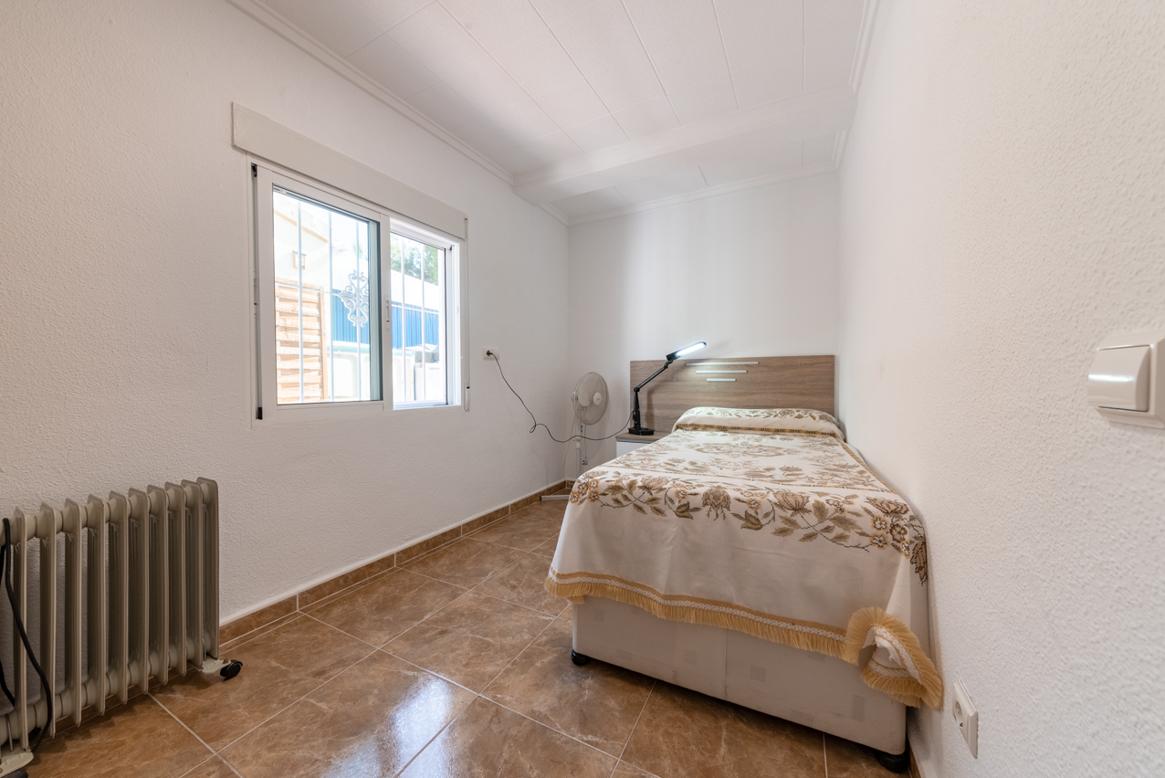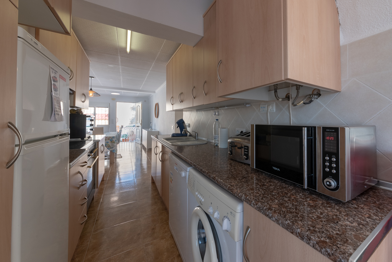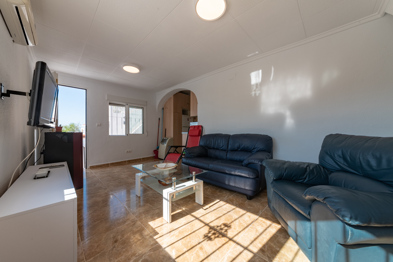 Detached Villa Close to All Amenities in Urb La Marina We introduce to you this extended detached villa, a model “Rosa” which is located in a cul-de-sac in a quiet yet central area of urbanisation La Marina close to all amenities which are only a few minutes walk away including supermarkets, shops, veterinary surgeons, hairdressers, banks and a great selection of bars and restaurants to suit all tastes. The garden is a good size measuring 207m2 which is paved and gravelled for low maintenance offering off road parking and offers shaded and sunny areas to relax and enjoy the sunny climate here on the Costa Blanca. Easy Living with everything on one level The property having been extended comprises a dining room leading to a fully fitted open plan kitchen, two bedrooms, a renovated bathroom with wall to wall shower and modern suspended vanity unit complete with LED mirror. The kitchen leads to a living room with pellet burner and from this room there is a door leading to the garden as well as interior access to a roof top solarium with beautiful views of the green area and to the neighbouring town Guardamar del Segura. This “Rosa” also has a store room to the rear of the driveway. The property makes for easy living as it is all on one level. We find this property in good condition offering many extras such as: aluminium windows, storage facilities, air conditioning in the main living space, security grills etc and is being offered fully furnished. The golden beach of La Marina Village is easily reached by car only 5 minutes away and a local seasonal bus service runs throughout the urbanisation to the beach during the summer months. The urbanisation is only 25 minutes drive to Alicante airport so it is very handy for those catching flights or collecting visiting family and friends. Contact Our Real Estate Agency in La Marina We are only a phone call, whatsapp or email away! Our friendly staff will help you find your dream home and answer any questions you may have about this property or any of our other listings.