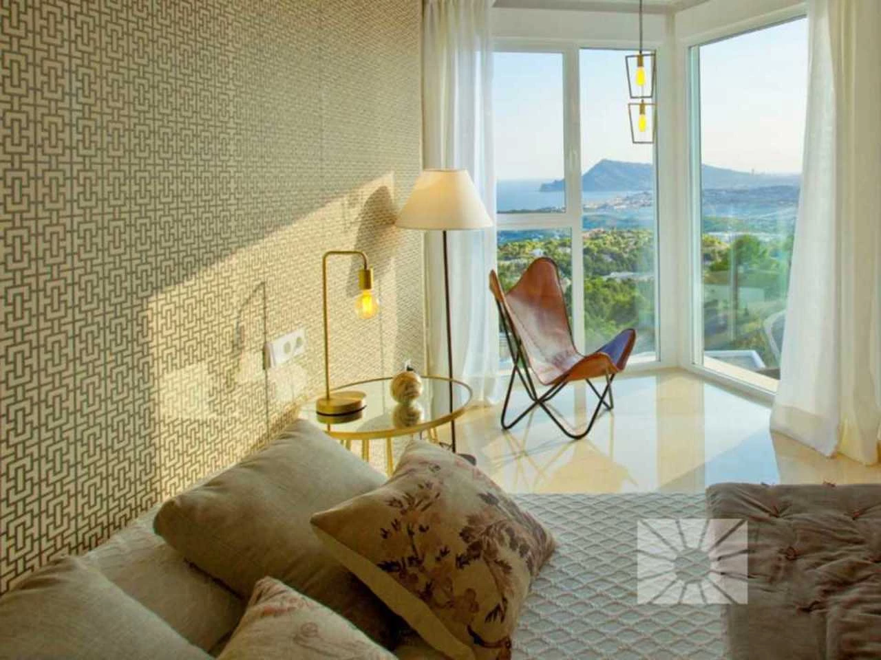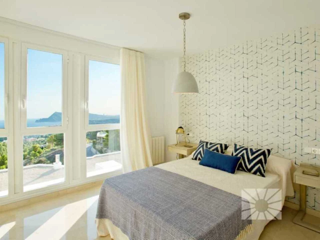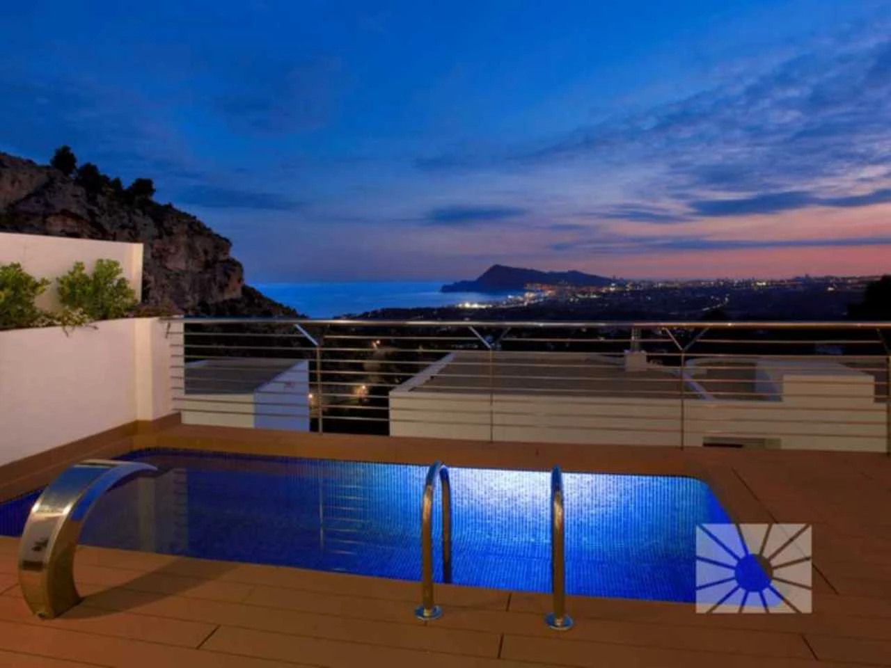 What a magnificent property, on 3 floors with a lift, private pool, double garage and amazing views out to the ocean. The property is situated at the top of Altea giving uninterrupted vies to the sea and where in the evening you can see the lights of Benidorm in the distance, simply spectacular. On entering the property on the ground floor you find the large double garage and storage area, as well as a room that can be the 5th bedroom or an office space, along with an ensuite bathroom. Here you can either use the stairs to go up to the lounge or take the internal lift. The first floor houses the open plan kitchen and lounge as well as a master bedroom with walk in wardrobe and ensuite. There is also a laundry room and gurst bathroom. Wall to wall glass doors open out onto a huge terrace with swimming pool where you can enjoy the spectacular views or just rest and relax . The terrace has a bbq and plenty of room for outdoor dining. The top floor has 3 more bedroom suites each with walk in wardrobe and ensuite. This property has a direct link to the highway, 10 km from Benidorm, and just 50 km from Alicante airport and 100 km from Valencia. The picturesque coastal town of Altea allows us to have all the services and leisure of a big city and, at the same time, enjoy a viewpoint open to nature and the intense blue of the Mediterranean Sea, immersed in a natural environment.