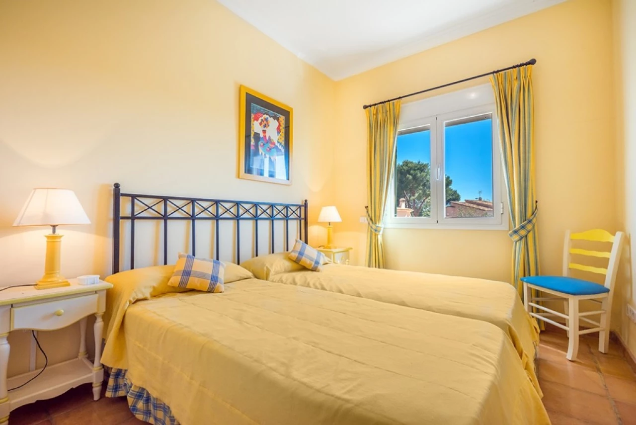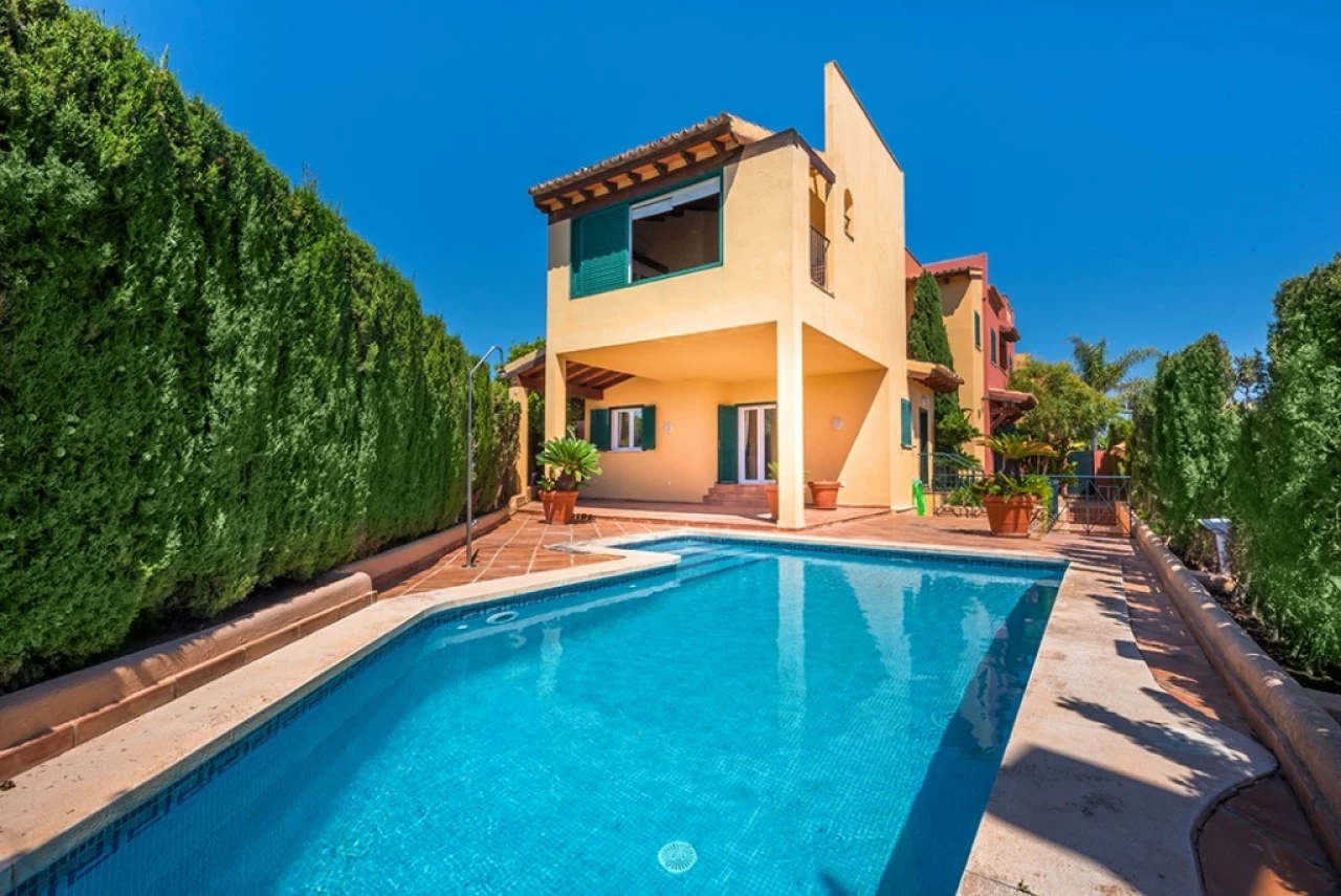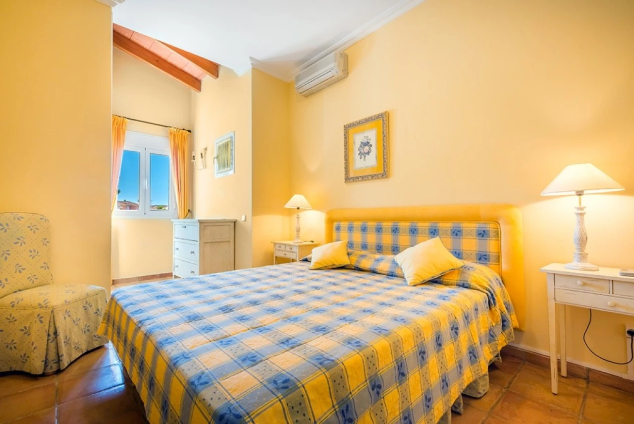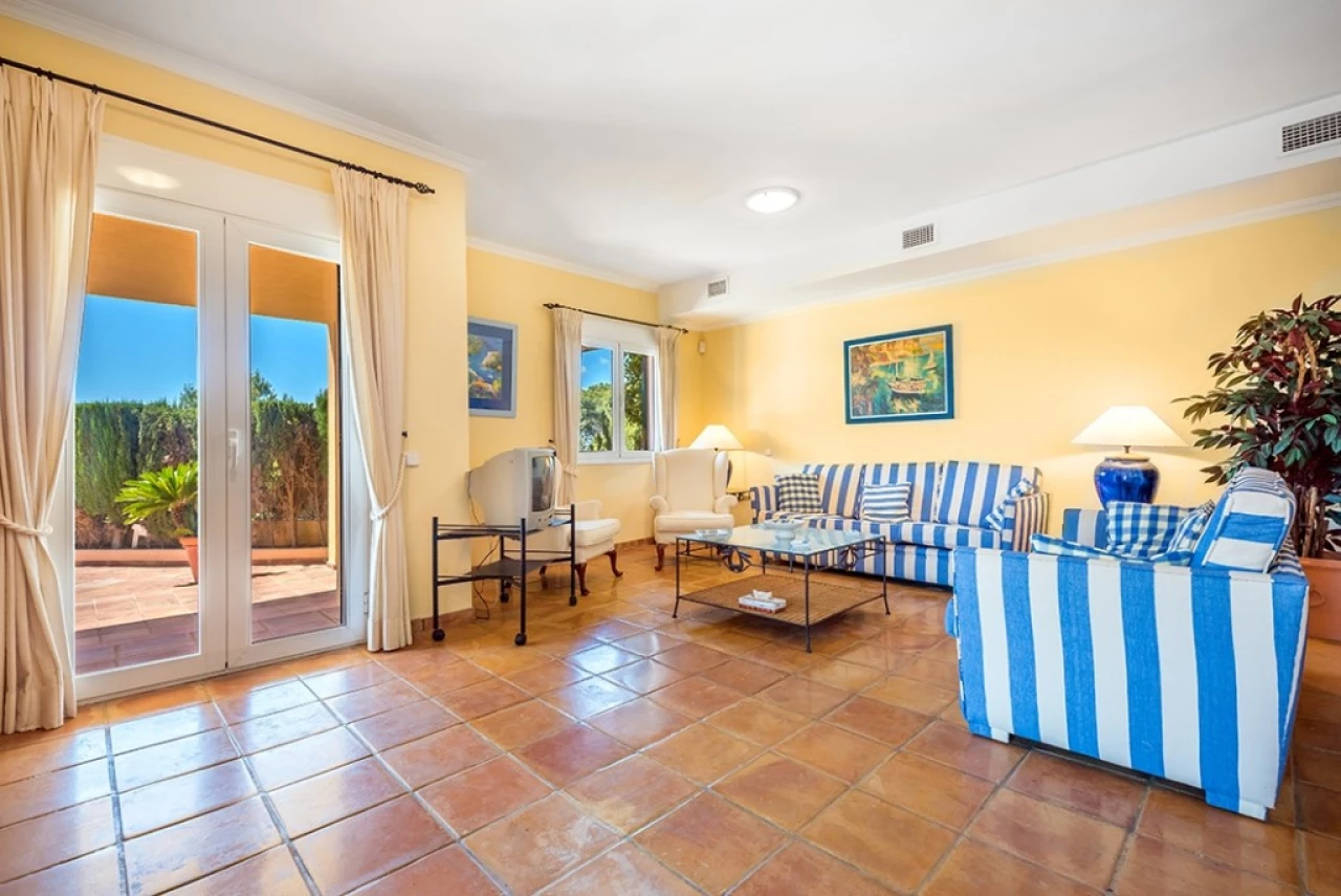 This property for sale in Mallorca is a very attractive villa in Son Verí, an exclusive area of Palma, the capital city of the Balearic Islands. It was built in the year 2000 and has two floors and a basement with 629sqms of living space. Of this total space a guest apartment occupies 100sqms which could easily be converted into anything else the new owner wishes, such as a children´s room, etc. The property is situated within a community complex and has access to three community pool as well as its own individual pool and garden where there is a barbecue area. There is also a 200sqm private parking space in the basement. Accommodation comprises a large living room, a 25sqm kitchen which is fully fitted and extremely well planned with a view to being essentially functional, eight bedrooms and eight bathrooms, some on the ground floor and others on the first floor. The master bedroom is on the first floor and has its own dressing room, exposed wooden ceiling beams and white lacquered woodwork with stunning views out over the Bay of Palma. This is a magnificent property in an unbeatable area of Palma.