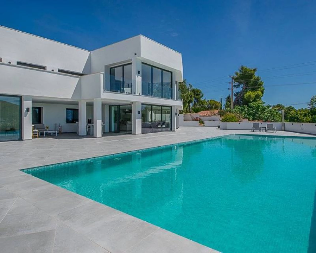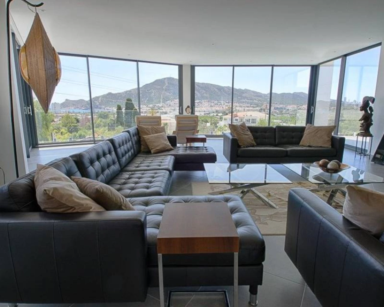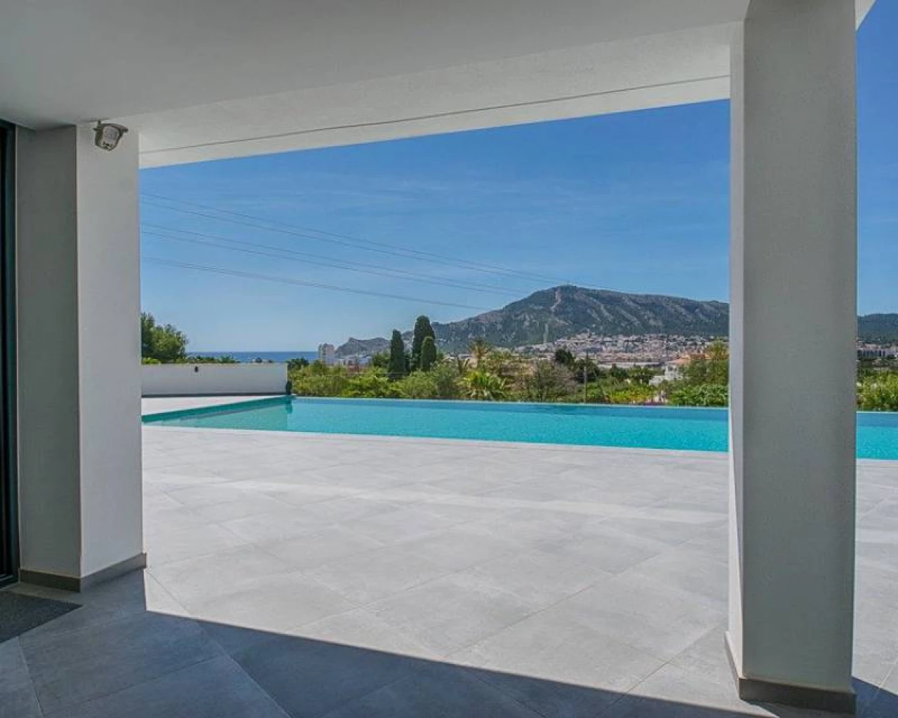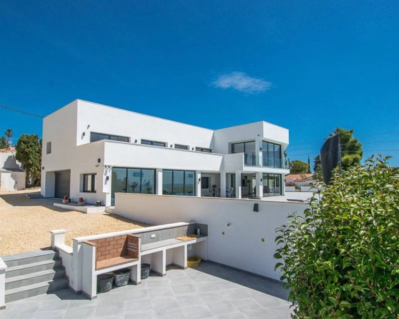 This fantastic villa with spectacular sea views is located in a quiet area between Altea and Albir. Distributed over two floors, it was completely renovated in 2018 with high quality finishes and with great attention to every detail.. . The upper floor consists of a spacious living-dining room with large windows that give the entire room a lot of natural light and allow you to enjoy the spectacular sea views, three bedrooms with three en-suite bathrooms. From this floor there is access to the sunny terrace and the pool area. The upper floor has another spacious living room, kitchen with dining area, two bedrooms and two en-suite bathrooms.. . Outside, we find a large and sunny terrace around the 6x16m infinity pool, barbecue area and a beautiful consolidated garden with a variety of native plants and trees. The villa is equipped with underfloor heating, air conditioning, alarm, water tank, garage, parking area for 10 cars on the plot, a large solarium, video intercom, etc.. . In short, an exceptional villa with wonderful views of the sea, located on a large plot just 5 minutes by car from the center and the beach..