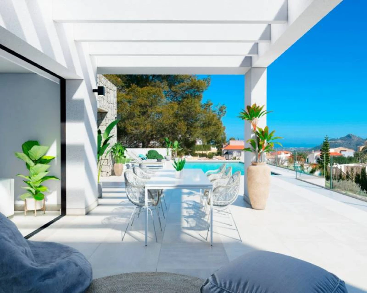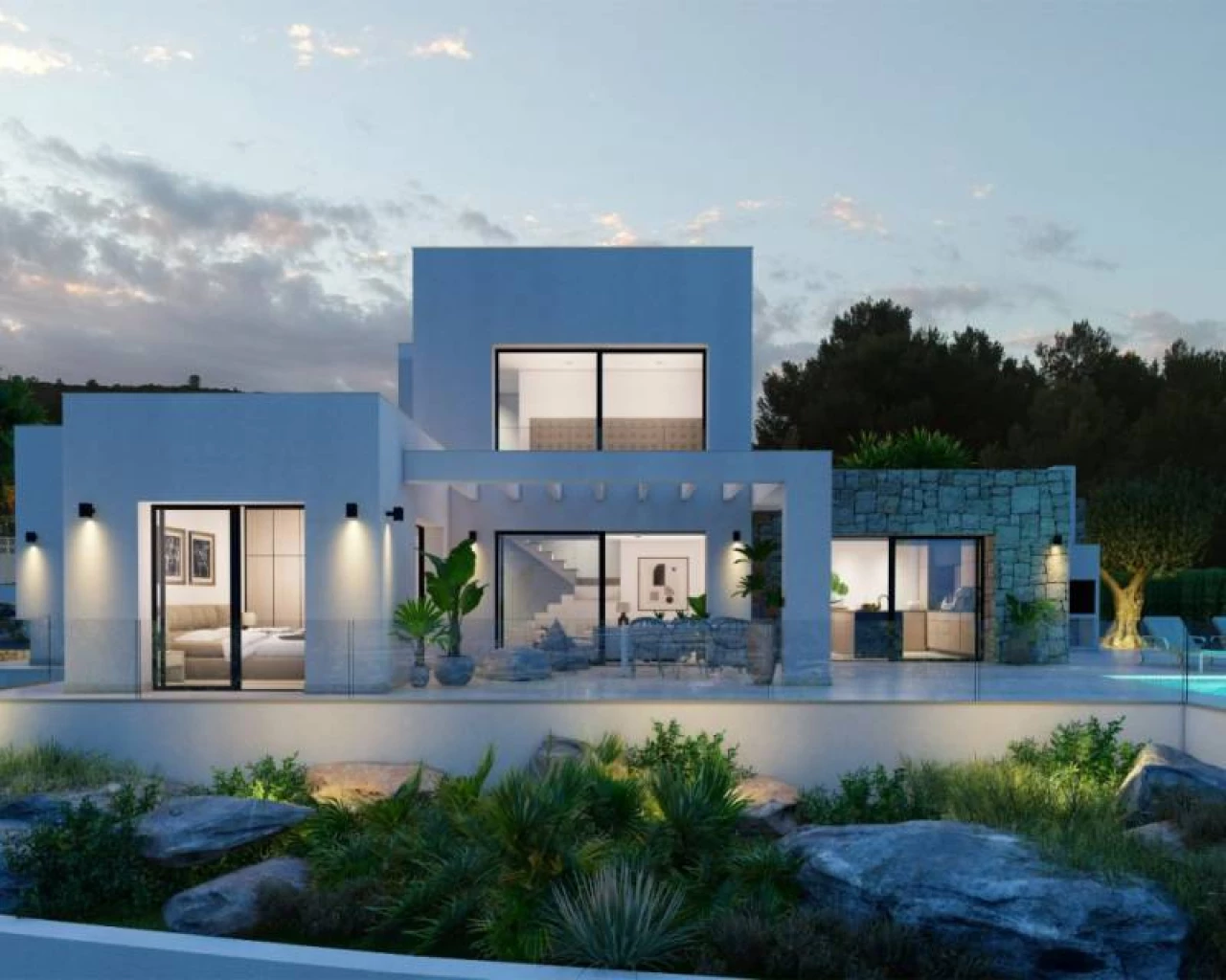 Project for a villa in a modern urbanization with mountain views. This house is spread over two floors.. . The house will have on the ground floor two double bedrooms (one en suite), a spacious and bright living-dining room and an American kitchen.. On the first floor there will be a third bedroom with dressing room and a bathroom en suite.. Of course, you have a pergola for your car.. . The location of this project is fantastic, the town of Pedreguer with basic services is only 1 km away, the Portal de la Marina shopping center with all amenities such as restaurants, shops, supermarkets, cinema, etc. is only 6 km away and the cities of Denia and Javea with their spectacular beaches and a wide range of leisure activities at and 10 km and 14 km.. . It is very well-connected, the road access is comfortable and smooth, via the national road N-322 and the AP-7 motorway just 6 minutes away, Alicante airport is only 102 km and Valencia airport 110 km with a wide range of national and international flights connecting all over the world.. . We use the best materials to build your design house and guide you every step of the way.. For more information, please contact us.. . *The price of the project is subject to price increases of building materials..