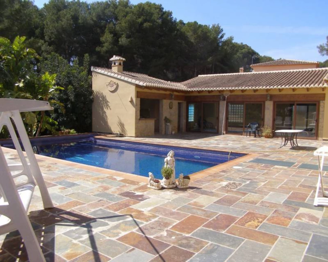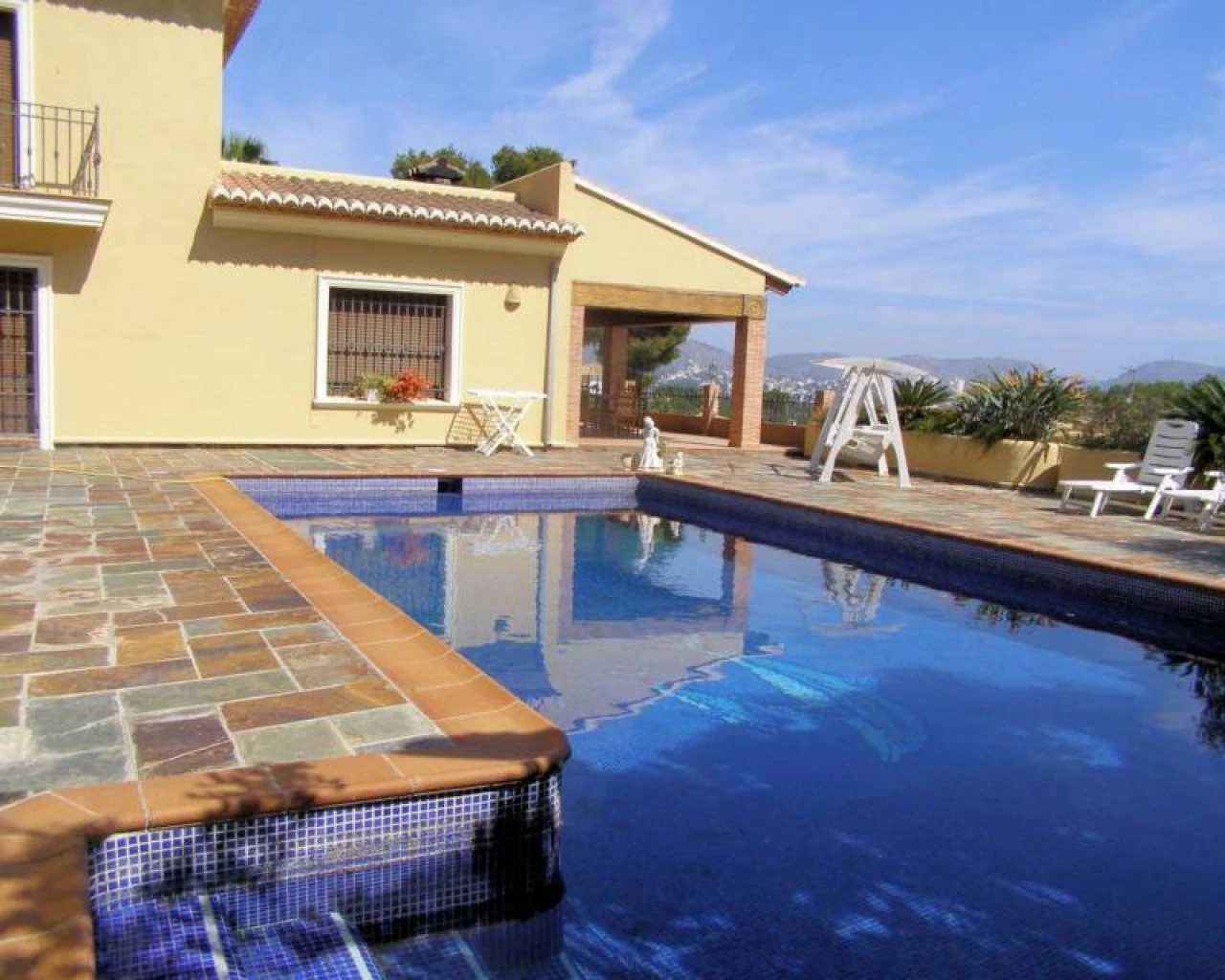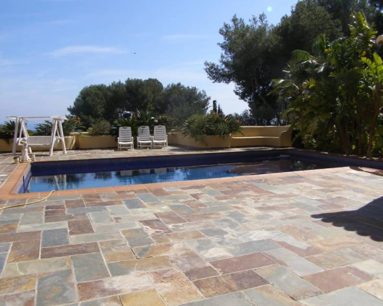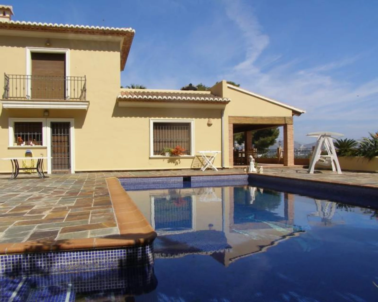 Very private immense villa on a large plot and with stunning sea views in Moravit, Moraira at walking distance of the center and the beach. . . The villa is built on 3 levels with the main residence on the middle floor where you also find the terrace, the pool, summer kitchen, and indoor pool. The master bedroom on the top floor has a bathroom en suite and a large terrace from where the views are stunning. . . The lower level of this extensive villa consists of a spacious apartment and a large game room with bar. . . All levels are accessible via internal staircases. In total there are 2 lounges, 2 kitchens, 6 bedrooms, and 6 bathrooms. . . Extras: Naya, patio, Jacuzzi, sauna, laundry room, large storage, bodega, floor heating, air conditioning, double garage and ample parking places, beautiful mature garden.. . YOUR ESTATE AGENT ON THE COSTA BLANCA IN SPAIN. . DO NOT HESITATE TO CONTACT US FOR MORE INFORMATION. .