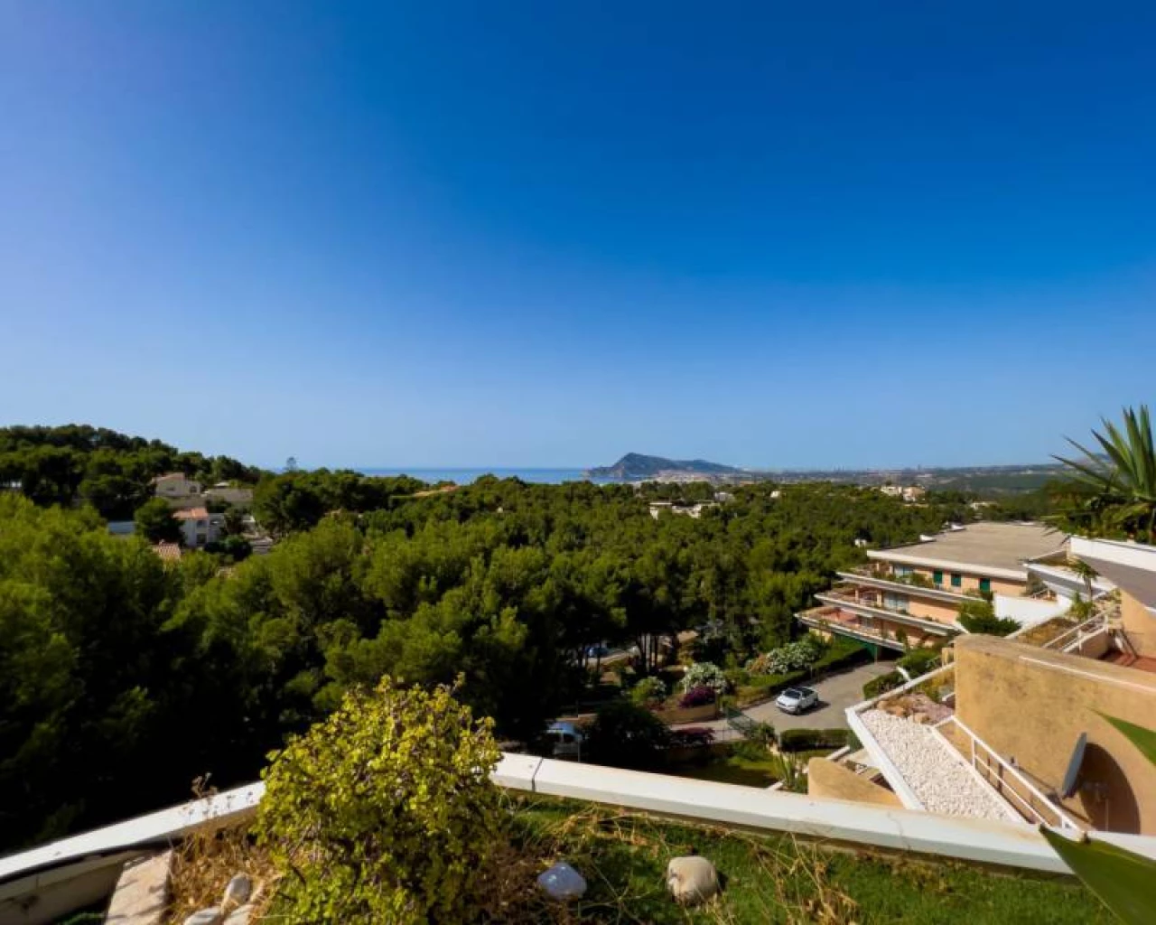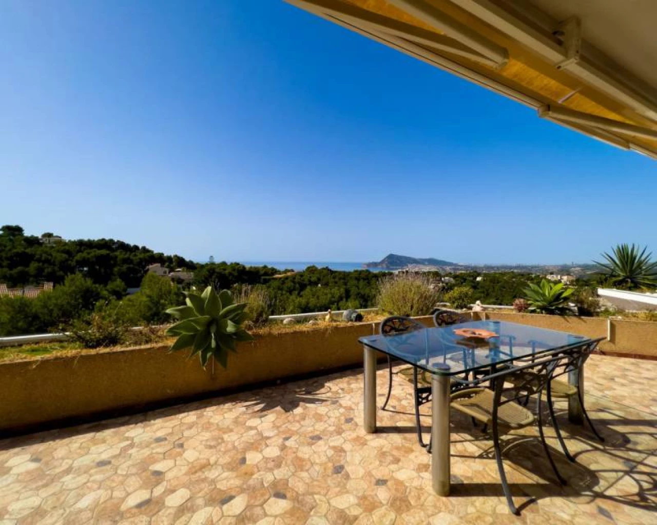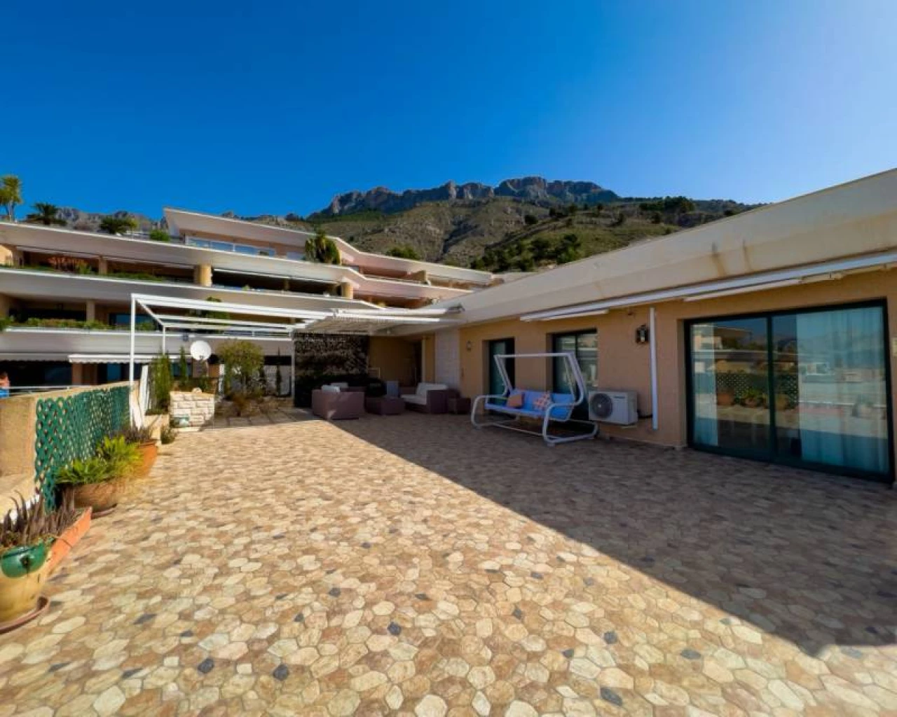 This impressive penthouse is located in a quiet residential area with wonderful communal areas with immaculate gardens, two large swimming pools, various lifts and garages.. . The apartment consists of a spacious living-dining room, a fully equipped independent kitchen with a utility room, three double bedrooms, and two bathrooms. The master bedroom also has direct access to the covered terrace. . . The large terrace offers ample space for garden furniture to enjoy relaxed outdoor living with spectacular views of the sea and the entire bay of Altea.. . There is the possibility of buying a parking space in the basement of the building. It is not included in the price. . . Do you like this fabulous penthouse? Call us for a viewing! It is worth a visit!