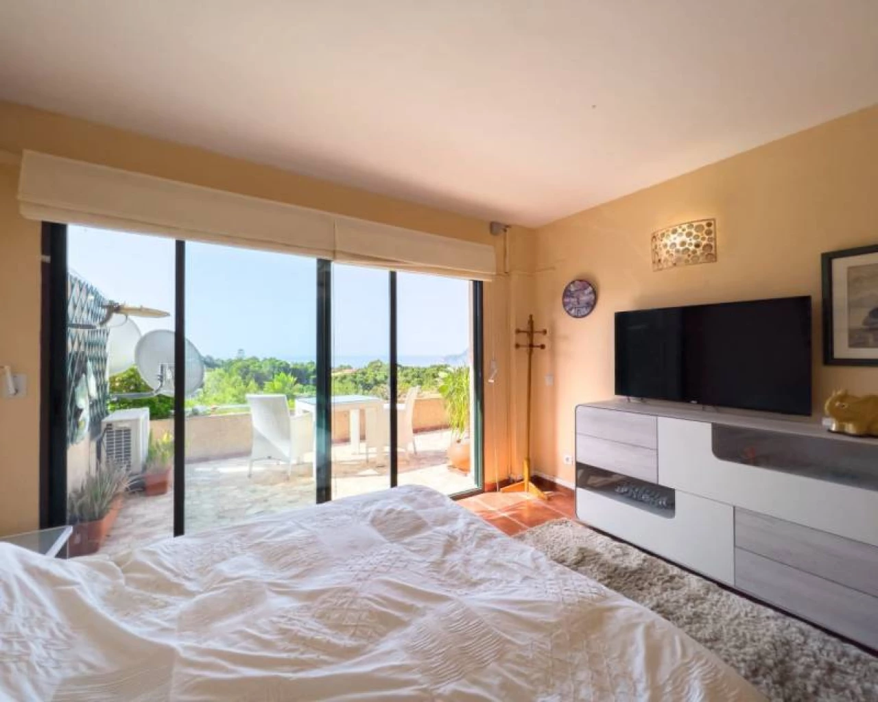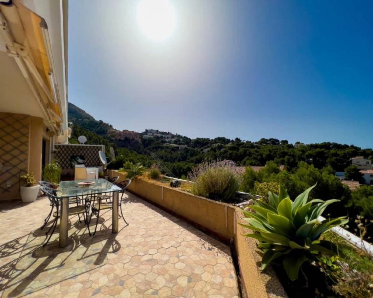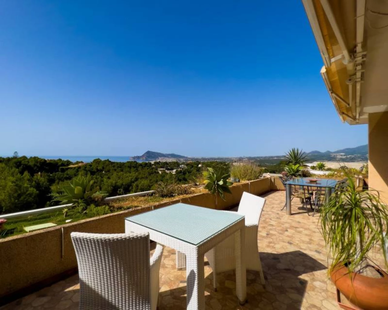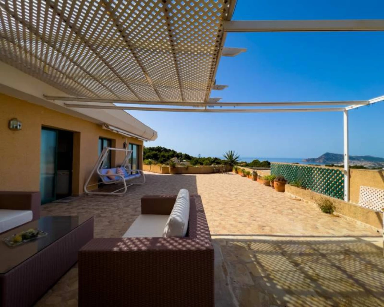 This impressive penthouse is located in a quiet residential area with wonderful communal areas with immaculate gardens, two large swimming pools, various lifts and garages.. . The apartment consists of a spacious living-dining room, a fully equipped independent kitchen with a utility room, three double bedrooms, and two bathrooms. The master bedroom also has direct access to the covered terrace. . . The large terrace offers ample space for garden furniture to enjoy relaxed outdoor living with spectacular views of the sea and the entire bay of Altea.. . There is the possibility of buying a parking space in the basement of the building. It is not included in the price. . . Do you like this fabulous penthouse? Call us for a viewing! It is worth a visit!