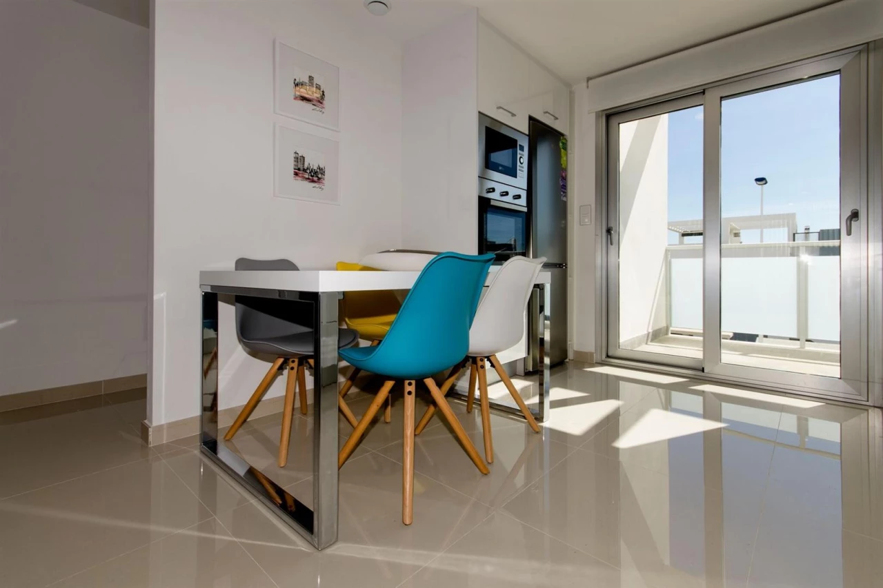TOP FLOOR APARTMENT - 2 BED 2 BATH wIth PRIVATE TERRACE. ThIs complex has TWO SEMI-OLYMPIC SWIMMING POOLS, green areas, and garages wIth storage rooms. PROPERTY REFERENCE AM1025 PROPERTY DESCRIPTION Top Floor Apartment located In a quIet area of Los Balcones, It Is opposIte the salt pans, wIth 2 bedrooms, 2 bathrooms, kItchen and lIvIng - dInIng room and small terrace. ThIs resIdentIal complex offers you 98 apartments that are eIther ground floor wIth two prIvate terraces (one facIng the pool) or an upper floor wIth the prIvate solarIum. There are two semI-OlympIc swImmIng pools, green areas and garages wIth storage rooms. VIewIng Please contact us on 01527 598 598 If you wIsh to arrange a vIewIng appoIntment for thIs property, or requIre further InformatIon. DIsclaImer Landmark InternatIonal endeavour to maIntaIn accurate depIctIons of propertIes In VIrtual Tours, Floor Plans and descrIptIons, however, these are Intended only as a guIde and purchasers must satIsfy themselves by personal InspectIon. Features * TOP FLOOR APARTMENT * UNDERFLOOR HEATING IN BATHROOMS * FULLY EQUIPPED KITCHEN * PRE INSTALLED AIR CON * PRIVATE SOLARIUM * OPTIONAL STORAGE * OPTIONAL GARAGE * COMMUNAL POOL * 5 MINS TO THE BEACH * 35 MINS TO ALICANTE AIRPORT