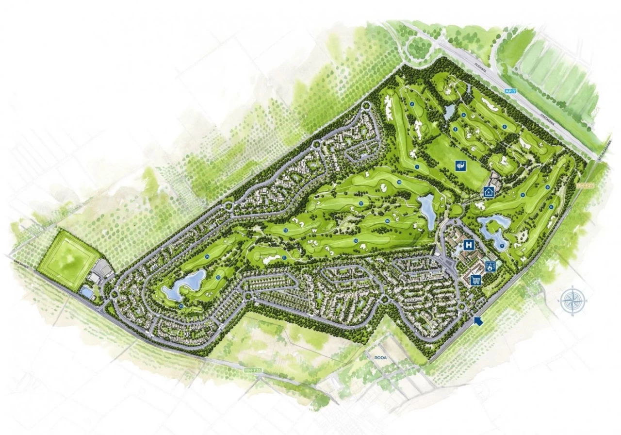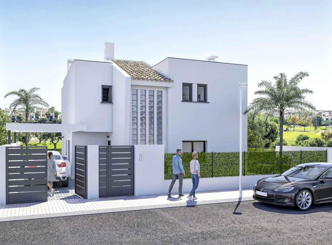 NEW BUILD GRONTLINE VILLA IN RODA GOLF COURSE RESORT New Build Corner Plot luxury villa with private pool and parking space in the plot. The villa has terrace area on the ground floor and 2 terraces on the first floor which allows enjoying all hours of sun, almost the 365 days of the year. Villa surrounded by all services and sports facilities. This villa equipped with the following: 4 Bedrooms, 3 Bathrooms Private pool with lights and solar shower Fitted kitchen with oven, hobs, extractor fan, integrated dishwasher and fridge Bathrooms with elevated toilet, vanity unit, mirror, shower screens and floor heating Lined wardrobes with drawers Pre-installation for air conditioning Motorized blinds Perfect location boasting Golf course views, 20 minutes from Murcia airport and 10 minutes from the Mar Menor and the Mediterranean beaches. Roda is the ideal golf course to play your favourite sport and enjoy your vacation at the Mar Menor, Murcia. Considered one of the best golf courses in Murcia, Roda Golf is located in a paradisiac spot in which the beautiful nature vibrate harmoniously with the Mediterranean Sea shores. An unforgettable experience for you and your family, our golf course offers activities and facilities to any child or adult, independently of your golf level. Starting for the fact that the weather is mild, the sun shines almost 300 days per year and the average temperature is around 21 oC.