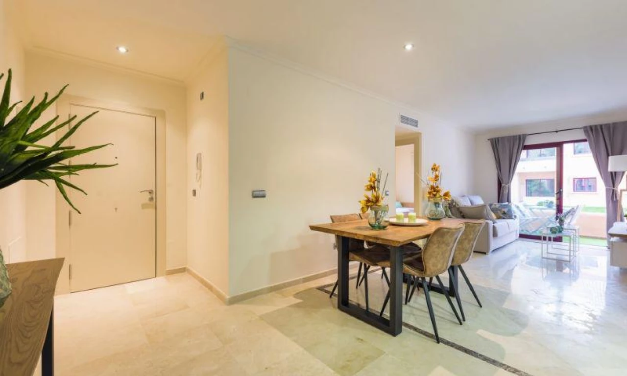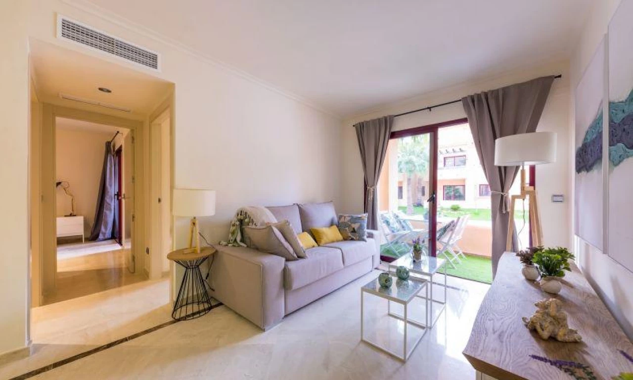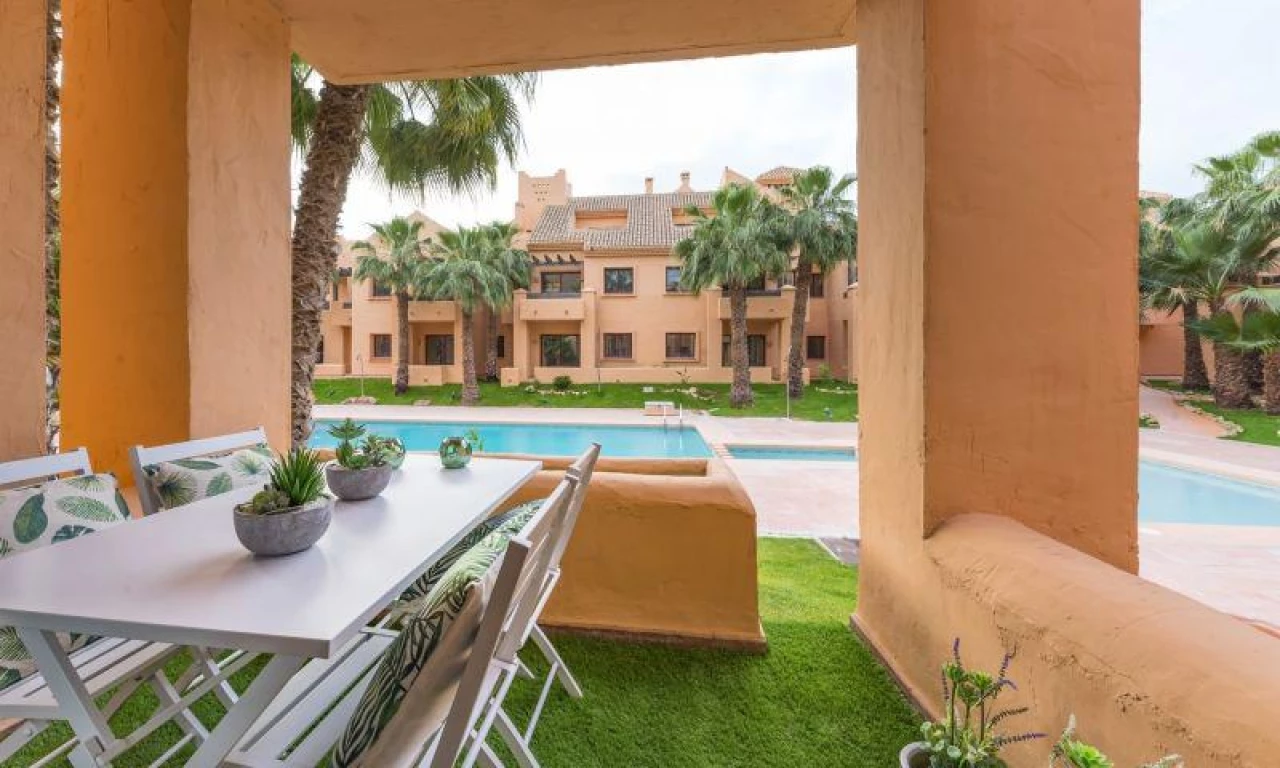 APARTMENT IN THE MAR MENOR Apartment located 2 minutes walk from the beach and the Mar Menor promenade. It has a beautiful living room, a semi-independent kitchen, 2 bedrooms, 2 bathrooms and 1 terrace. Parking and storage room. The complex is closed and has surveillance, large green areas and gardens with palm trees and a community pool. A place to enjoy its tranquility, its 7 km of coastline and promenade, its calm and excellent waters, its sun and its parties.The beaches of the Mar Menor are characterized by their little waves and for being an ideal enclave for lovers of nautical sports. And all this without giving up having all the services and benefits of residing in an urban area.