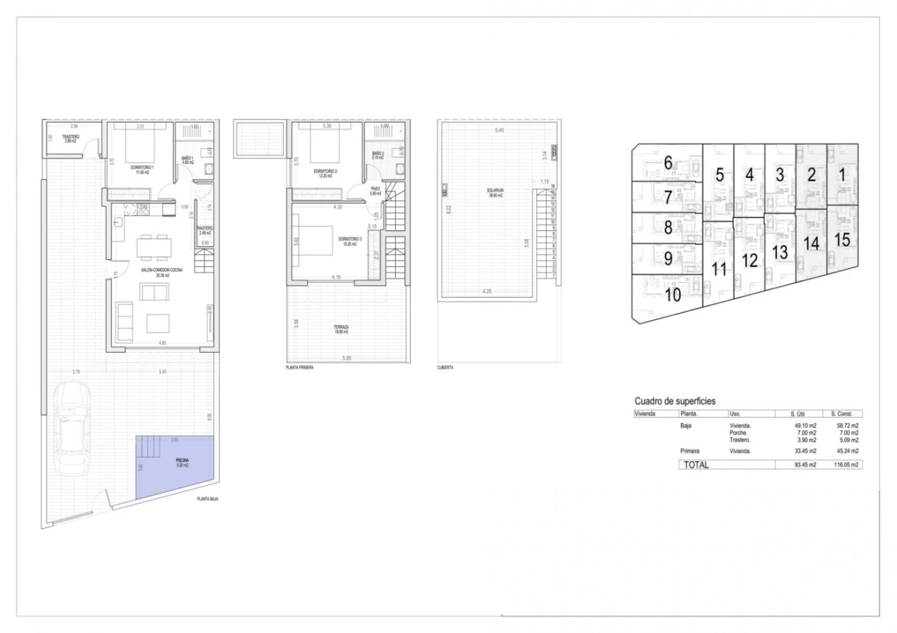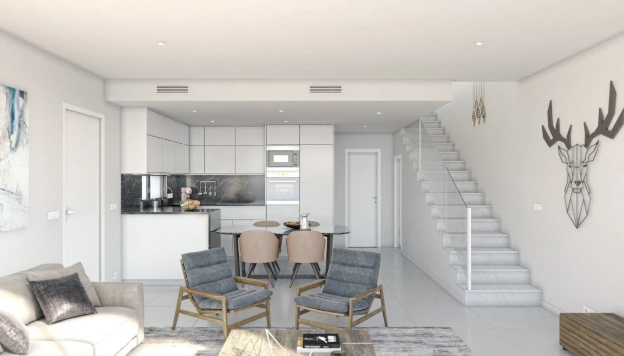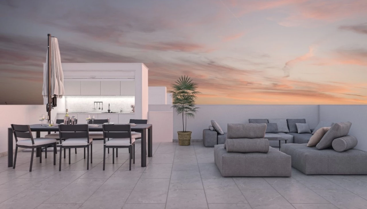 NEW BUILD RESIDENTAL OF VILLAS IN SAN PEDRO DEL PINATAR These stunning spacious villas have been thoughtfully designed to provide the perfect individual home with spacious ground floor terraces and large-format sliding glass windows to access it. On the ground floor we have open plan salon with kitchen, storeroom and 1 bedroom with 1 bathroom. The first floor we have 2 large bedrooms with a large terrace from the master bedroom and the second bedroom and 1 bathroom. Private garden with off-road parking. Options for a rooftop solarium a private pool with an extra cost. Villas located just a few minutes from the main street of San Pedro del Pinatar, and close to marina de las salinas, the Marina de las Salinas marina, beaches, restaurants, tapas bars and sports facilities. San Pedro del Pinatar's privileged location on the Mar Menor and Mediterranean coastline it attracts those with an interest in sailing and watersports, providing marina mooring and sailing clubs, while the beaches and natural mud baths attract those seeking safe sun, sea and sand. San Pedro del Pinatar has an established community and offers an excellent range of activities, including covered swimming pool and sports facilities, as well as a year round programme of social activitiesby the pleasant winter weather. The benefits of the mud baths, typical of the region, or the calm waters of the Mar Menor, have favored the growth of Lo Pagán, wich currently has all kind of amenities. In addition, it has an excellent location, just 5 minutes from the Comercial Center Dos Mares