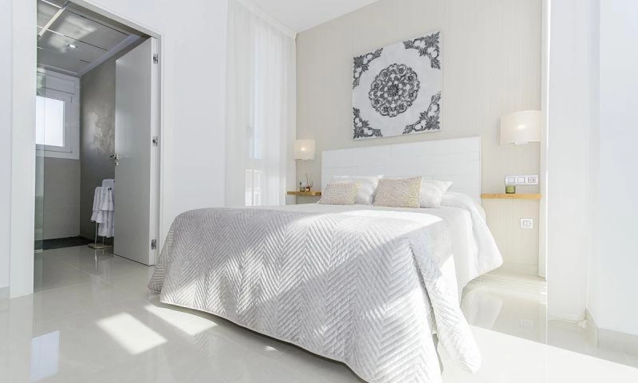 DESIGN VILLA WITH ALL THE LUXURIES Detached villa with 3 bedrooms, 3 bathrooms, with a SOUTH orientation. It has a 12 m2 porch / pergola on the ground floor and a 45 m2 solarium on the roof. It has a terrace, private garden and access door to the car. It is designed with high quality materials using the most careful technology and providing the greatest comfort 6.5x3.3 swimming pool with colored lights, designer tile, brick staircase, 1.20 waterfall and bench to sit under the waterfall. This residence is located in one of the most beautiful and quiet areas between Ciudad Quesada and Pueblo Bravo, near the Natural Park of Las Lagunas de La Mata and Torrevieja and very close to the beaches of Guardamar and the La Marquesa golf course.