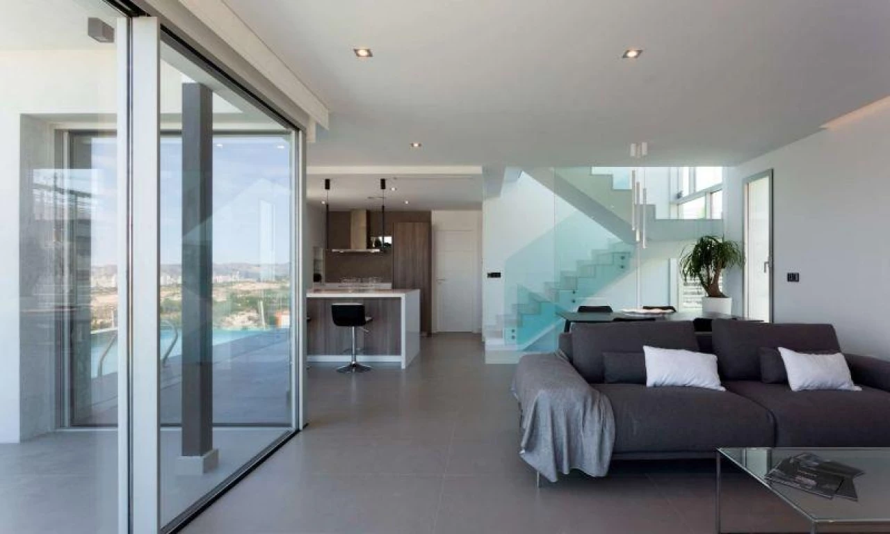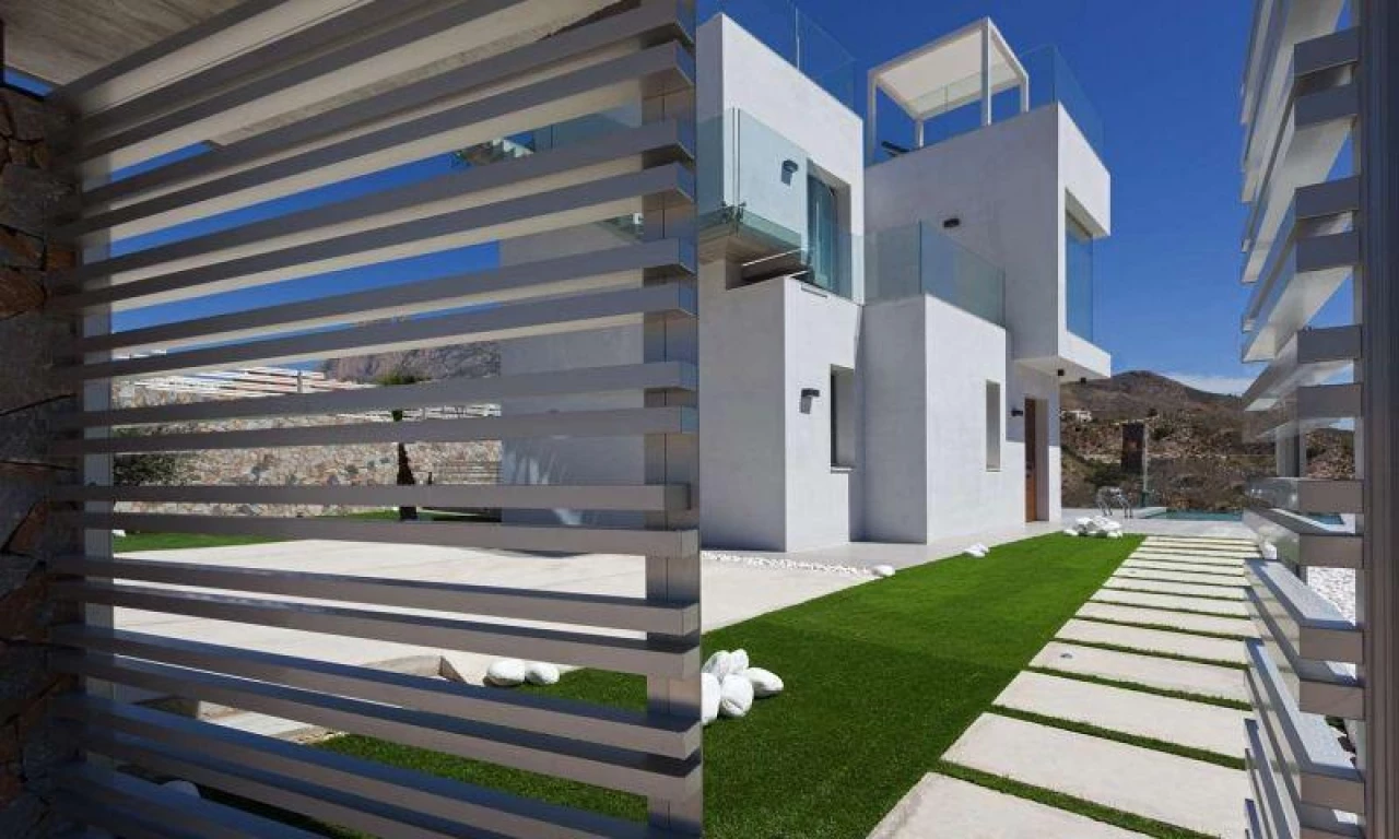 MODERN VILLAS WITH SEA VIEWS !!! The Residential Complex is located in one of the most charming places on the Levantine coast, Balcón de Finestrat. Surrounded by mountains and with privileged views of the Benidorm coast. Luxury villa with 3 bedrooms and 3 bathrooms. It consists of Private Pools with reverse saline osmosis. Top quality materials. State-of-the-art home automation installation. DICA kitchen furniture. BOSH appliances. Air conditioning system throughout the house. Possibility of choosing various optional extras such as basement, solarium and various premium packs to choose the desired finishes. Distance to the sea 5km, to the airport 50 km and to the golf 1km.