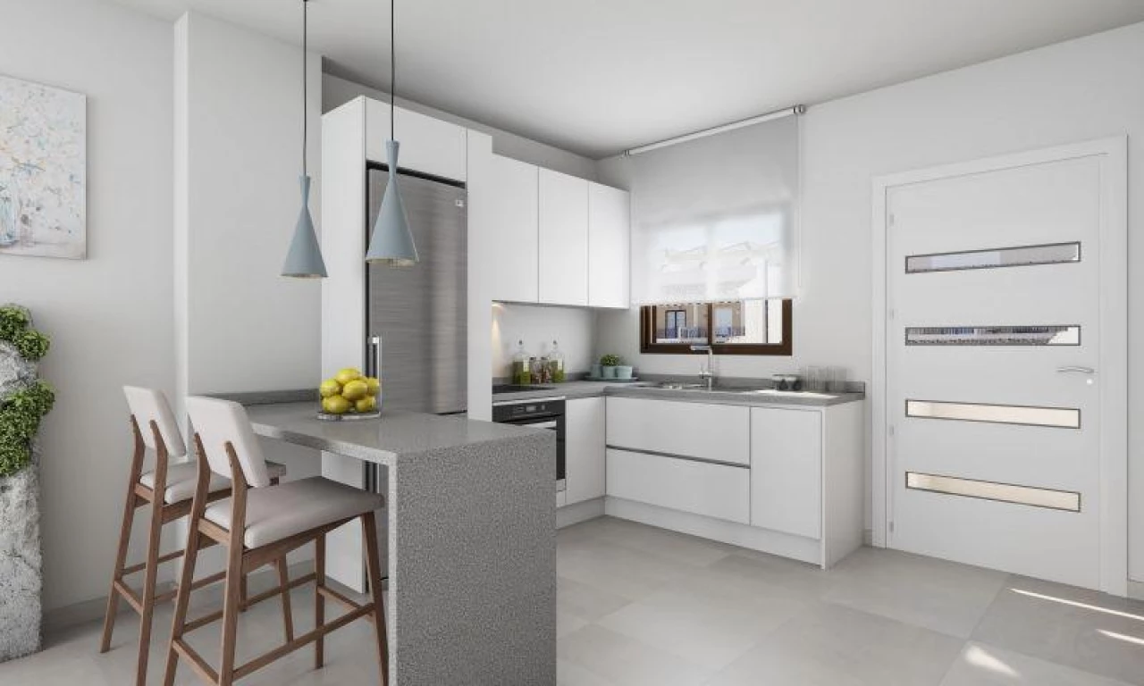 RESIDENTIAL WITH BUNGALOWS WITH COMMUNITY POOL IN SAN PEDRO DEL PINATAR !!! This residential is located less than 1km from the Natural Park of the Salinas de San Pedro del Pinatar. There are houses on the ground floor with a private garden and houses on the upper floor with a terrace and private solarium. All homes have 2 bedrooms and 2 bathrooms, one of them en suite. They include pre-installation of air conditioning, built-in wardrobes, motorized blinds, 80L aerothermal heater, complete package of appliances: oven, hob, extractor fan and refrigerator. The ground floor homes have a surface area of 66 m2 and have a parking entrance with pre-installation for an electric car and a private terrace / garden of 33 m2. The upper floor homes have an area of 66 m2 and have a private solarium of 52 m2 The project is located less than 1km from the Salinas de San Pedro del Pinatar Natural Park. Within a radius of 2 km there are schools, restaurants, supermarkets, pharmacies, clinics, post office, bus station and more.