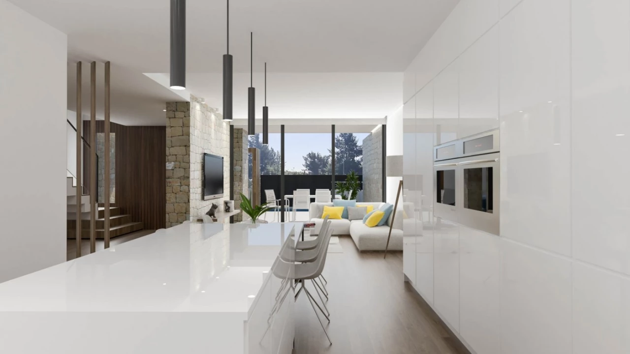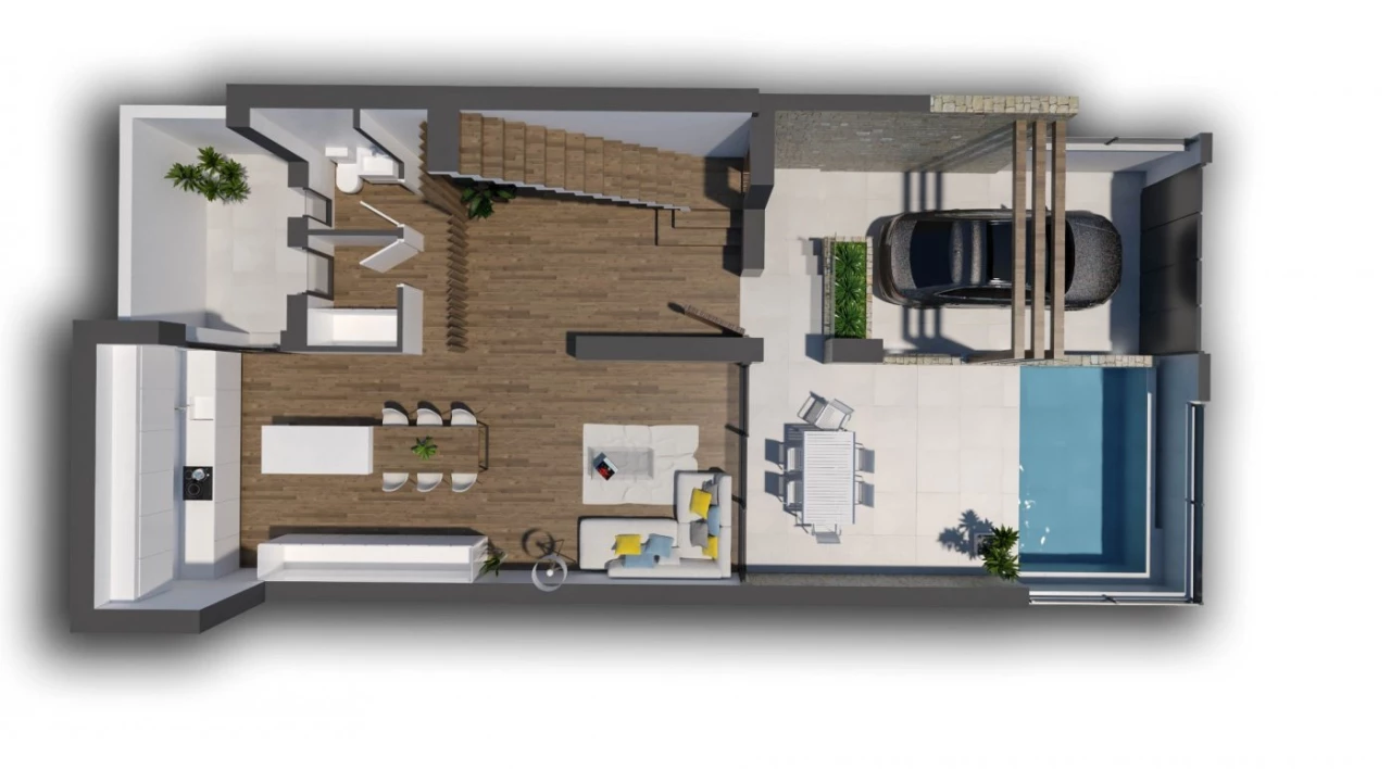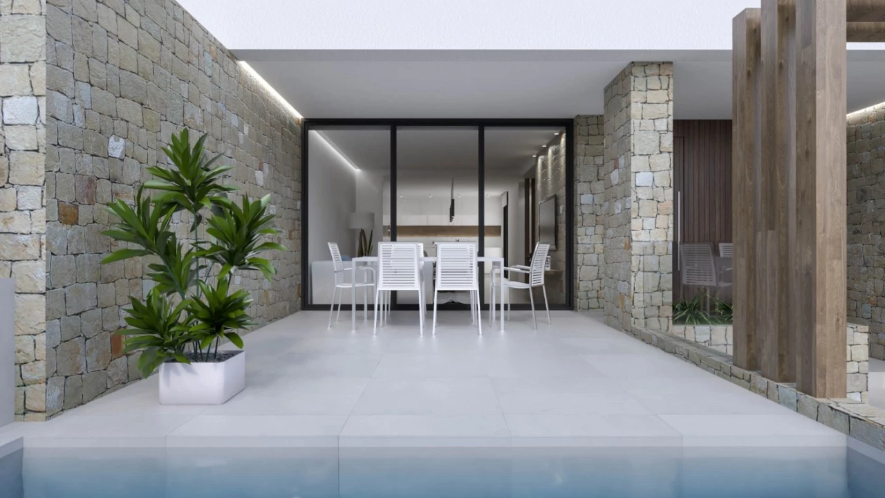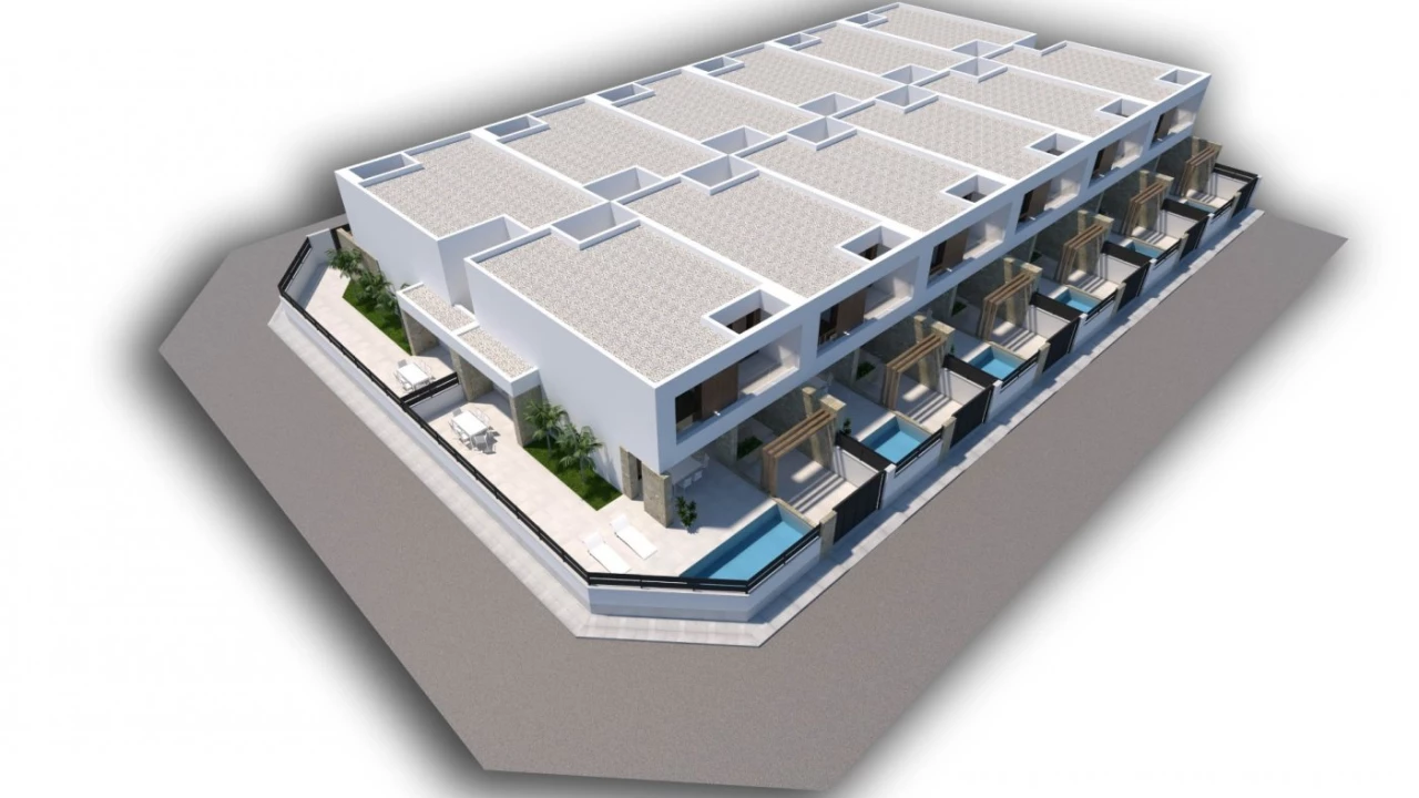 NEW BUILD TOWNHOUSES IN DOLORES New Build Residential Complex of townhouses and semi-detached properties in Dolores. Beautiful townhouses and semi-detached properties build over 2 floors with open plan kitchen-dining , lounge with large windows and access to the garden, 3 bedrooms, 3 bathrooms, terrace, private garden with the pool and parking space. Dolores is a town located in the comarca of Vega Baja del Segura in southern Alicante province, Spain. The town is in the heart of the Segura huerta about 10 km from the nearest beaches in La Marina and Guardamar. Complex located 30 minutes from Alicante airport and 1 hour Murcia - Corvera airport.
