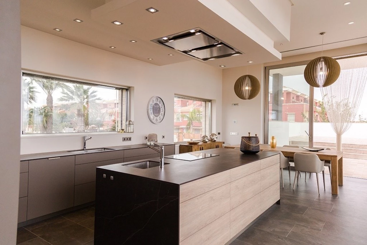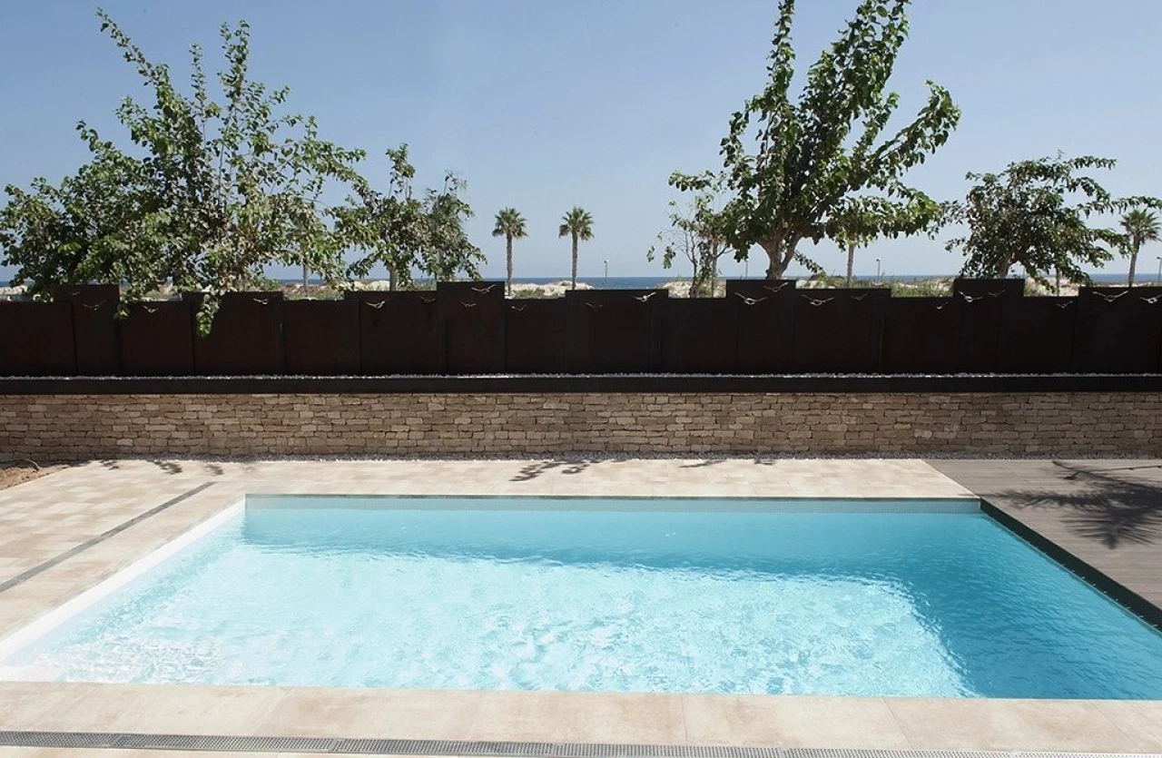MODERN VILLA ON THE FIRST LINE OF THE BEACH (LAS HIGUERICAS) Just 100 m from Las Higuericas beach, in Torre de la Horadada, on the first line and with panoramic views of the Mediterranean Sea. The villa, built on a plot of 874 m2, consists of 7 bedrooms, 4 of them with panoramic views of the Mediterranean Sea, 3 complete bathrooms, 2 toilets (toilet and sink), a small SPA with 2 showers, kitchen fully equipped with appliances, living room with wine cellar and large windows overlooking the Exterior. It also has, among other amenities, with underfloor heating (fan-coil system) air conditioning, elevator with five stops, security door with access code, detectors of indoor movement with alarm and external security cameras, swimming pool with protective and heated cover, a small SPA with 2 showers, different terraces at various levels to achieve different environments, a large fully finished garden mechanized access gates, large garage with separate entrance, laundry room and a machine room. Privileged location to enjoy the promenade, refreshing baths in the sea, practice water sports, sailing, surfing, snorkeling ... and 5 minutes from the marina of La Torre de la Horadada. 8km from the prestigious Lo Romero Golf course, with easy access to the highway and 30 minutes from Murcia airport. The closest town to the area where the promotion is located is Pilar de la Horadada, 1 km from distance, a quiet town that has all kinds of services, schools, health centers, police, pharmacies, etc. There are also two commercial areas nearby, Dos Mares shopping center, in San Javier, 5 minutes away by car and La Zenia Boulevard, in Orihuela Costa, 15 minutes away by car.