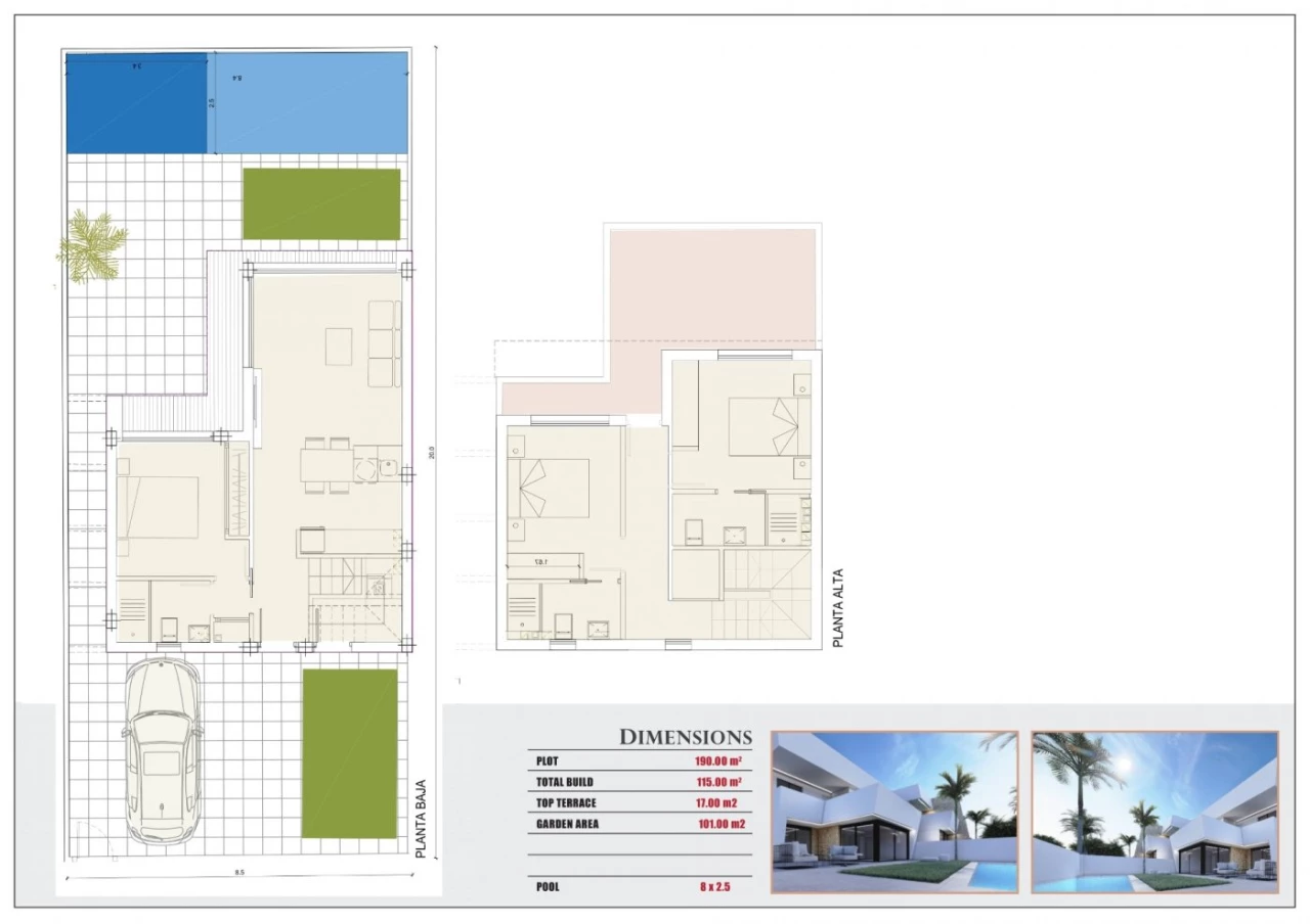 NEW BUILD SEMI DETACHED VILLAS IN SANTIAGO DE LA RIBERA New Build residential of detached and semi detached villas with private pools in Santiago de la Ribera (650 metres from the beaches) Properties designed to provide the very best open plan living space, featuring double full glass sliding doors that open directly on to a large terrace with private swimming pool, terrace and parking area. Villas offer 3 generously sized bedrooms (first floor with en-suite), and a further bathroom on the ground floor with walk in shower. The ground floor living area features a fully fitted kitchen with drop down table open plan lounge / dining area, fully fitted kitchen zone with appliances, exterior storage room and terraced areas to the side of the villa, from master bedroom and from the lounge area. The villas are perfectly situated as they are walking distance to Dos Mares shopping centre and many other shops, bars, restaurants and the beautiful beaches of the Mar Menor. The Wednesday [amp;] Saturday street market is just 150 metres away. Only 20 minutes to the popular Zenia Boulevard, 30 minutes from Cartagena city. This area offers a variety of sports activities, including seasonal water sports … With some particularly good golf courses very close by! Santiago de la Ribera is a coastal town administratively dependent on the municipality of San Javier. It has 4 km of beach that are a great attraction for tourists from different origins. Murcia/Corvera airport is 30 minutes away and Alicante airport is an hour drive away.