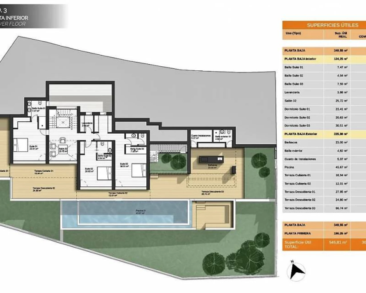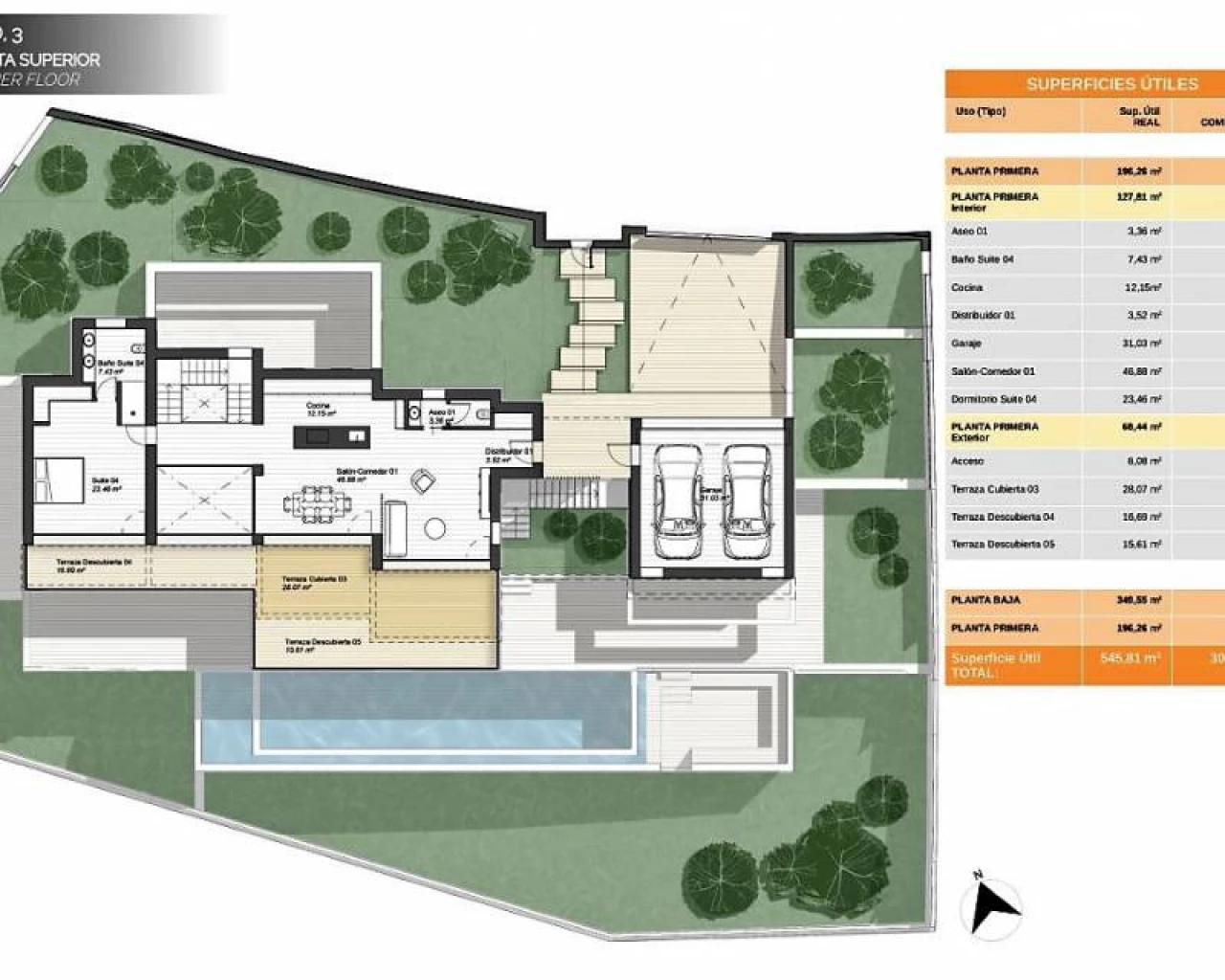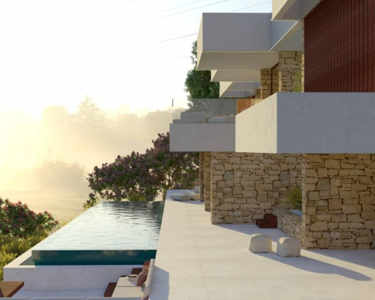 This modern villa is currently under construction and will be completed in December 2022. In addition to a beautiful view of the golf course, this villa also offers sea views. The villa is spread over 2 floors. On the top floor is the general living area with a spacious lounge with dining area, a fully equipped modern kitchen, a guest toilet and the master bedroom with bathroom en suite. On the ground floor there are 3 spacious double bedrooms with bathroom en suite and a second lounge. In addition to the spacious, partly covered terrace with outdoor kitchen, the villa will be delivered with a beautiful maintenance-friendly Mediterranean garden.