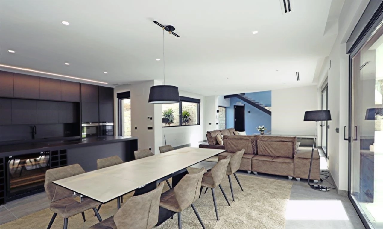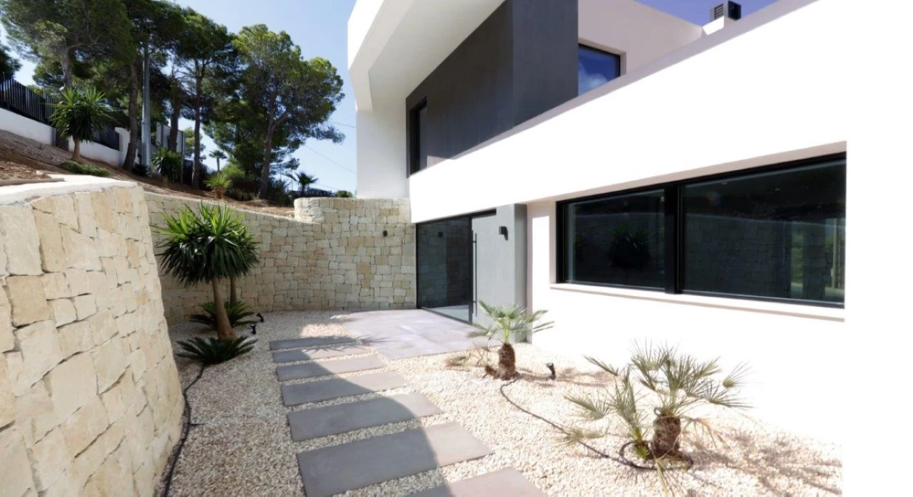 This beautiful modern vila is already under construction and will be ready in mid-May 2021. The villa is located in a green area in Altea la Vella, less than 3 minutes from the nearby golf course. The house is divided over 2 floors. On the ground floor there is a spacious lounge with dining area, an open modern fully equipped kitchen, a guest toilet, a gym and the master bedroom with walk-in wardrobe and bathroom en suite. On the first floor there are 2 double bedrooms, a bathroom and a spacious double bedroom with bathroom en suite. In addition to the spacious, partly covered terrace with swimming pool, this villa offers a garage suitable for 1 car, a separate barbecue area and a beautifully landscaped low-maintenance Mediterranean garden.