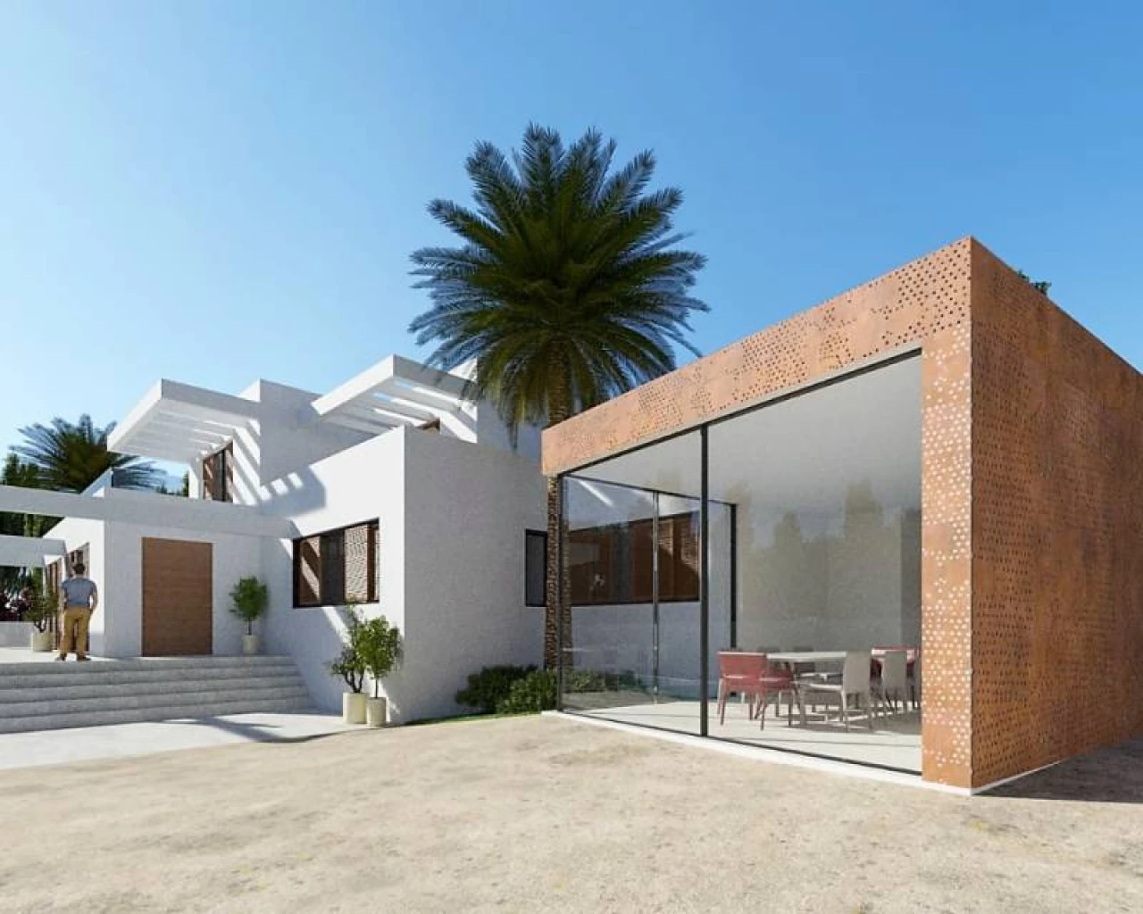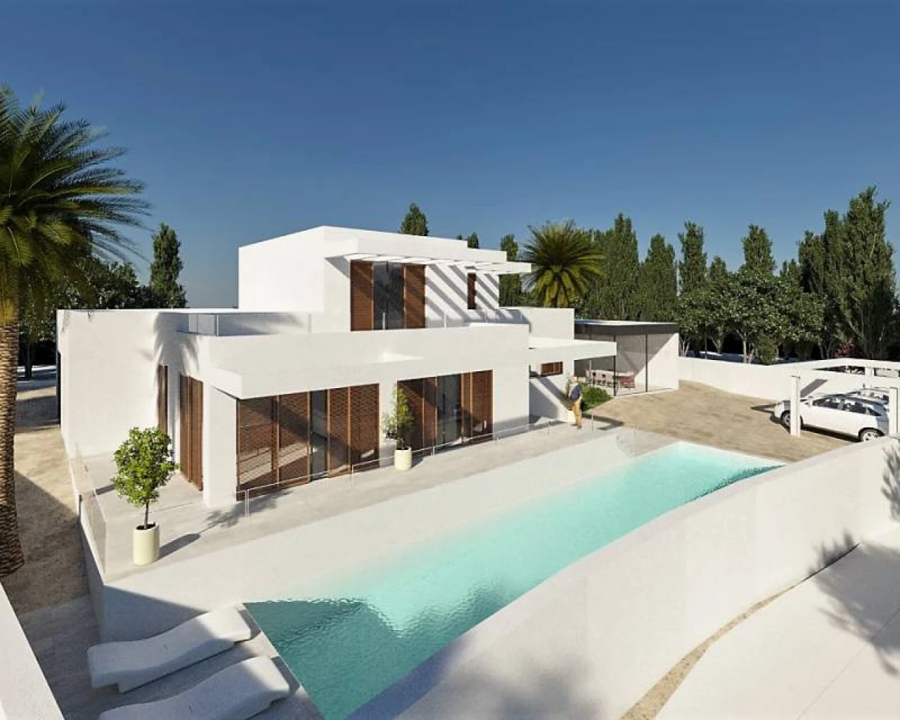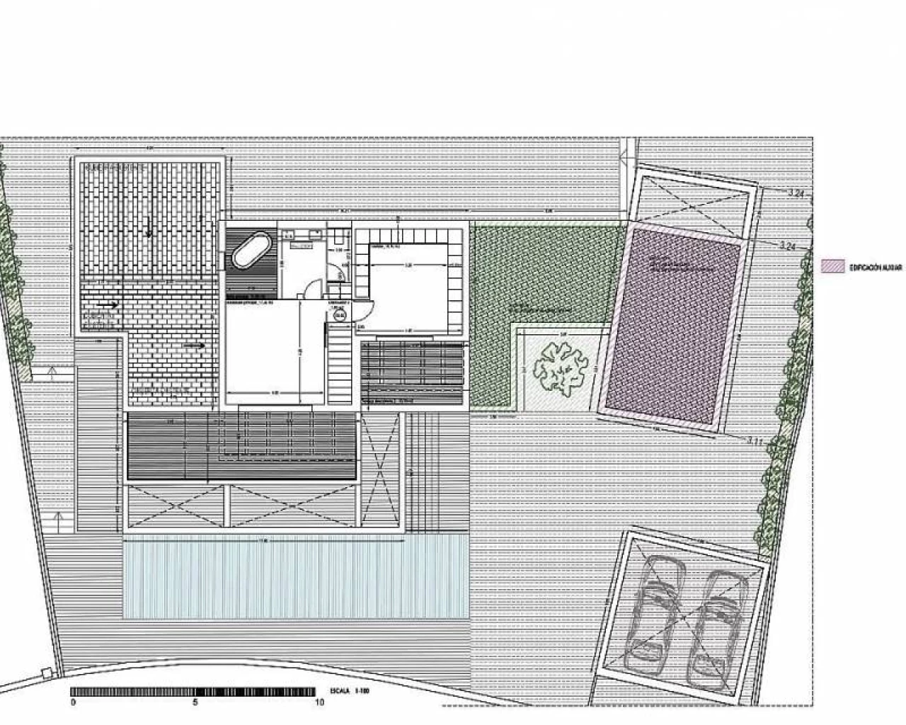 This beautiful new construction project is located within walking distance of the center and the main beach of Moraira. The villa is divided over 2 floors. On the ground floor there is a spacious lounge with dining area, a modern fully fitted kitchen, a guest toilet, a laundry room and 3 double bedrooms with bathroom en suite. On the first floor is the master bedroom with dressing area and bathroom en suite. There is also a separate studio on the ground floor which has a kitchen and bathroom. In addition to the partly covered terrace with swimming pool, there is a carport which is suitable for 2 cars and the house will be delivered with a maintenance-friendly Mediterranean garden.