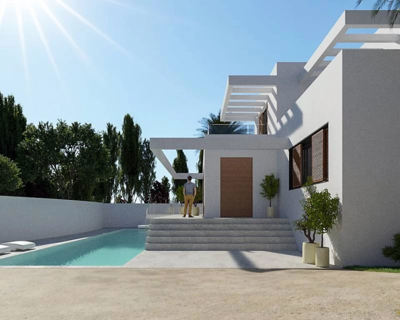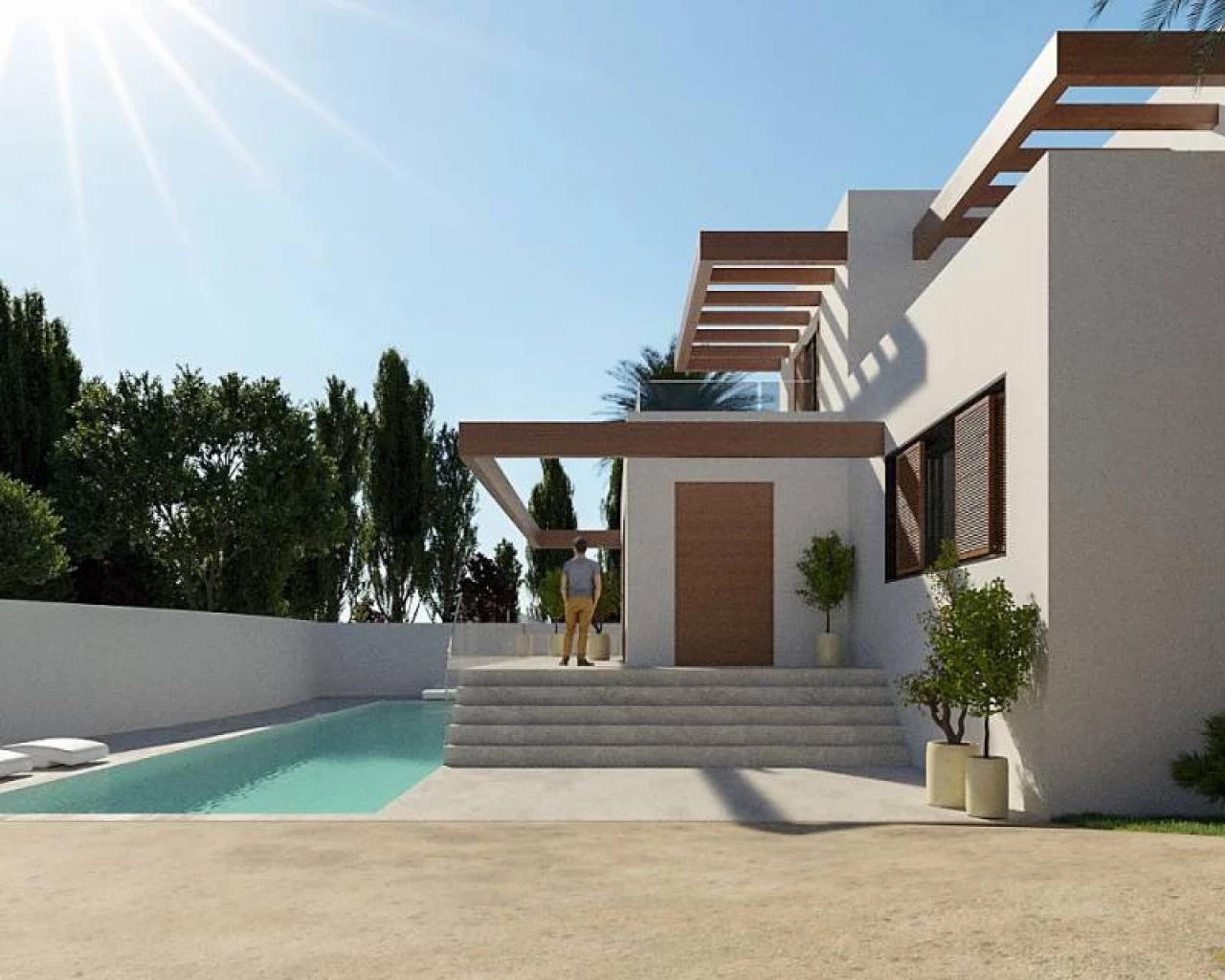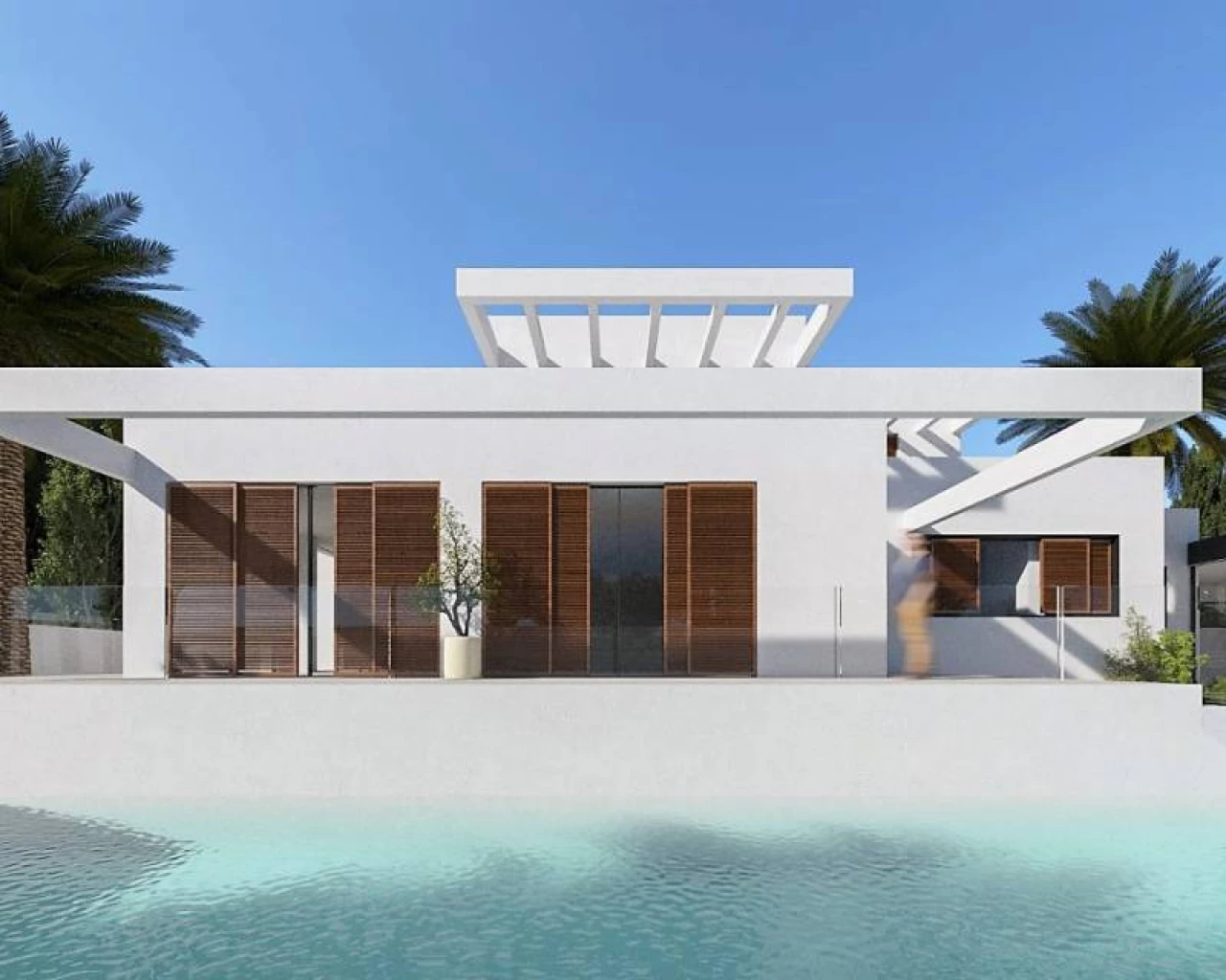 This beautiful new construction project is located within walking distance of the center and the main beach of Moraira. The villa is divided over 2 floors. On the ground floor there is a spacious lounge with dining area, a modern fully fitted kitchen, a guest toilet, a laundry room and 3 double bedrooms with bathroom en suite. On the first floor is the master bedroom with dressing area and bathroom en suite. There is also a separate studio on the ground floor which has a kitchen and bathroom. In addition to the partly covered terrace with swimming pool, there is a carport which is suitable for 2 cars and the house will be delivered with a maintenance-friendly Mediterranean garden.