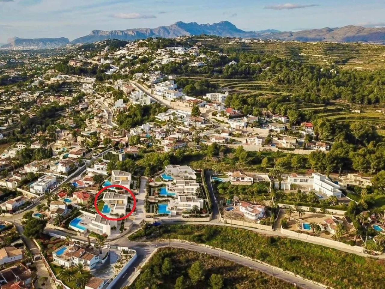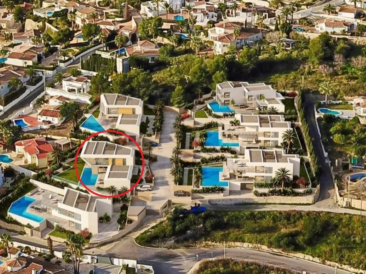 This beautiful modern villa is the first of 6 villas from which this gated community will consist. At the moment construction has started and this villa will be delivered first. The villa consists of two floors. On the ground floor there is a spacious lounge with dining area, a modern open kitchen with all appliances, a guest toilet and the master bedroom with dressing area and bathroom en suite. On the first floor are the other 2 double bedrooms, each with their own bathroom en suite. In addition to the terrace with swimming pool, the villa has a covered terrace of no less than 75 m2 from where you have a beautiful view over the sea.
