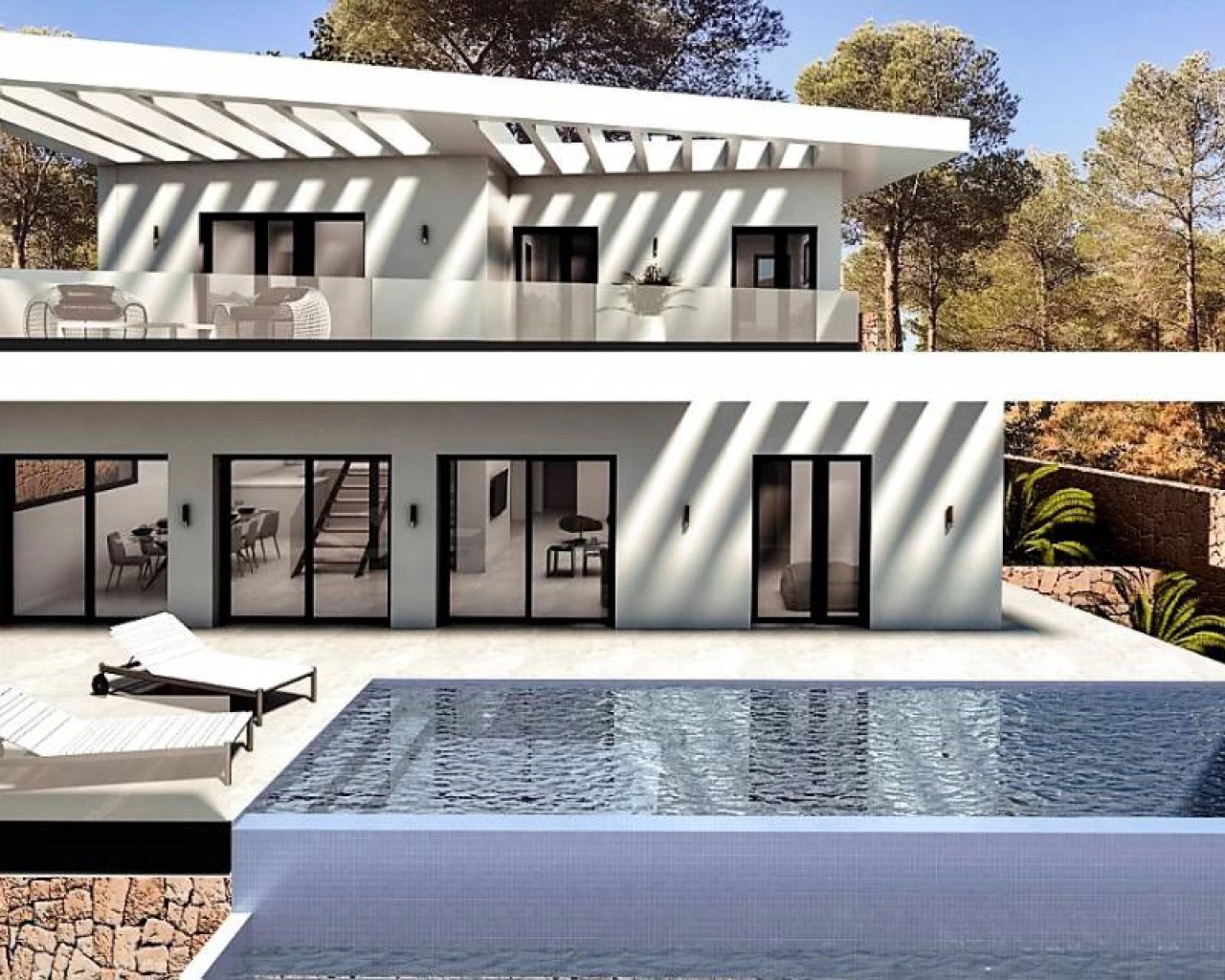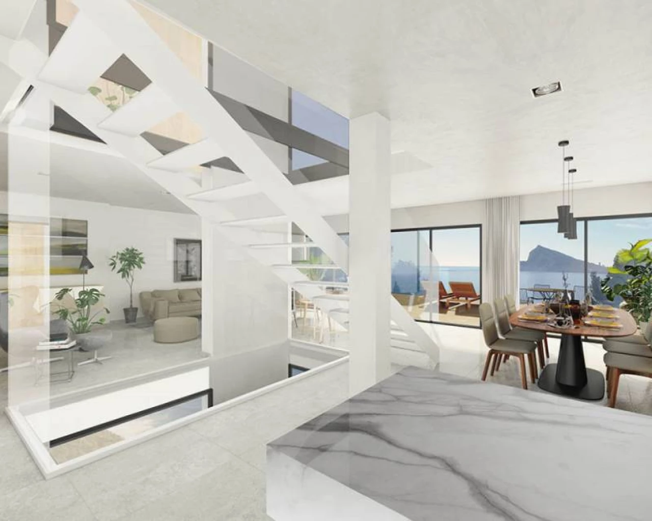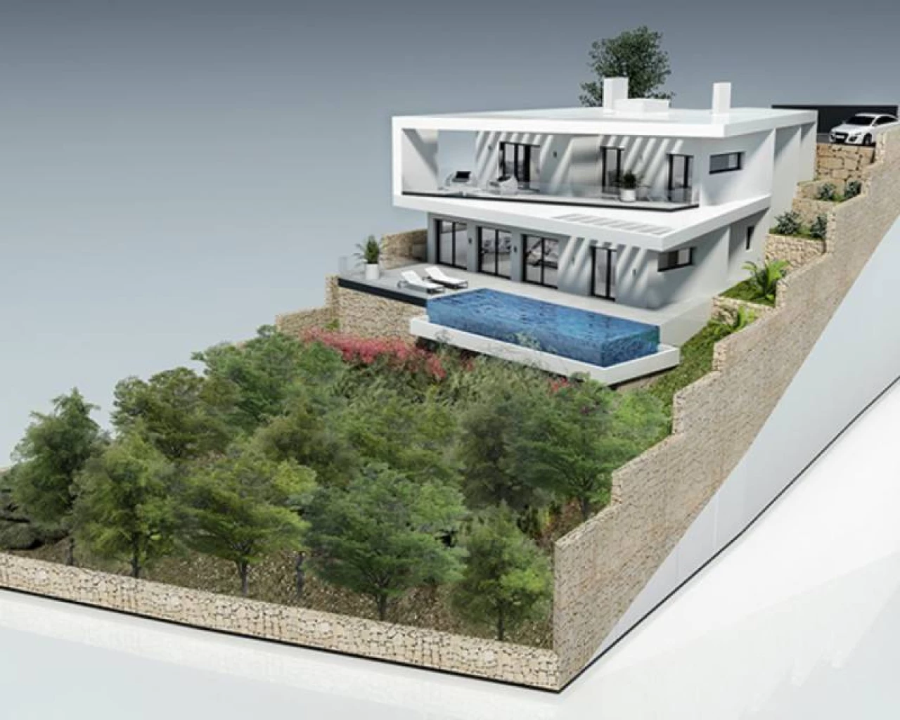 This modern villa located in a green area in Altea Hills is currently under construction and will be ready within 6 months. On the top floor there are 3 double bedrooms with bathroom en suite. The spacious lounge with dining area and modern fully equipped kitchen are located one floor below. Also located here is the fourth double bedroom with bathroom en suite. In the basement of the villa there is a large space that can serve as a gym or, for example, a home cinema. From the spacious partly covered terrace with swimming pool you can enjoy the breathtaking views of the sea.