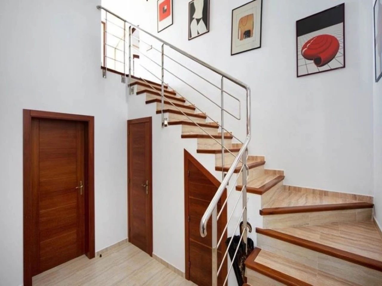 This beautiful spacious villa is spread over 2 floors. On the ground floor there are 3 double bedrooms, a bathroom, a small lounge, a guest toilet and a garage suitable for 1 car. On the first floor you will find the general living area with the spacious swimming pool and terrace. On this floor there is also a spacious lounge with dining area, a fully equipped open kitchen, 3 double bedrooms, 2 bathrooms, 1 en suite and the master bedroom with bathroom en suite and walk-in wardrobe. The villa also offers a spacious covered terrace with a second fully equipped kitchen, a lounge, a Jacuzzi and various other seating areas from which one can enjoy the beautiful view over the sea and the village of Moraira.