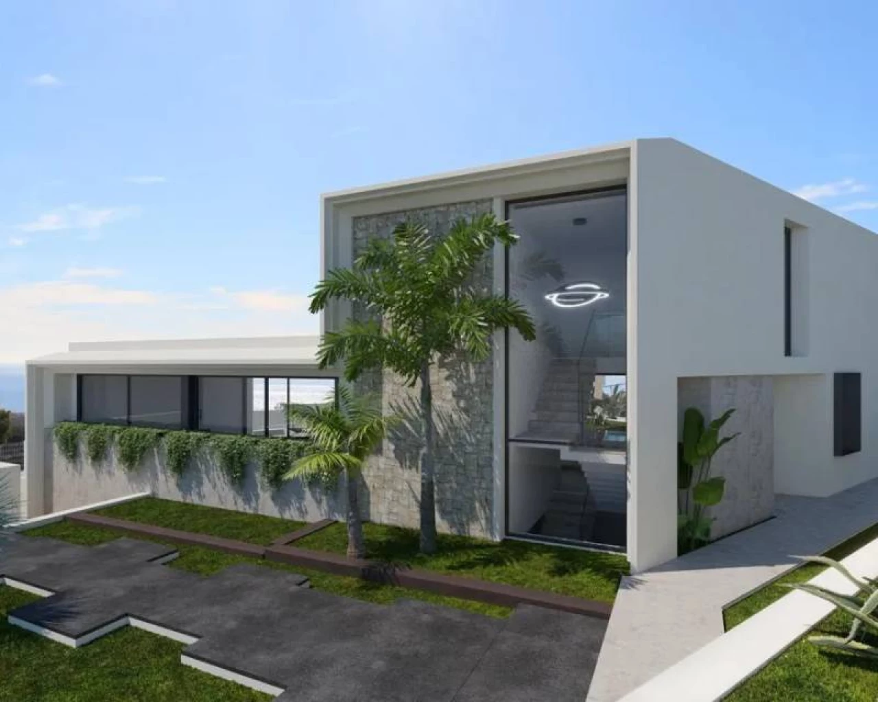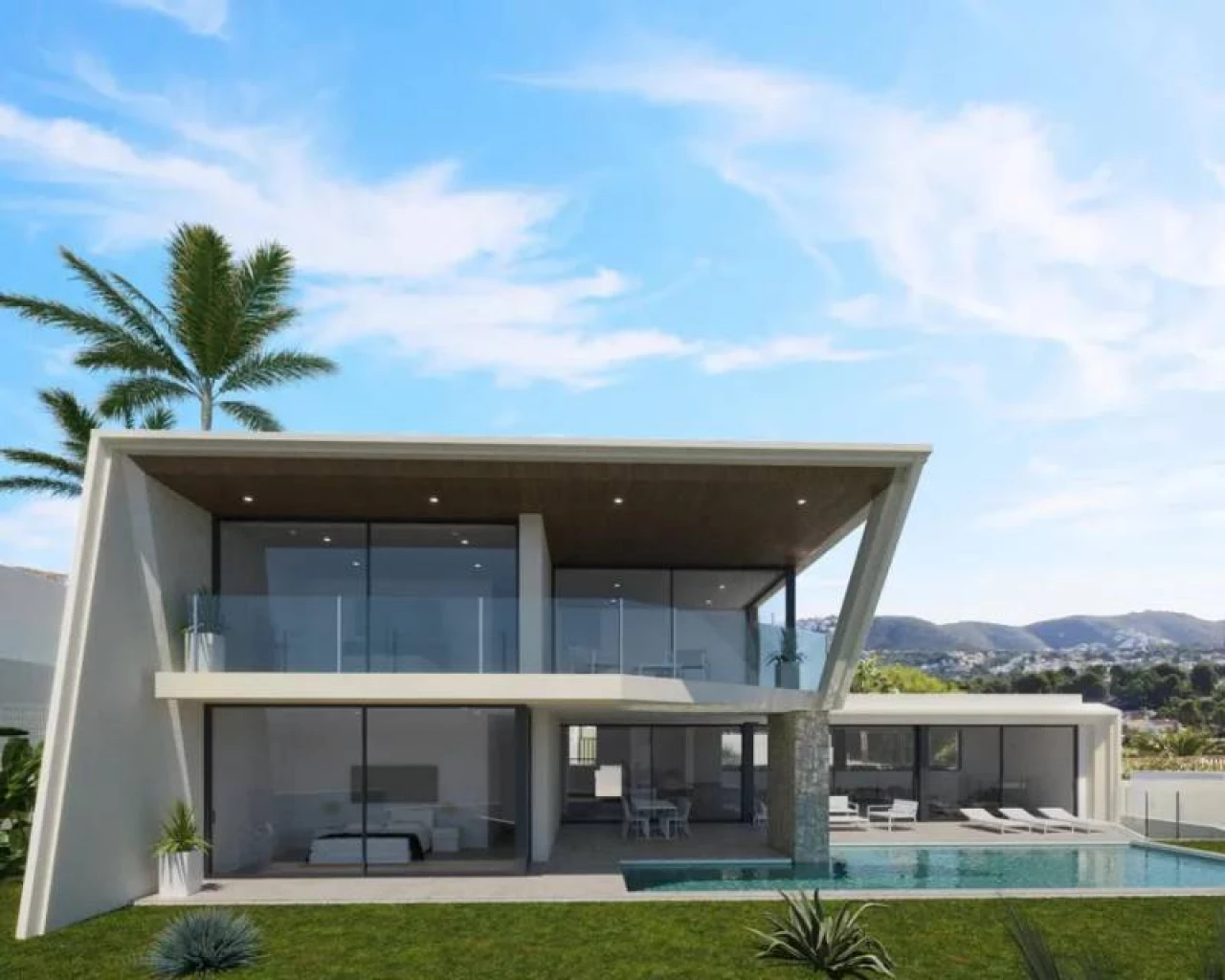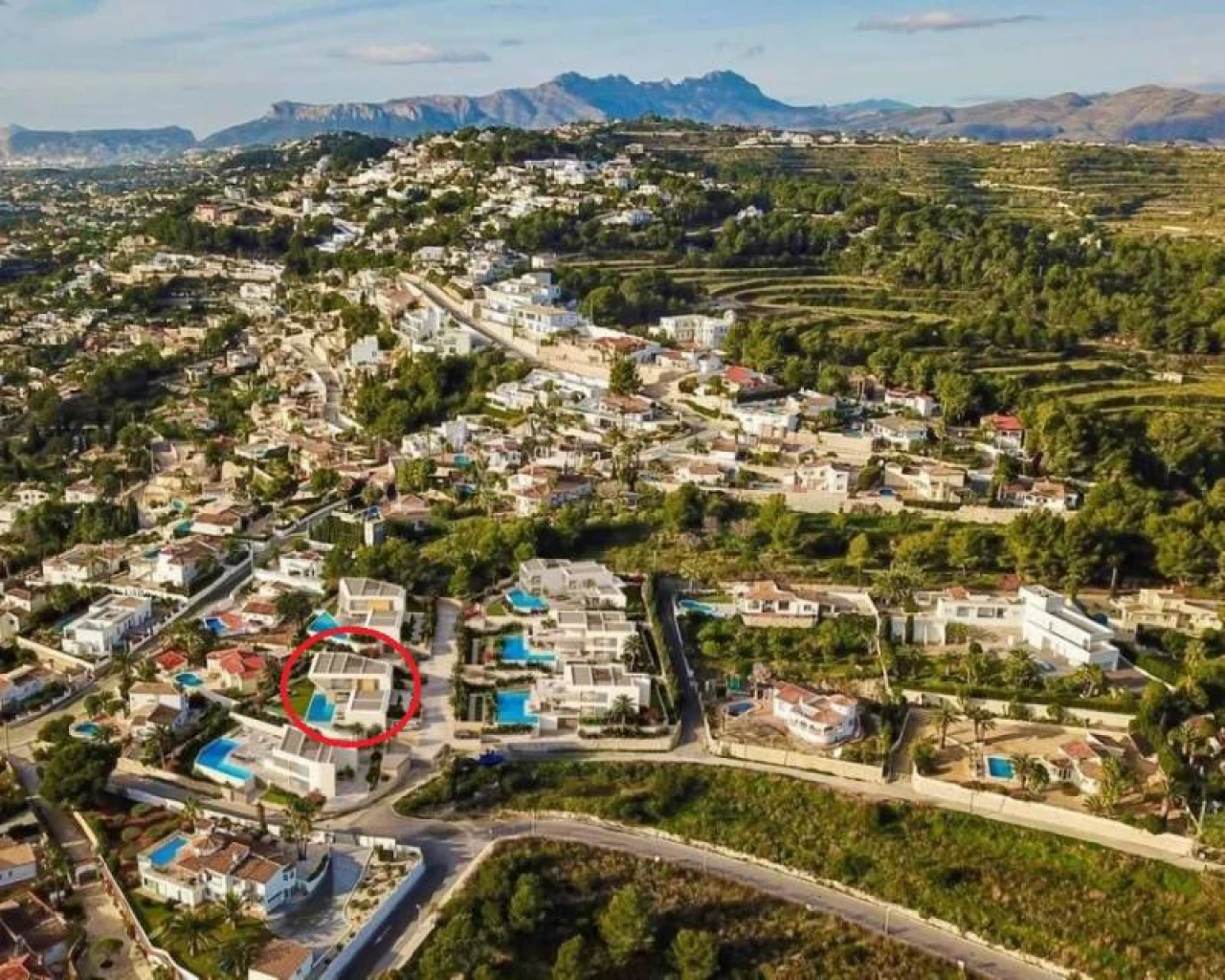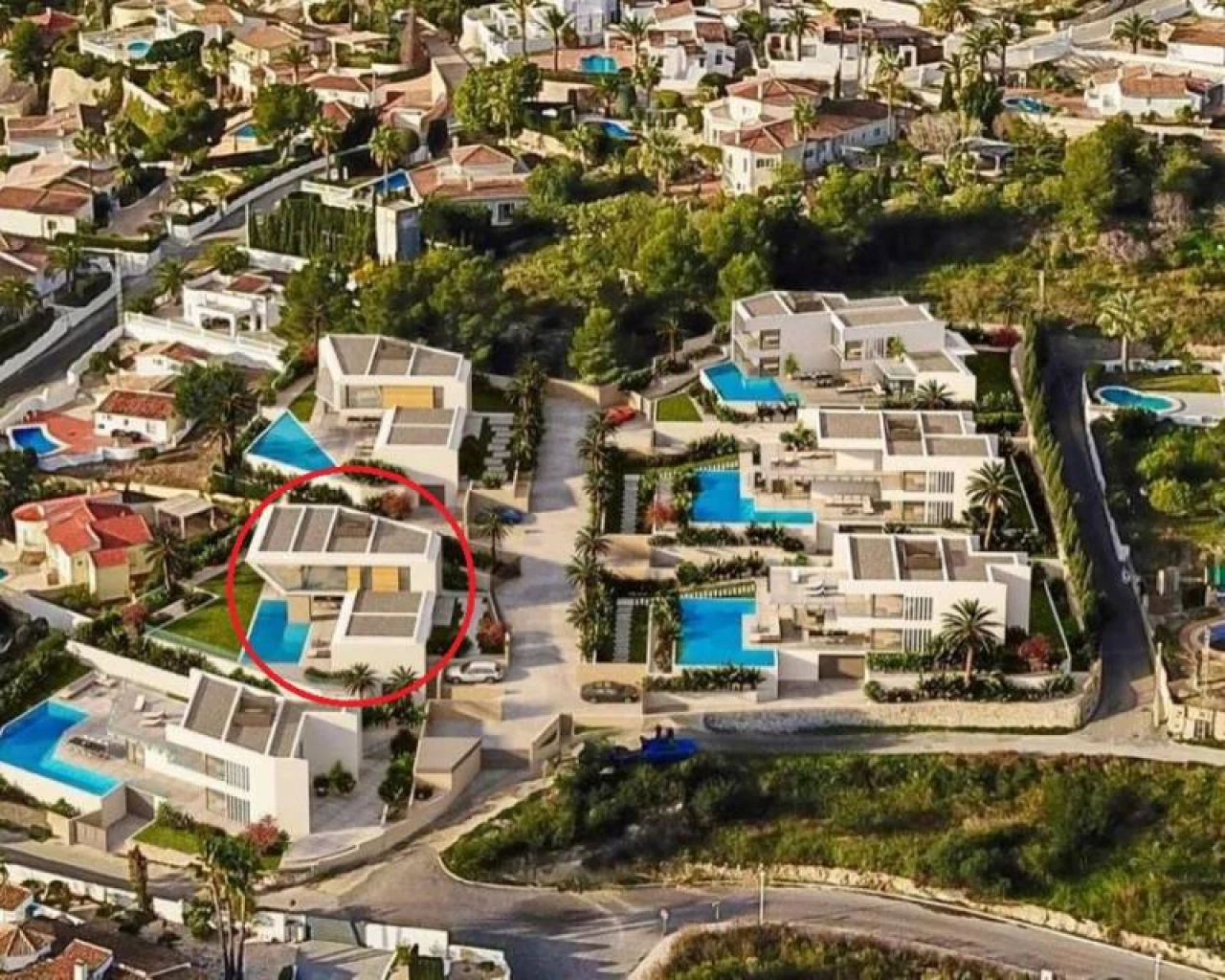 This beautiful modern villa is the first of 6 villas from which this gated community will consist. At the moment construction has started and this villa will be delivered first. The villa consists of two floors. On the ground floor there is a spacious lounge with dining area, a modern open kitchen with all appliances, a guest toilet and the master bedroom with dressing area and bathroom en suite. On the first floor are the other 2 double bedrooms, each with their own bathroom en suite. In addition to the terrace with swimming pool, the villa has a covered terrace of no less than 75 m2 from where you have a beautiful view over the sea.