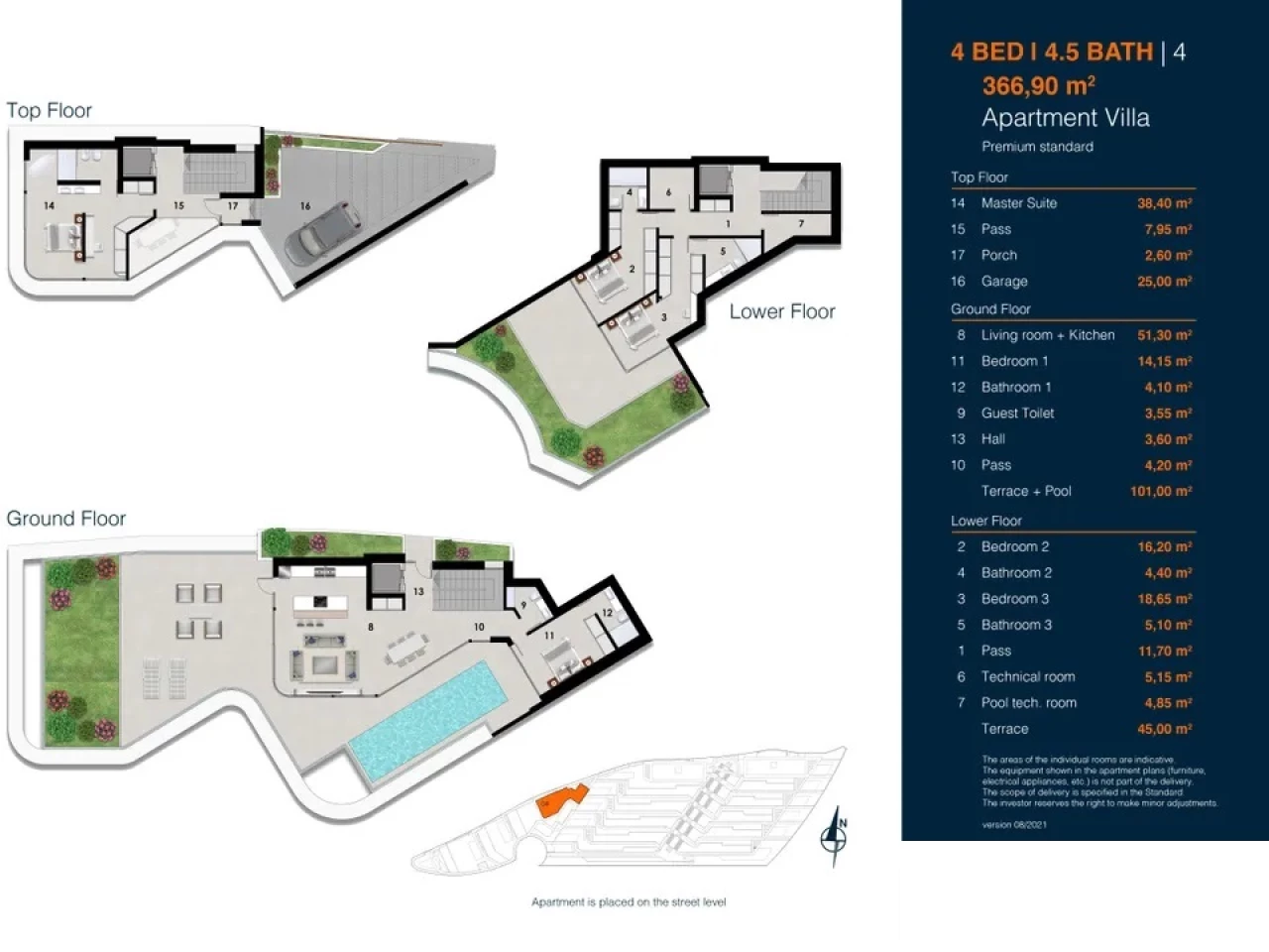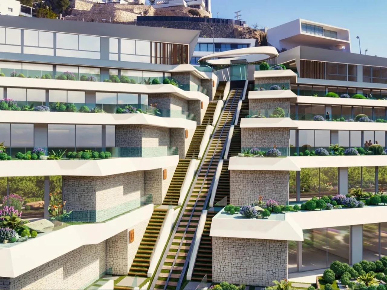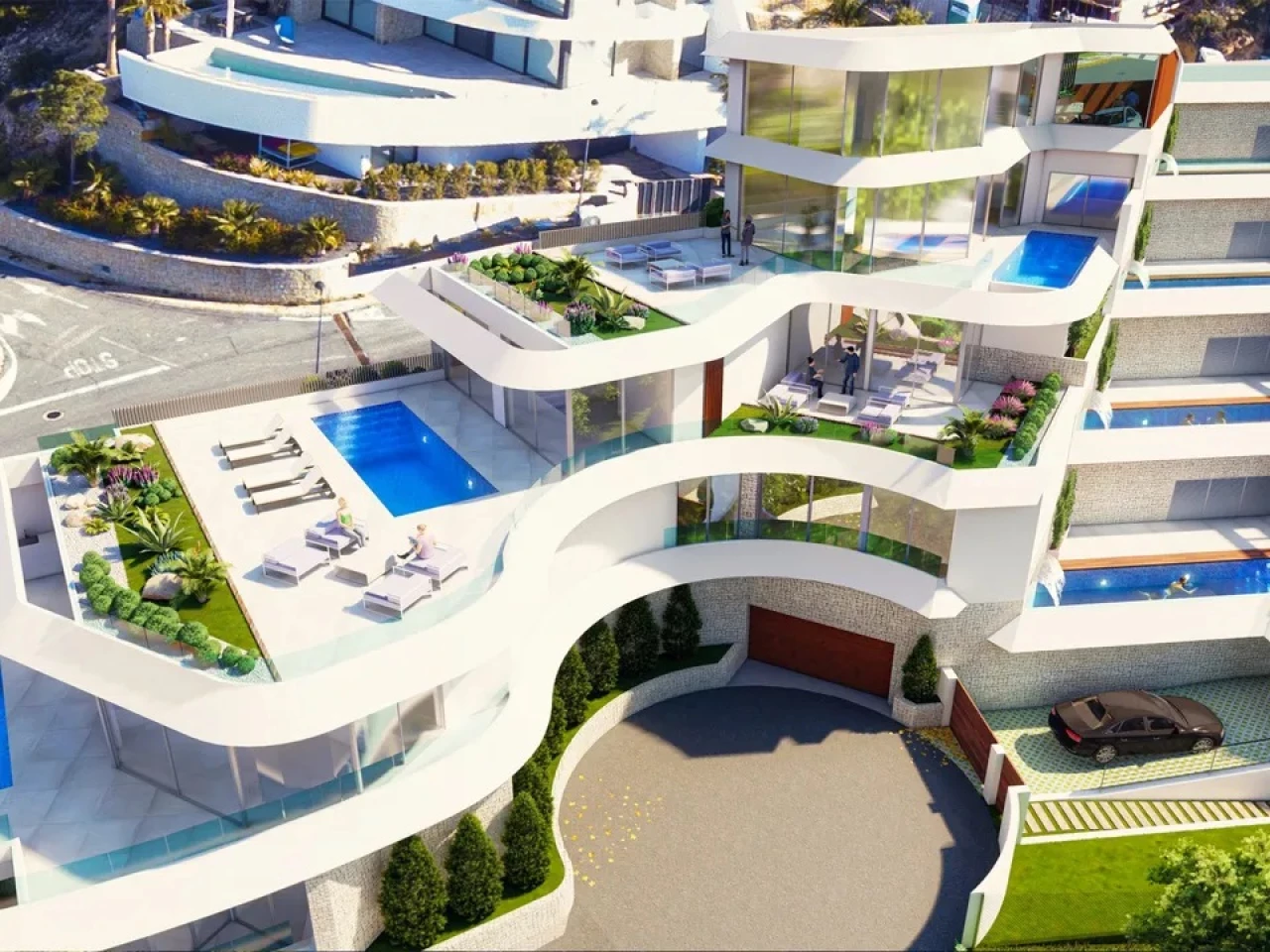This beautiful spacious 4 bedroom apartment is part of a new complex where construction will start in October 2022. The total complex consists of only 14 apartments. The apartment in question is spread over 3 floors and offers a spacious lounge with dining area, a fully equipped modern open kitchen, a guest toilet, 3 double bedrooms with bathroom en suite and the master bedroom with bathroom en suite. Each apartment has a spacious partly covered terrace with private pool at its disposal. There is also a garage and storage room.