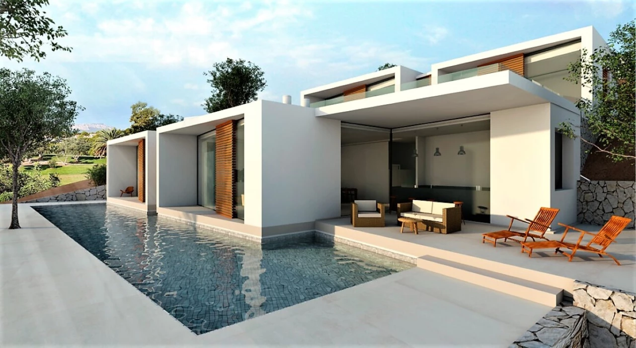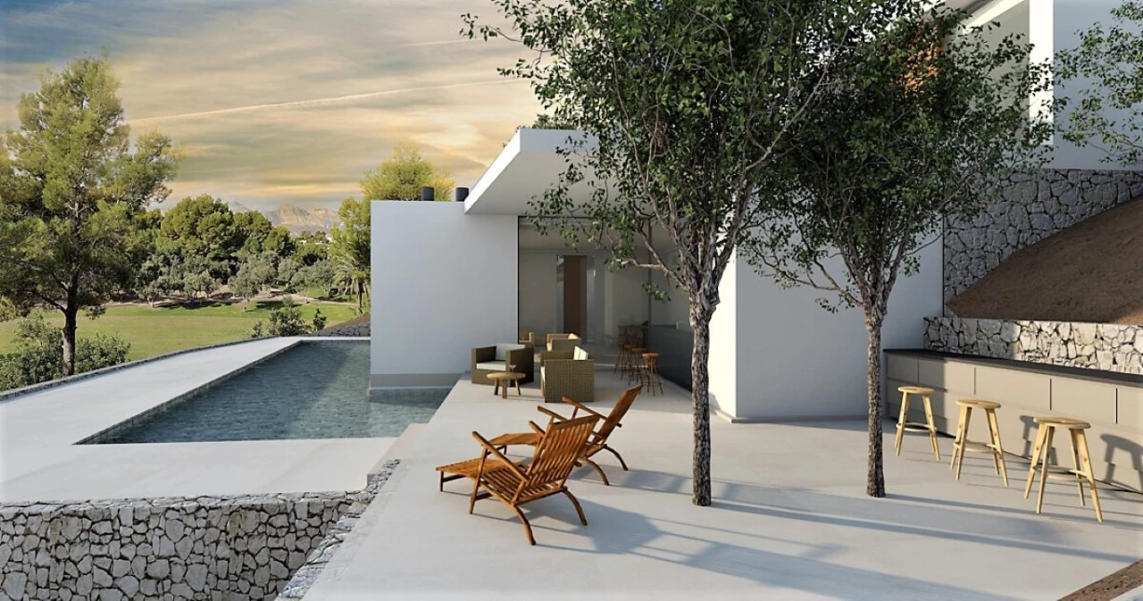 This beautiful villa is currently under construction and will be ready in September 2021. The villa is located directly on the golf course and offers a beautiful view over the countryside and the golf course. The villa is divided over 2 floors. On the ground floor there is a spacious lounge with dining area, a fully equipped modern kitchen, a guest toilet, a laundry room and a double bedroom with bathroom en suite. On the first floors there are 2 double bedrooms, a bathroom and the master bedroom with dressing area and bathroom en suite. In addition to the partly covered terrace with large swimming pool, this villa offers various seating areas around the house so that you can optimally enjoy the views.