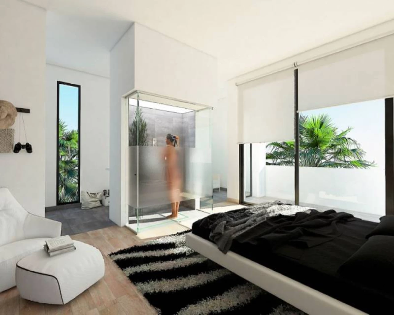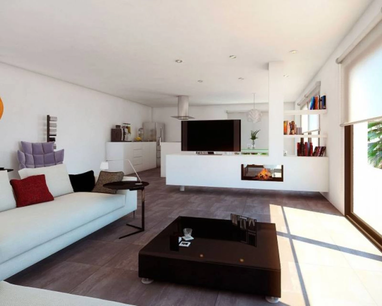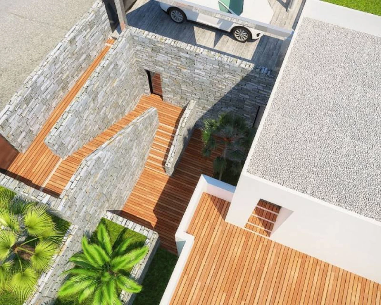 This modern villa under construction is located in a green and quiet area of Altea La Vella and offers beautiful views over the countryside and the sea. The villa has now been built shell and with the help of the current architect and builder the house can be finished further at an additional cost of 325,000 euros. The building plans and permits are available. If you choose to do this in-house, the project will be sold as it is now, including a garage instead of a carport. The villa is divided over 2 floors. On the top floor there are 3 double bedrooms and 2 bathrooms. On the lower floor you will find the spacious lounge with dining area, fully equipped kitchen and the master bedroom with bathroom en suite. There is also a guest toilet, a laundry room and a lift is planned. From the spacious partly covered terrace with swimming pool you can enjoy the beautiful views that this villa has to offer.