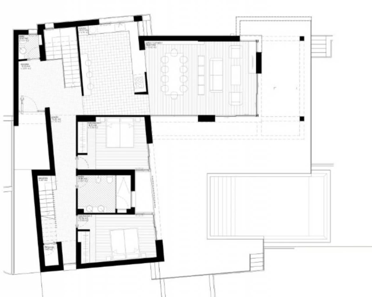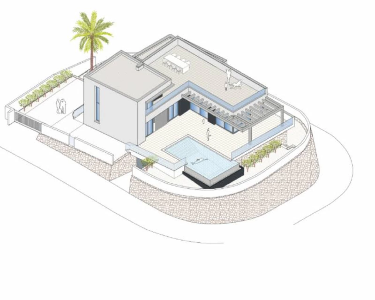 Newly built villa with sea view for sale in Moraira, the property is in a quiet location and is south oriented. On the ground floor there is a spacious living room with an open and fully equipped kitchen, a guest toilet, 2 double bedrooms and a family bathroom. All the rooms give access to the terrace and the swimming pool. On the first floor there is the master bedroom with dressing room, en-suite bathroom and private terrace with beautiful views from javea to the bay of moraira. There is a very large substructure where natural light enters and one can create extra living space, there is also a double garage. There is also a basement that can be converted into a gym / home cinema, ... There is a maintenance-friendly garden around the house.