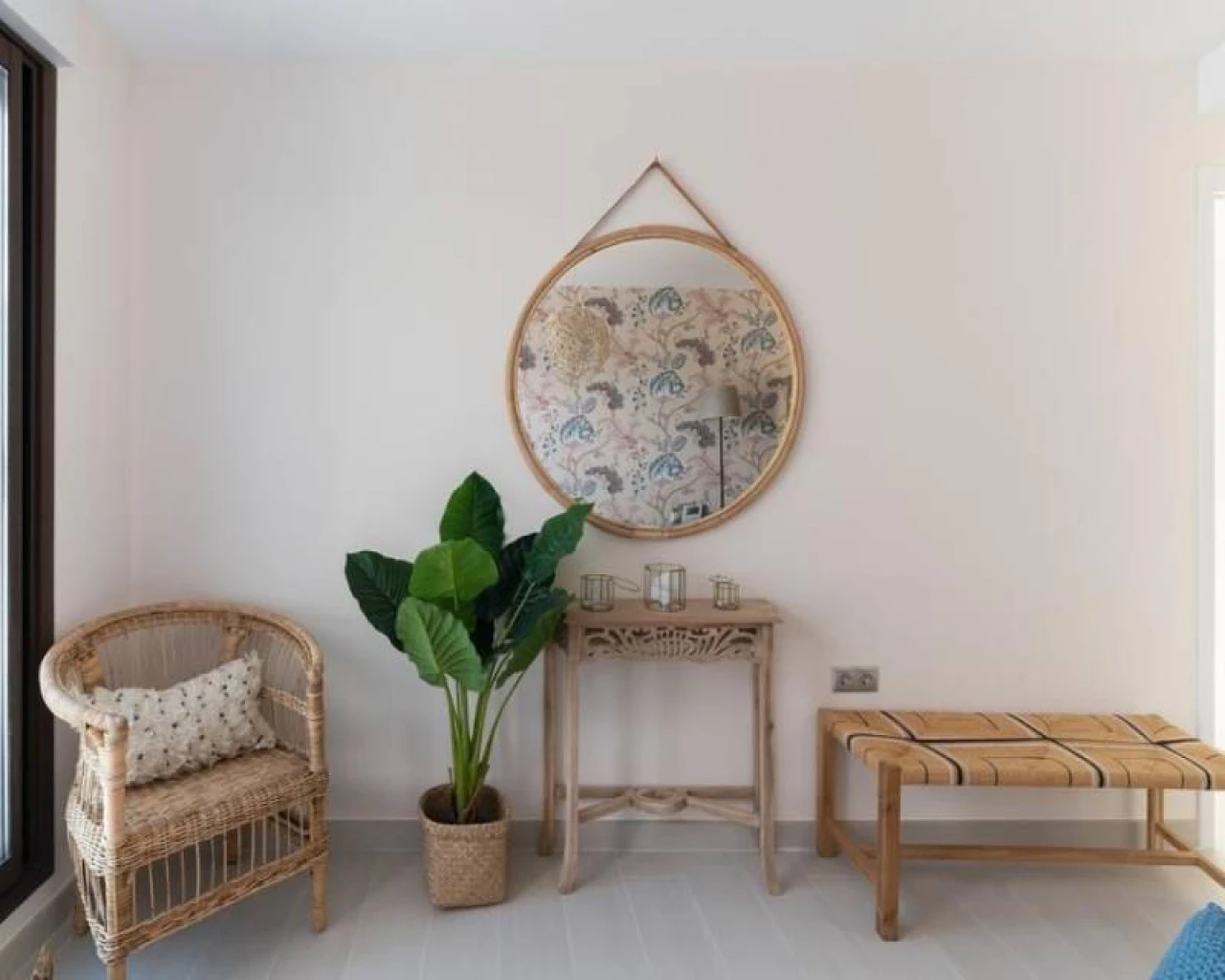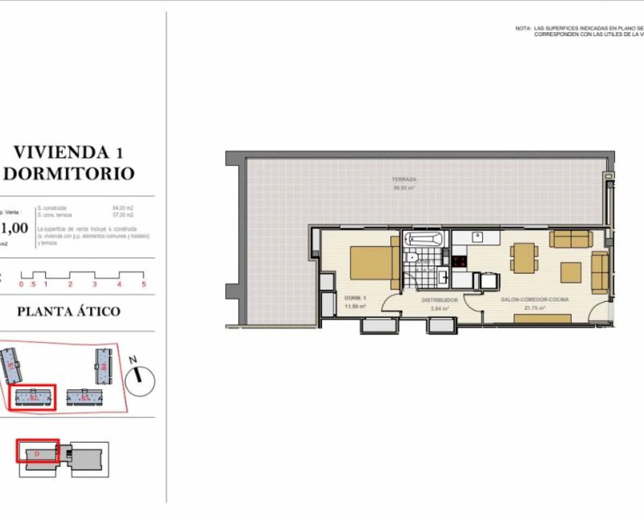 This beautiful 64 m2 penthouse apartment offers a spacious lounge with dining area, a fully equipped modern kitchen and 1 double bedroom with bathroom. It also has a spacious terrace of 57 m2, a garage and a storage room. The complex is located less than 450 m from the beach and is surrounded by various facilities such as restaurants, a supermarket and a gym.