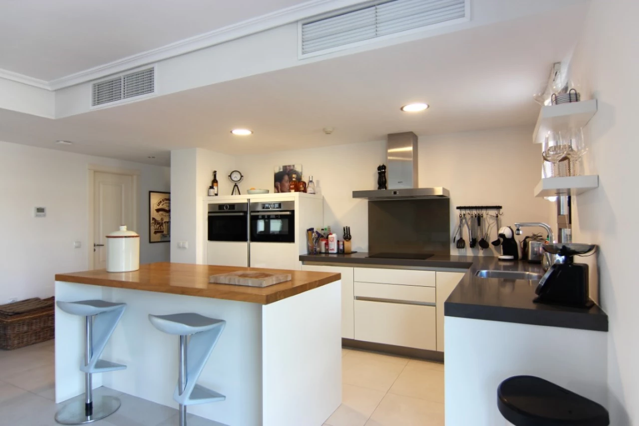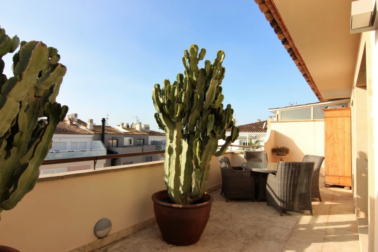 This beautifully spacious Penthouse apartment is located in the center of Moraira, less than 100 meters from the beach. The Penthouse is located on the fourth floor and offers a spacious lounge with dining area, a fully equipped open kitchen, 3 double bedrooms and 2 bathrooms. In addition, there is a spacious terrace of more than 100 m2 around the house, fully equipped with outdoor kitchen. There is also a parking space for 1 car in the garage.
