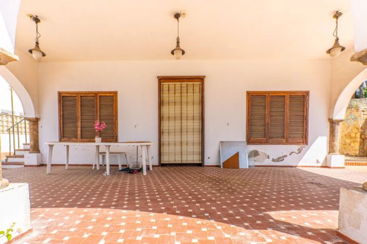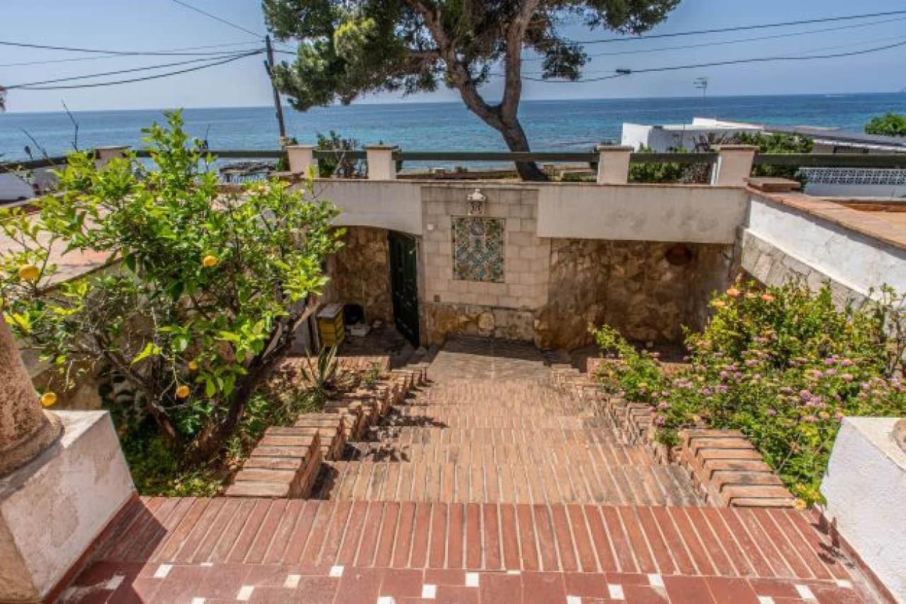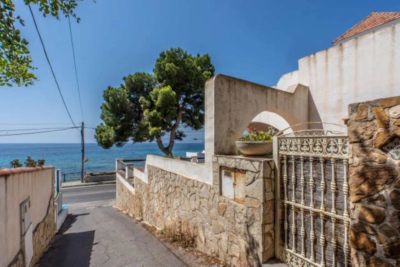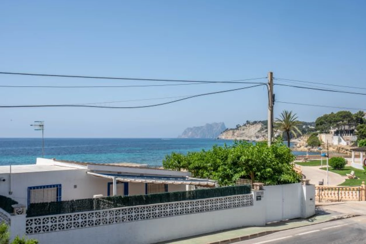 This villa is situated on the first line of the beach of Moraira at only 5 minutes walk from the village centre and the harbour. The property has a large terrace partly covered from where you have beautiful views to the sea. The property consists of a living-dining room, a kitchen, a laundry room, 5 bedrooms and 3 bathrooms. There is also a large roof terrace and a garage. The house needs renovation but you buy it because of the unique location.