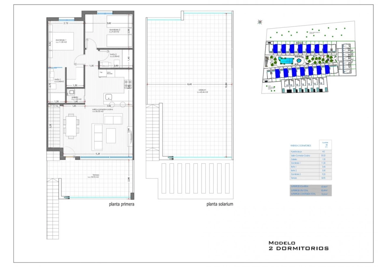 NEW BUILD RESIDENTIAL COMPLEX IN PUNTA PRIMA New Built residential complex of bungalow apartments and 7 detached villas in Punta Prima. The bungalows are distributed in three blocks. Ground floor bungalows with private garden and top floor bungalows with private solarium. Beautiful bungalow with 2 or 3 bedrooms, open plan kitchen with the lounge area, fitted wardrobes, utility room and spacious terraces. Each bungalow has parking space. The urbanization will offer nice green areas with a playground for children, a gym and two communal pools. Complex located a few meters from the centre of Punta Prima where you will find all the amenities you may need. In the surroundings you will find a wide range of nice restaurants, cafes, supermarkets, pharmacies and all the amenities you may need. Punta Prima, located just 5 km from Torrevieja, is characterized by good communication and health infrastructures, the proximity to Alicante airport, and the number of services open throughout the year. Just 10 km away we can find the golf courses of Villamartín, Campoamor, Las Ramblas, Las Colinas and Lo Romero, as well as the commercial centres of La Zenia and Habaneras.