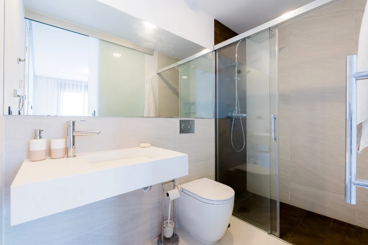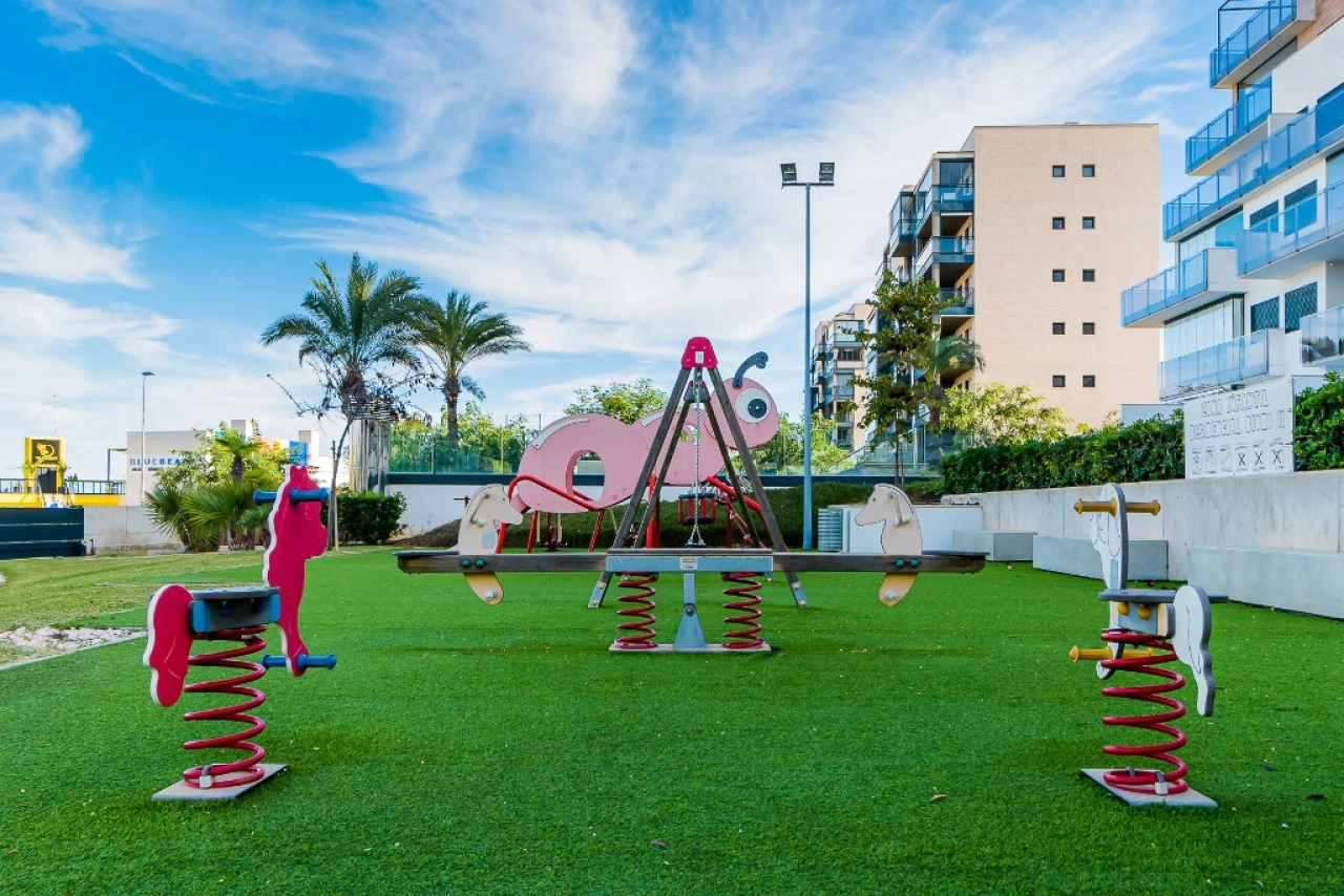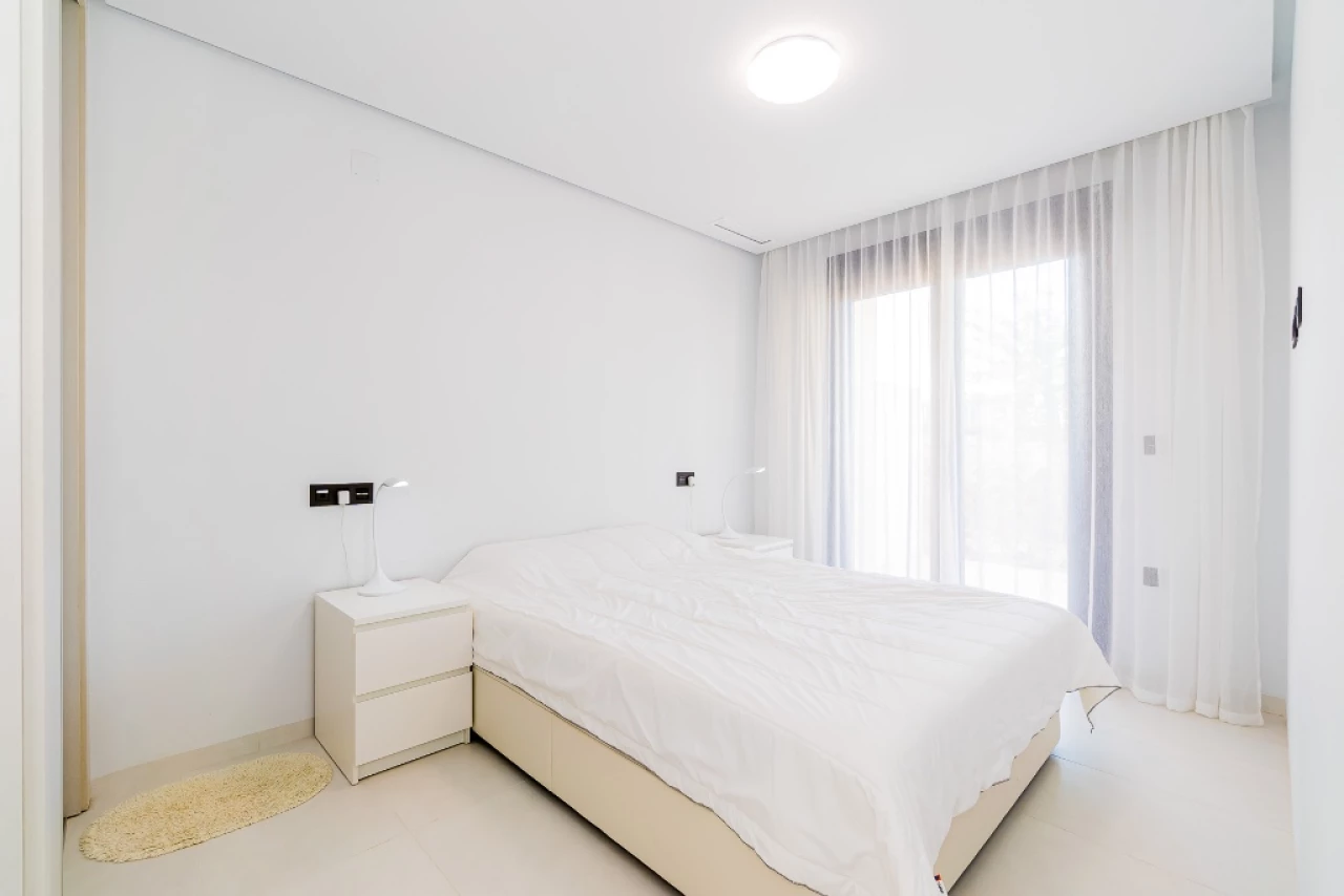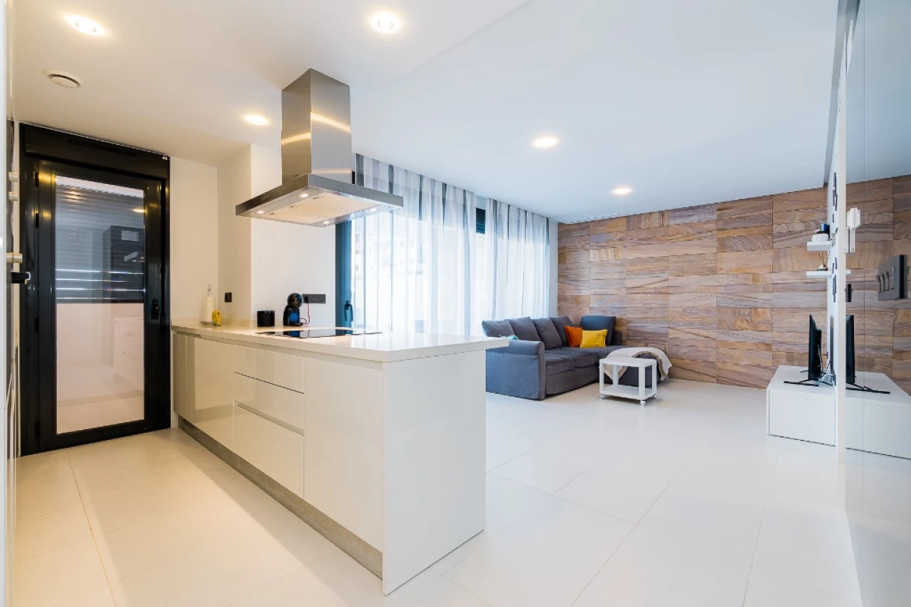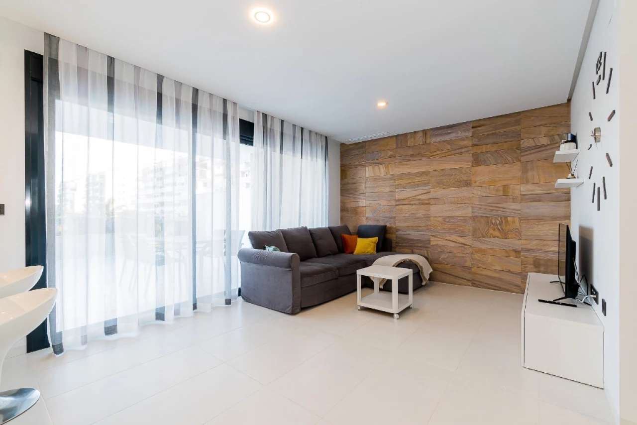 New beachside apartment for sale in Mil Palmeras, Costa Blanca, Spain.The apartment for sale is made of high quality materials according to the most modern standards. Spacious living rooms and terraces with lovely views, kitchen with utility room. The residential complex has a swimming pool with surrounding green areas and underground parking, gym and green areas.The residential complex is located on the beach of Mil Palmeras, which means "a thousand trees", in the prestigious tourist area on the Orihuela Costa South.Just a 35-40 minute drive from the international airports of Alicante and San Javier, as well as the cities of Murcia, Cartagena and Elche.