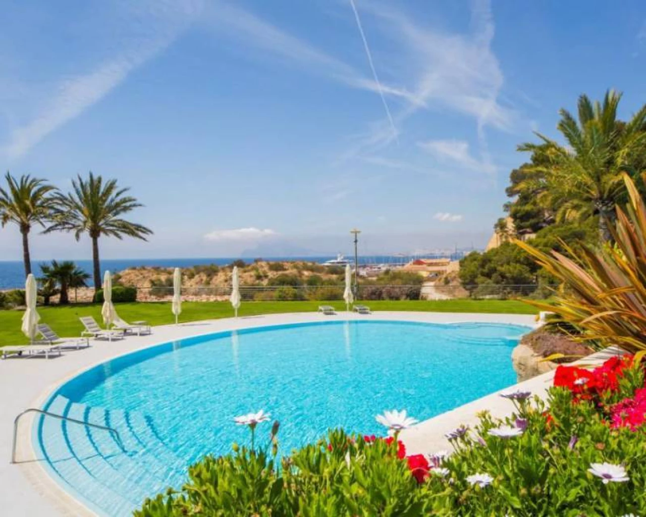 Luxury residential complex in Altea, Mascarat Beach. The complex has 24h security, direct access to the beach and marina, 3 outdoor pools, spa with heating indoor pool, sauna, paddel tennis court and gym. The apartment consist of 3 bedrooms, one bedroom with en suite bathroom and dressing room, another bathroom, living/dining area, separate kitchen, laundry room and spacious terrace overlooking on the pool and sea.
