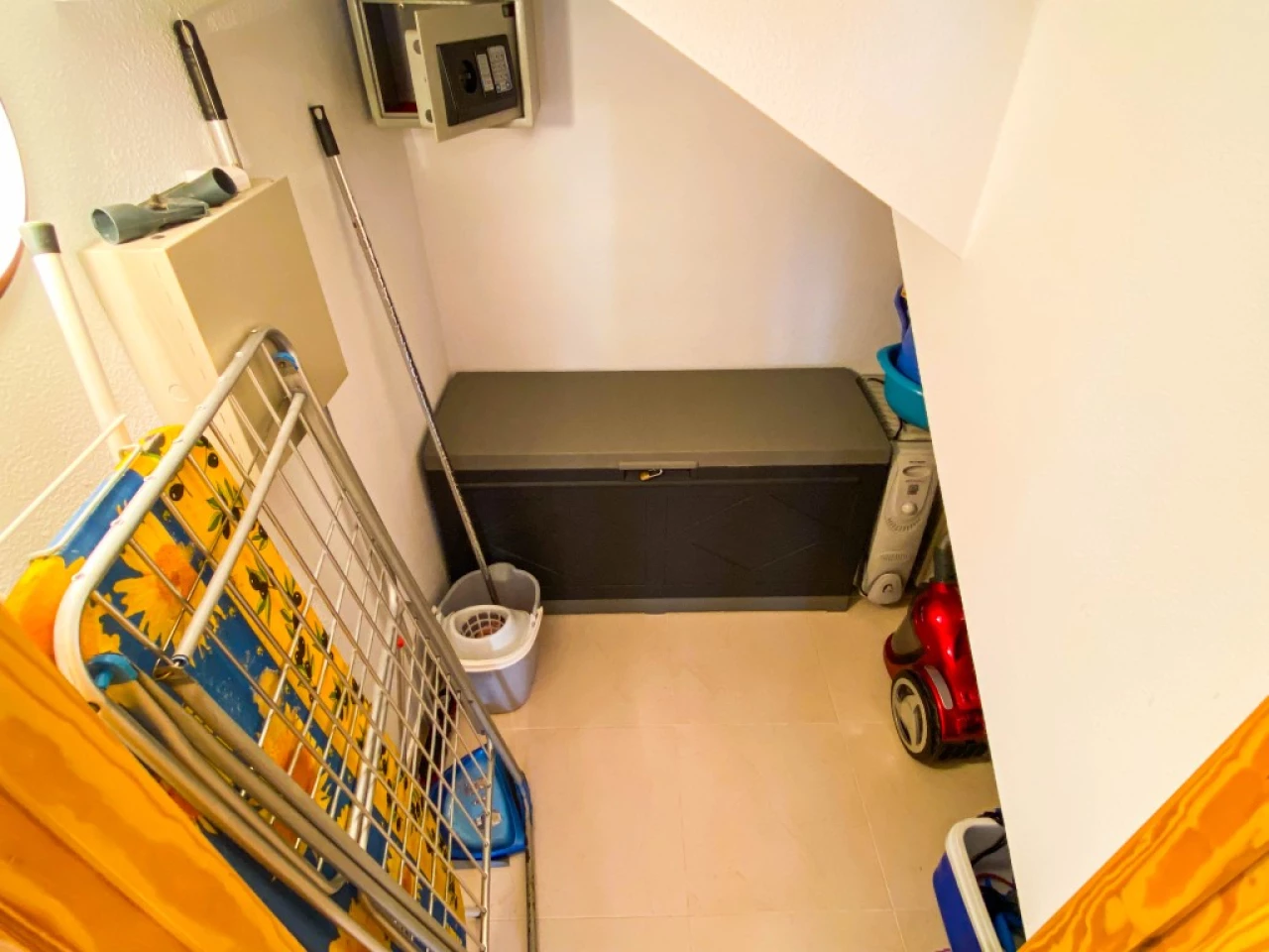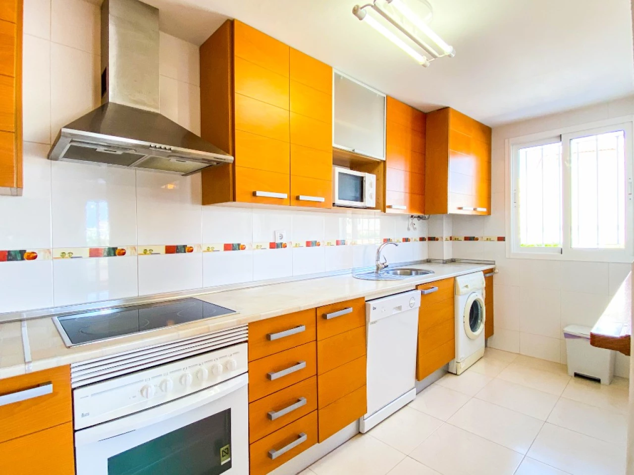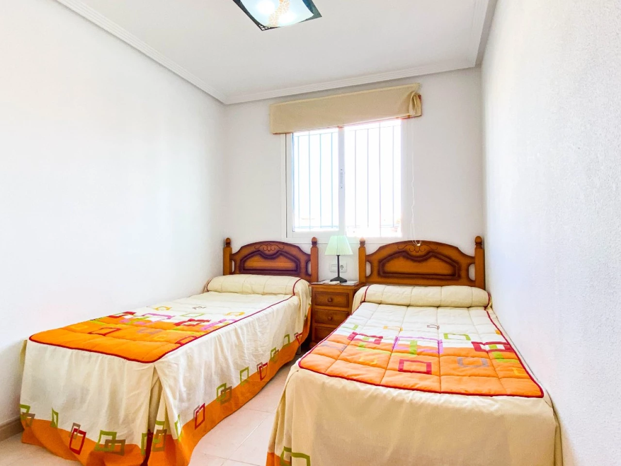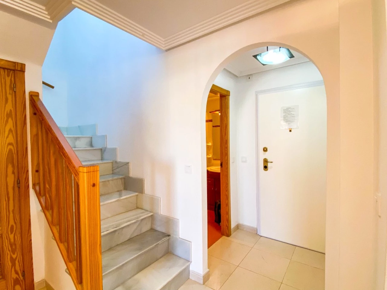 For sale an apartment (penthouse) in a gated complex Zeniamar 8 with open views.On the first level, the apartment has 2 bedrooms with built-in wardrobes, a bathroom, a fully equipped open kitchen with a breakfast bar, a storage room under the steps (with a built-in safe inside) and a living-dining room with access to a spacious balcony.On the second level there is another open bedroom, a bathroom and, of course, a huge private solarium. Thanks to the good location of the apartment, from the top terrace you can enjoy beautiful open views, the warm Spanish sun and even take a refreshing shower.Zeniamar is one of the most beautiful urbanizations in Playa Flamenca. The complex is closed and guarded, inside for the comfort of residents there is a magnificent swimming pool with green spaces, walking paths, there is also a gym. Necessary infrastructure - shops, bars, restaurants, pharmacies, parks, etc. - located a few minutes from the complex, and to the sea - about 30 minutes of leisurely walking.Every year, the Playa Flamenca area, which is located in the south of the Costa Blanca, attracts more and more tourists, thanks to the mild Mediterranean climate, friendly locals and the cleanest beaches, which are awarded the Blue Flag every year. This is an ideal place for both investment and permanent residence.The nearest airport is Alicante, 40 minutes away.Features: