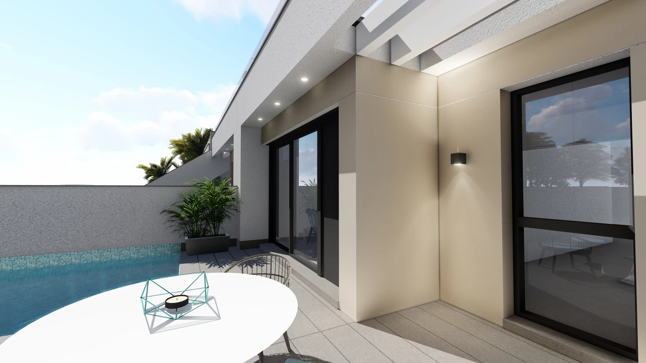 Located in the extreme south of the province of Alicante, next to the coast overlooking the Mediterranean Sea. Pilar de la Horadada is the southernmost municipality of the Valencian region, bordering the Region of Murcia. With its excellent cuisine, historical features and beautiful beaches, this region is the perfect location to have your home/second home situated.This Residential 'SunGolf Villas' in Pilar de la Horadada consists of 2 and 3 bedroom, 2 bathroom bungalows. The 2 bedroom villas are priced at 209,900 Euros and the 3 bedroom villas from 236,900 Euros. Situated 3.6 km from the beach and close to a range of local restaurants, bars and supermarkets. La Zenia Shopping Boulevard is a 10 minute drive. Close to a wide range of golf courses; Las Colinas, Lo Romero, La Finca and Villamartin, to name but a few.Key features: Plot size 166 m2 Build size 66 m2 (3 bedroom bungalow 84 m2) Roof solarium 64 m2 Private pool (optional) 2/3 bedrooms with fitted wardrobes lined with drawers and hanging space 2 fully fitted bathrooms with shower screen, vanity unit and mirror with lighting Open plan lounge/dining/fully fitted kitchen (including appliances) Floor and wall tiling Intercom system Air conditioning Furniture pack up to the value of 3000 Euros is included in the price! Contact us today for more information!