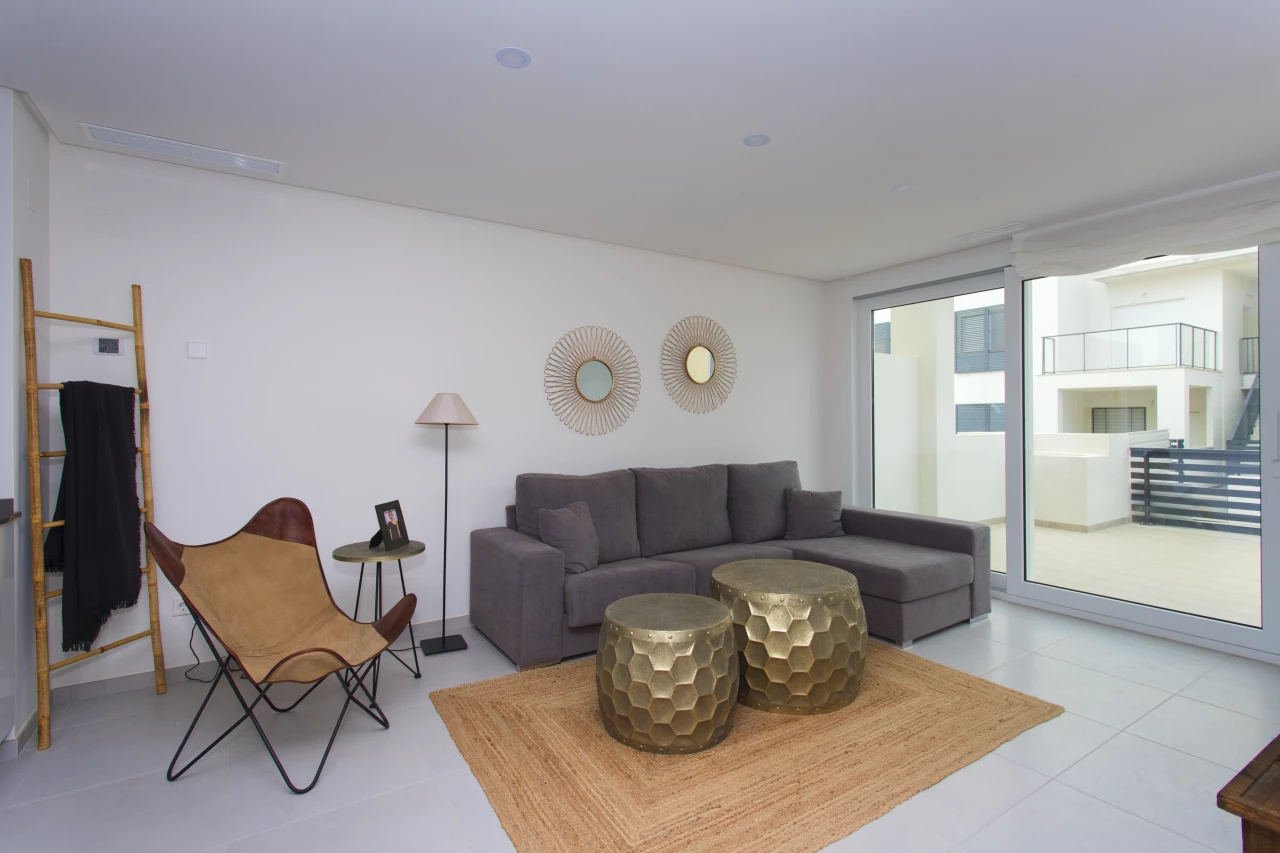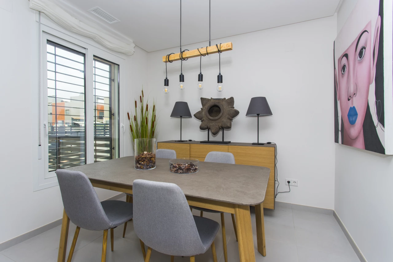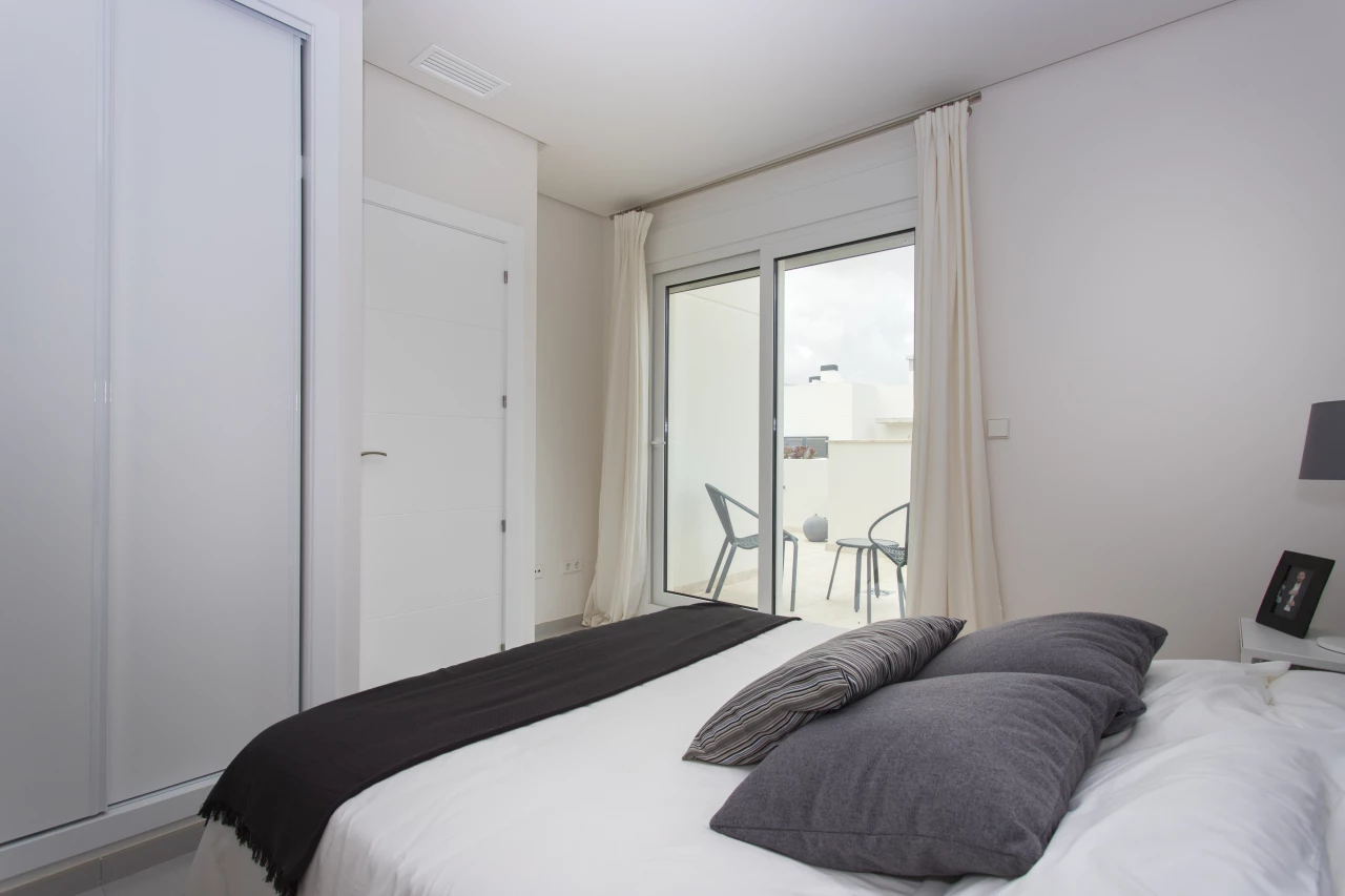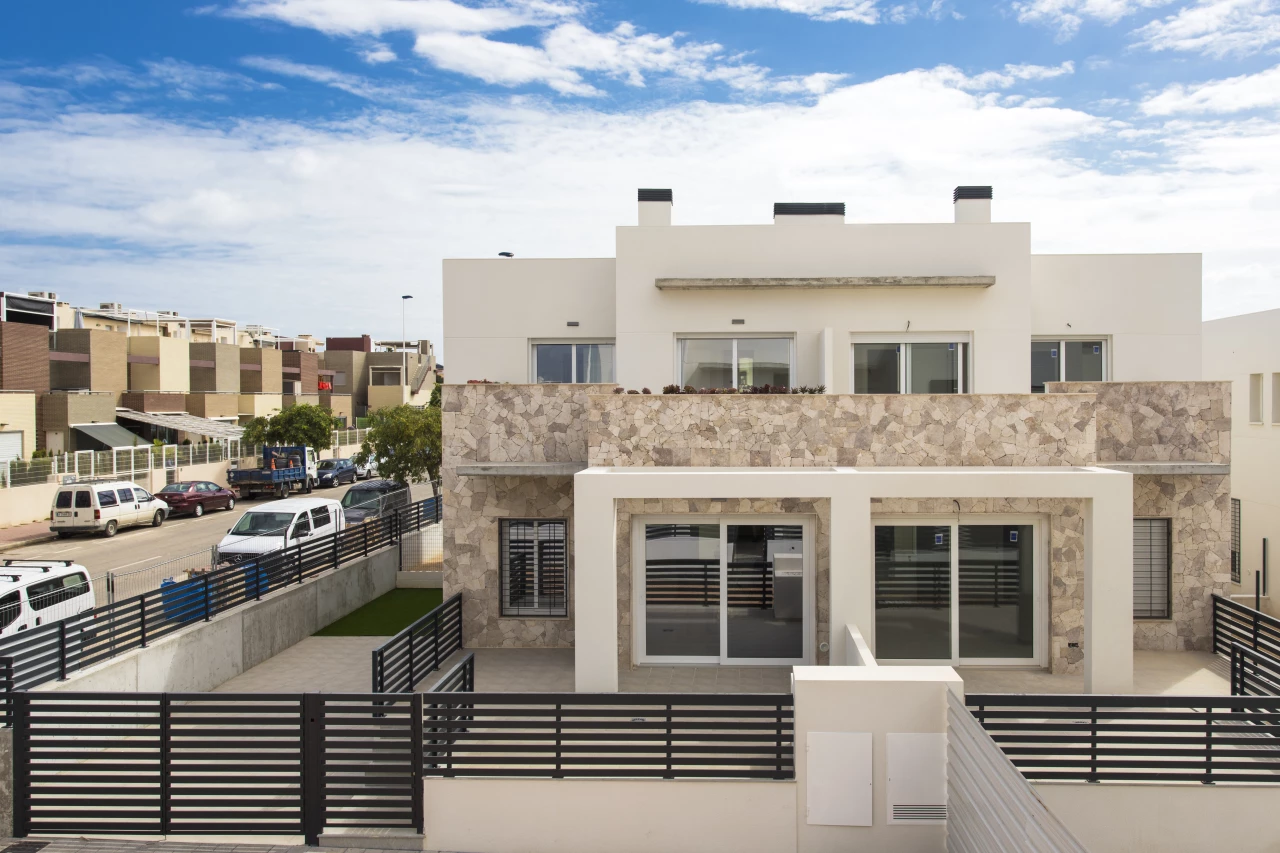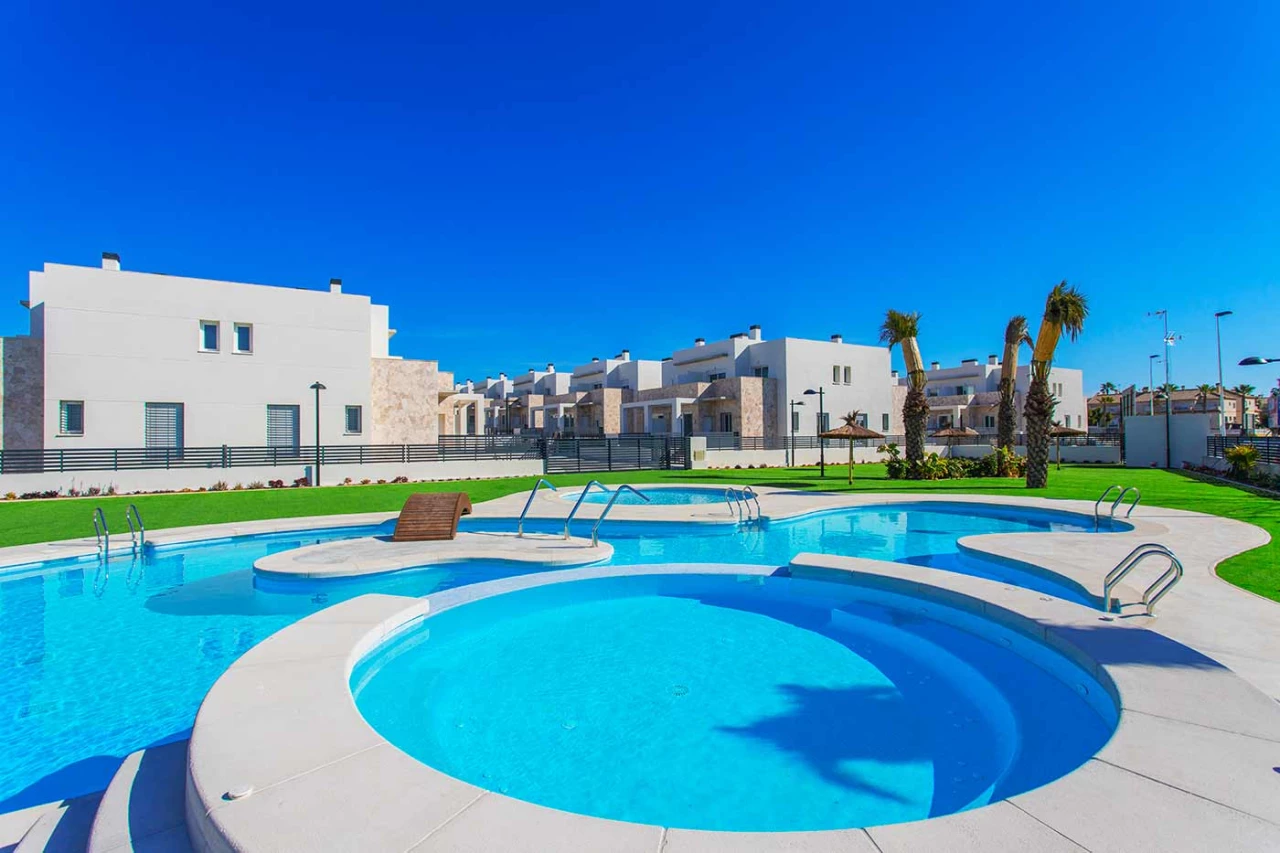 This superb newly built 'Breezes' Residential in Torrevieja is situated in the perfect location to facilitate the whole family whether your are looking for a holiday / second home. Just 10 minutes to the beaches, 15 minutes to the local golf resorts of Villamartin, La Finca and Marquesa Golf and in addition there is a wide range of restaurants, bars, supermarkets as well as a water park close by. 40 minutes from Alicante airport. This development has 3/4 bedroom, 3 bathroom quads / townhouses with a front and rear garden and roof solarium (prices from 189,000 Euros for 3 bed, 3 bath and the 4 bed, 3 bath quad is 221,000 Euros) There are 2/3 bed, 2 bath, ground floor apartments (with garden) still available with prices from 172,000 Euros.Key features quad / townhouse: - Open plan lounge / dining / fully fitted kitchen area including appliances 3/4 bedrooms (master with built in wardrobe) Fully fitted bathrooms including underfloor heating, mirror and shower screen Roof solarium (15.2 m2) Living space (97.5 m2) Flooring and tiling Communal pool with jacuzzi and children's area Communal garden area Off road parking Air conditioning Close to golf Close to beach Close to restaurants, bars, supermarkets and services Open views Furniture pack of 3,000 Euros included! Contact us today for more information.