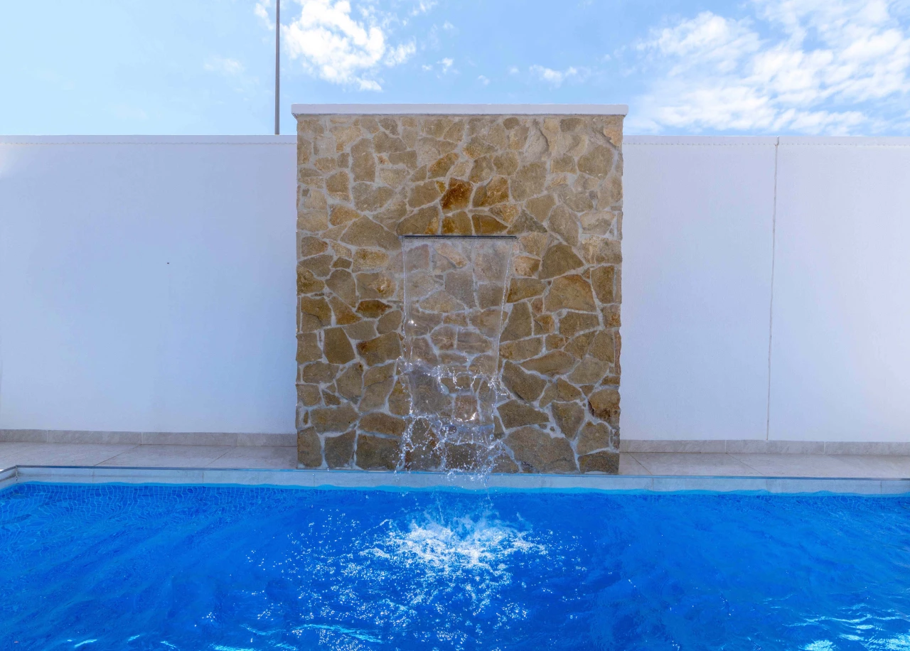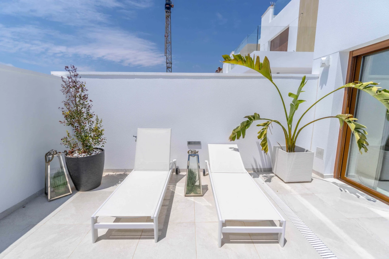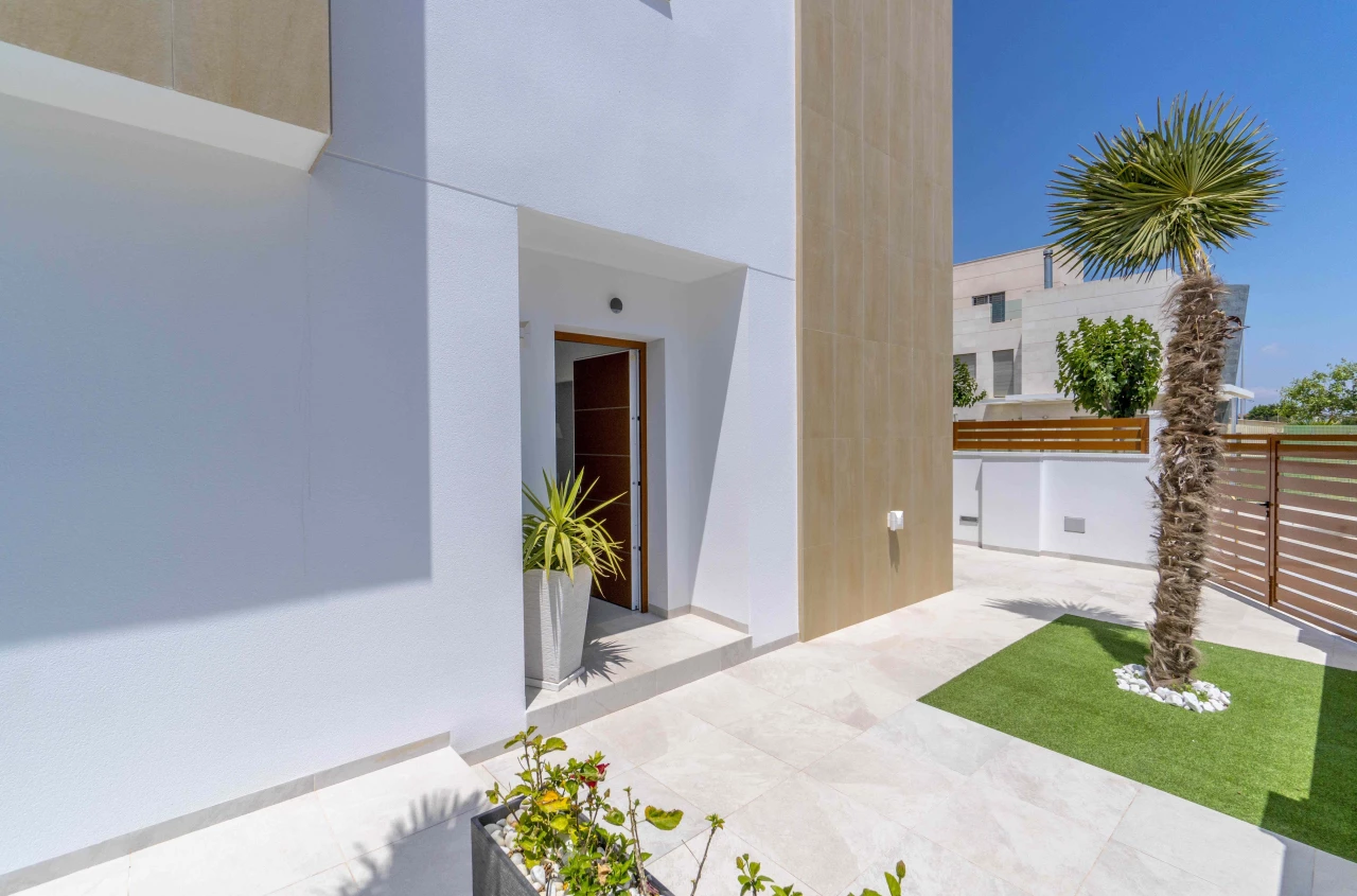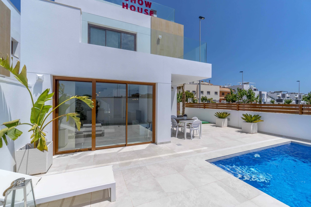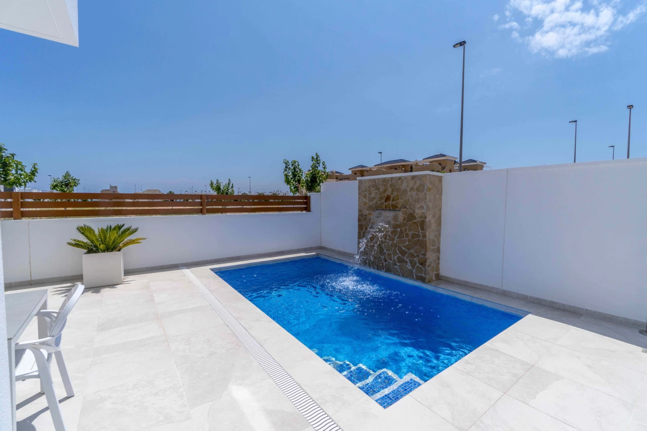 Description: Villa Beach Residential is located in one of the most beautiful places of the Costa Blanca, between Torre de la Horadada and Pilar de la Horadada. We invite you to live at this beautiful location at only 300m to the beach and just 1km to El Pilar de la Horadada, surrounded by all the amenities you would need such as two shopping centers (La Zenia Boulevard and Dos Mares) and several golf courses (Lo Romero, Villamartin, Roda, Mar Menor). Enjoy the sun in this area of Spain with more than 2500 hours of sunshine a year, with a temperature average of 18 - 20ºC and over 4 km of spectacular beaches on your doorstep. Furthermore, Villa Beach is surrounded by green areas, promenades, restaurants and bars, making this place an ideal place to live the whole year round. Luxury Villas with Sea Views • New development composed by 21 detached villas with private pool. Only 300m to the "Higuericas" beach, a wide and white sandy beach with lots of beach/bar restaurants. These properties are a 'must see'. 134m2 built size with top quality materials. Detached villas built in plots of 200m2. Private pool with waterfall and stone wall. Private garden and parking. Wide living room - kitchen of 41m2 with pool views. 3 Bedrooms (1 bedroom ground floor) and 3 Bathrooms (2 ensuite). Dressing room finished. Wide Solarium of 41m2. Semi basement used as a laundry room and storage room. Pre-installation of underfloor heating in the whole villa by water system Electric blinds. Double glazing 2 security doors. High-quality interior and exterior tiling Tiling anti-slip exterior. Exterior and interior lights included Fully fitted kitchen with appliances Air conditioning Furniture pack up to the value of 5,000 Euros is included in the price! Gift voucher for 10,000 Euros for reservations before 31st August 2021! Contact us today for more information!