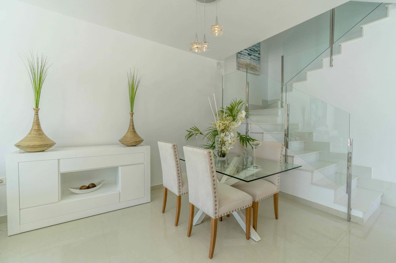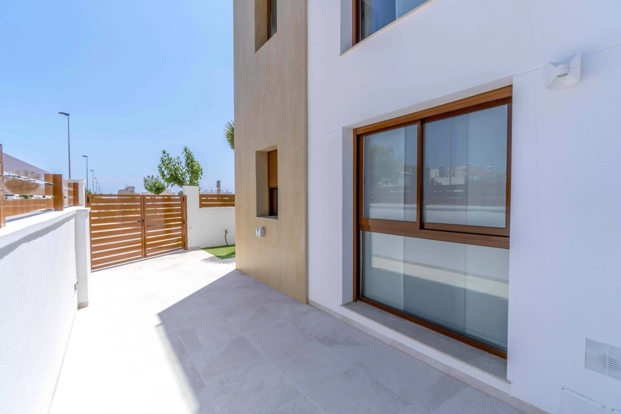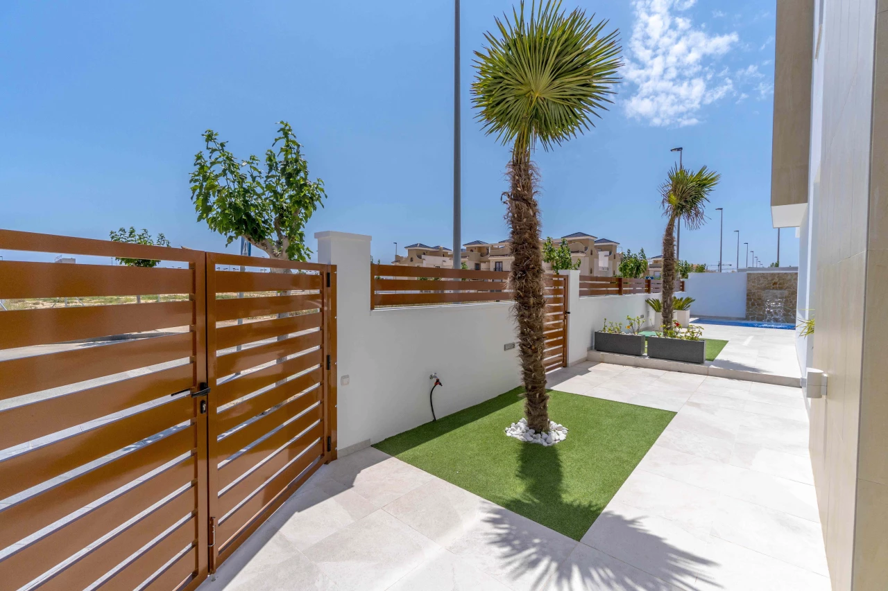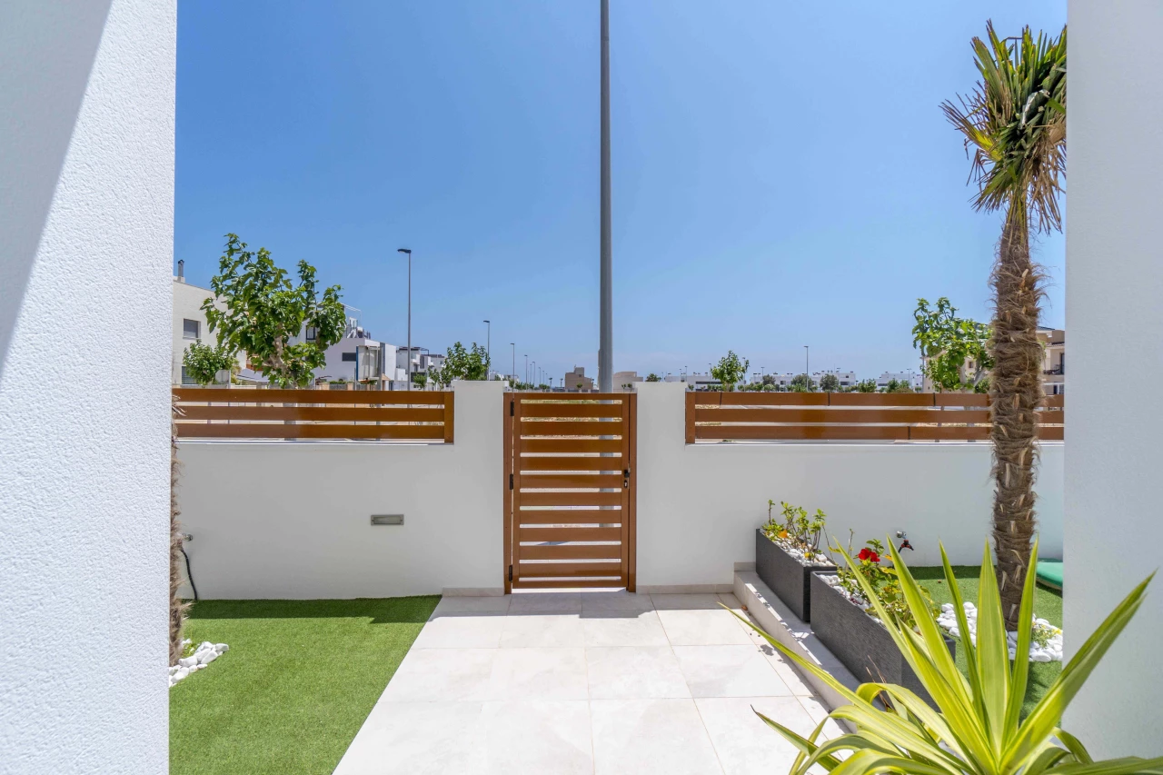 Description: Villa Beach Residential is located in one of the most beautiful places of the Costa Blanca, between Torre de la Horadada and Pilar de la Horadada. We invite you to live at this beautiful location at only 300m to the beach and just 1km to El Pilar de la Horadada, surrounded by all the amenities you would need such as two shopping centers (La Zenia Boulevard and Dos Mares) and several golf courses (Lo Romero, Villamartin, Roda, Mar Menor). Enjoy the sun in this area of Spain with more than 2500 hours of sunshine a year, with a temperature average of 18 - 20ºC and over 4 km of spectacular beaches on your doorstep. Furthermore, Villa Beach is surrounded by green areas, promenades, restaurants and bars, making this place an ideal place to live the whole year round. Luxury Villas with Sea Views • New development composed by 21 detached villas with private pool. Only 300m to the "Higuericas" beach, a wide and white sandy beach with lots of beach/bar restaurants. These properties are a 'must see'. 134m2 built size with top quality materials. Detached villas built in plots of 200m2. Private pool with waterfall and stone wall. Private garden and parking. Wide living room - kitchen of 41m2 with pool views. 3 Bedrooms (1 bedroom ground floor) and 3 Bathrooms (2 ensuite). Dressing room finished. Wide Solarium of 41m2. Semi basement used as a laundry room and storage room. Pre-installation of underfloor heating in the whole villa by water system Electric blinds. Double glazing 2 security doors. High-quality interior and exterior tiling Tiling anti-slip exterior. Exterior and interior lights included Fully fitted kitchen with appliances Air conditioning Furniture pack up to the value of 5,000 Euros is included in the price! Gift voucher for 10,000 Euros for reservations before 31st August 2021! Contact us today for more information!