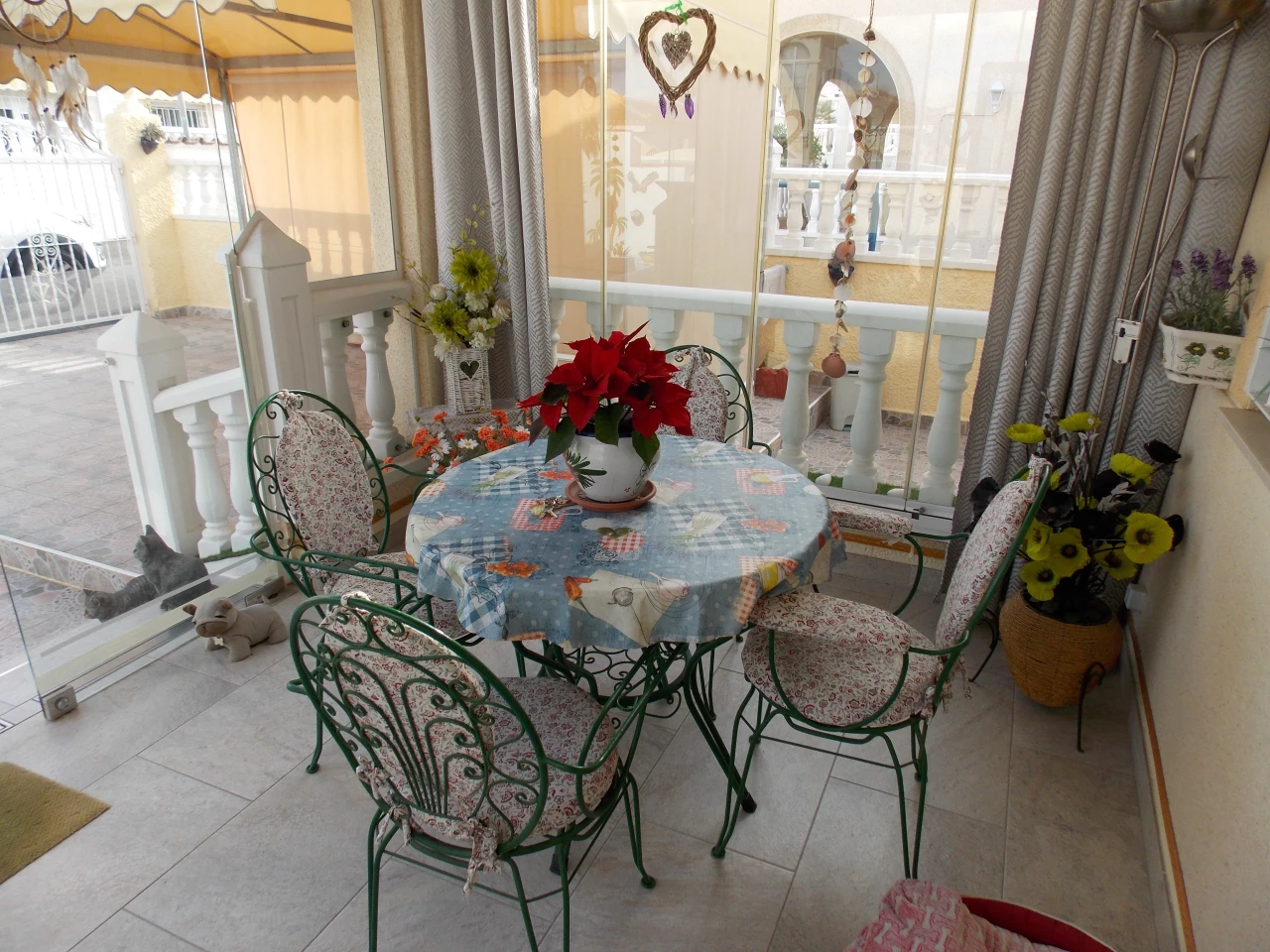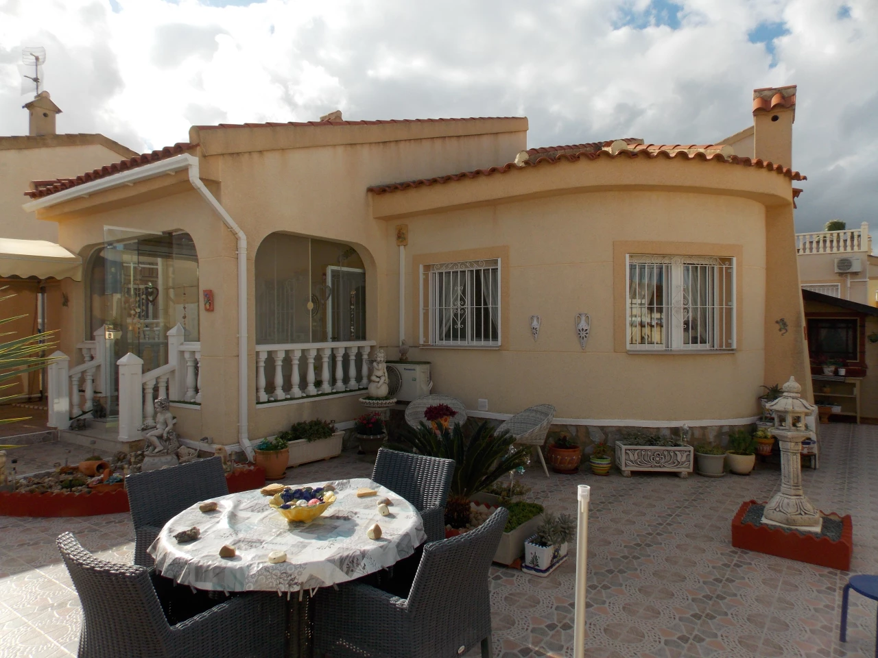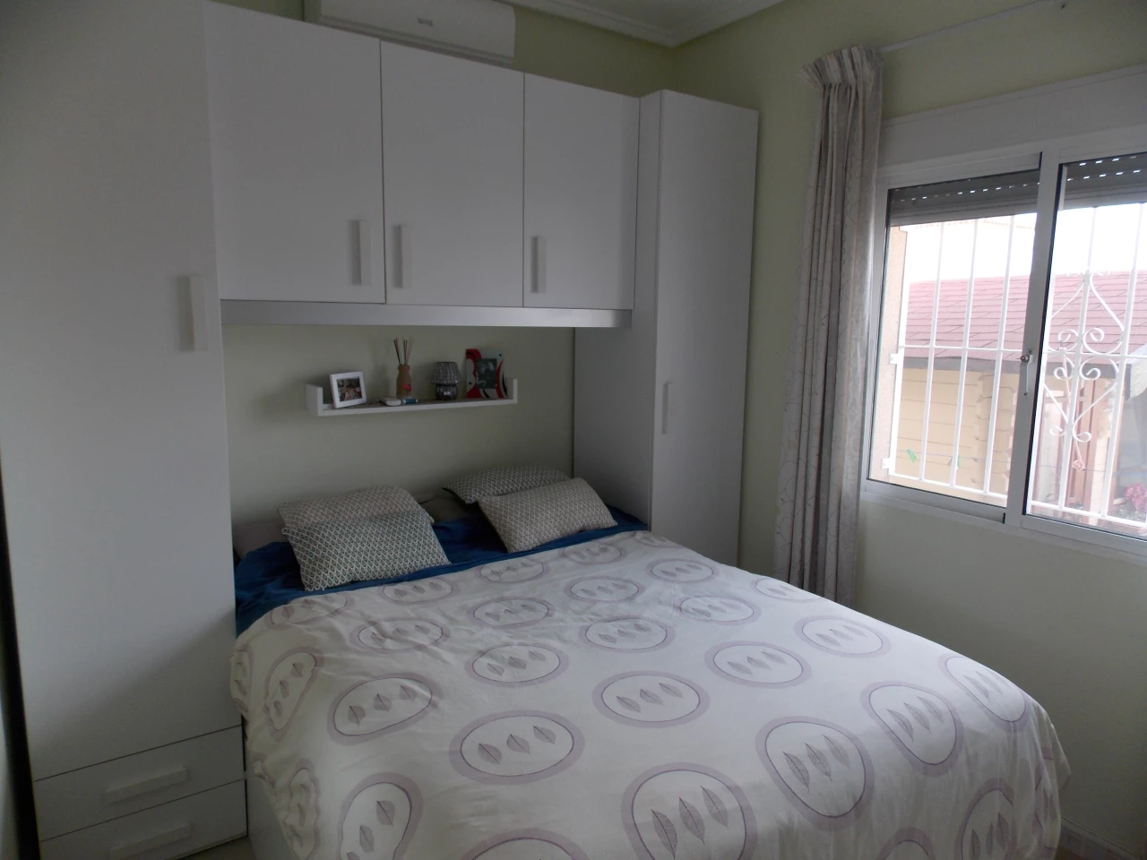 We are pleased to present this charming detached villa that is very neatly and tastefully furnished, there is a very spacious living room with a fireplace, a spacious kitchen that was recently completely renovated, there are 2 bedrooms with both lots of closet space, there are 2 bathrooms, 1 ensuite, there is also a cozy bright sitting area, all rooms as well as the living area have air conditioning (hot/cold). The house is built on a plot of 296m², there is a parking space for the car, a beautiful maintenance-friendly garden and also a garden shed furnished in such a way that people can stay overnight. One of the major advantages is its ideal location, it is only a 5 minute walk to several bars and restaurants in Benijófar and a 15 minute drive to the beaches of Guardamar. A private pool can be built on the plot, but there is a communal pool. Do not hesitate to contact us for more information or to schedule a visit. Communal pool Private parking Bars and Restaurants - 5 min walk Supermarket - 7 minute walk Beach - 15 minute drive Close to golf