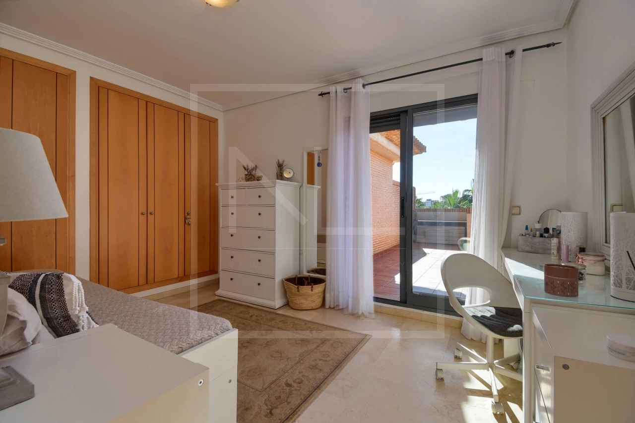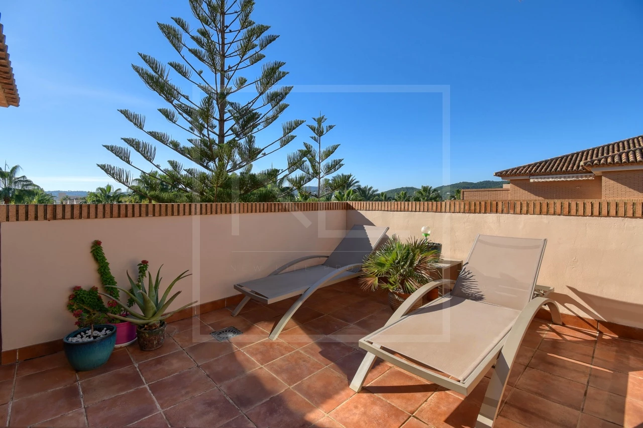 Offered at €550,000 but NO OFFERS This beautifully presented 2nd-floor penthouse duplex apartment is located within the Altamar complex, only a 10-minute walk to the Playa del Arenal or a 20-minute walk to the Port of Javea, along the Av. del Mediterráneo. The first level of this duplex apartment comprises a Large lounge, with terraces overlooking the communal swimming pool, a Dining room, a separate kitchen, and a large bedroom with a family bathroom. On the second level, there are a further 2 bedrooms, one of which is ensuite, with terraces overlooking the pool The current owners have replaced the original kitchen, bathrooms and installed new Hot and Cold Airconditioning units. The Altamar complex has large manicured gardens, a beautiful swimming pool and a private underground parking space for residents. Javea is a popular and diverse town with all the services you require with a wealth of amenities including golf courses, water sports, as well as dining establishments, bars, and a vibrant nightlife. Javea has a large sandy beach (Playa de Arenal) as well as many smaller coves as well as the National parks, of El Cap de la Nau and El Montgo.